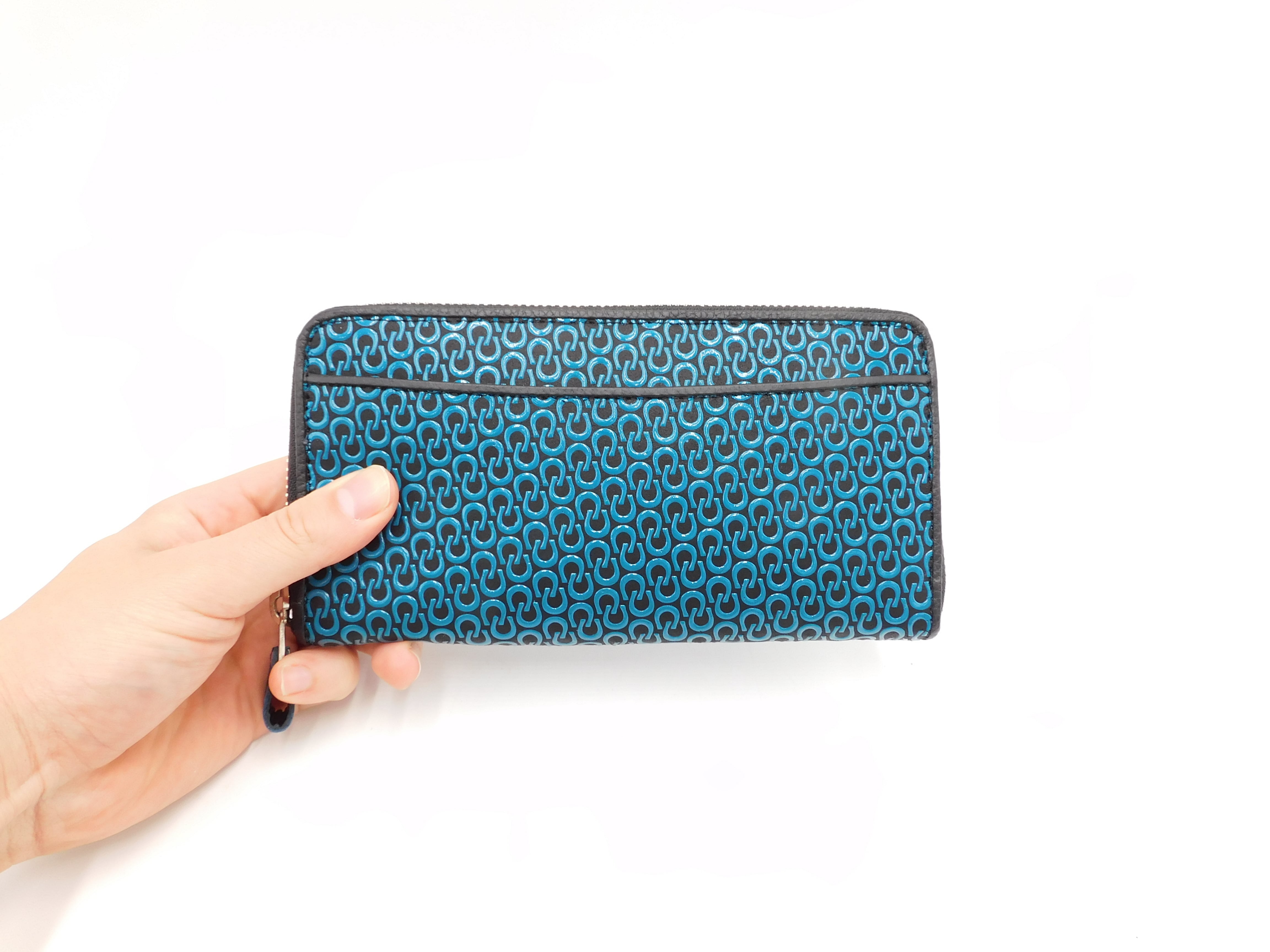 ラウンド長財布 黒/青 馬蹄柄