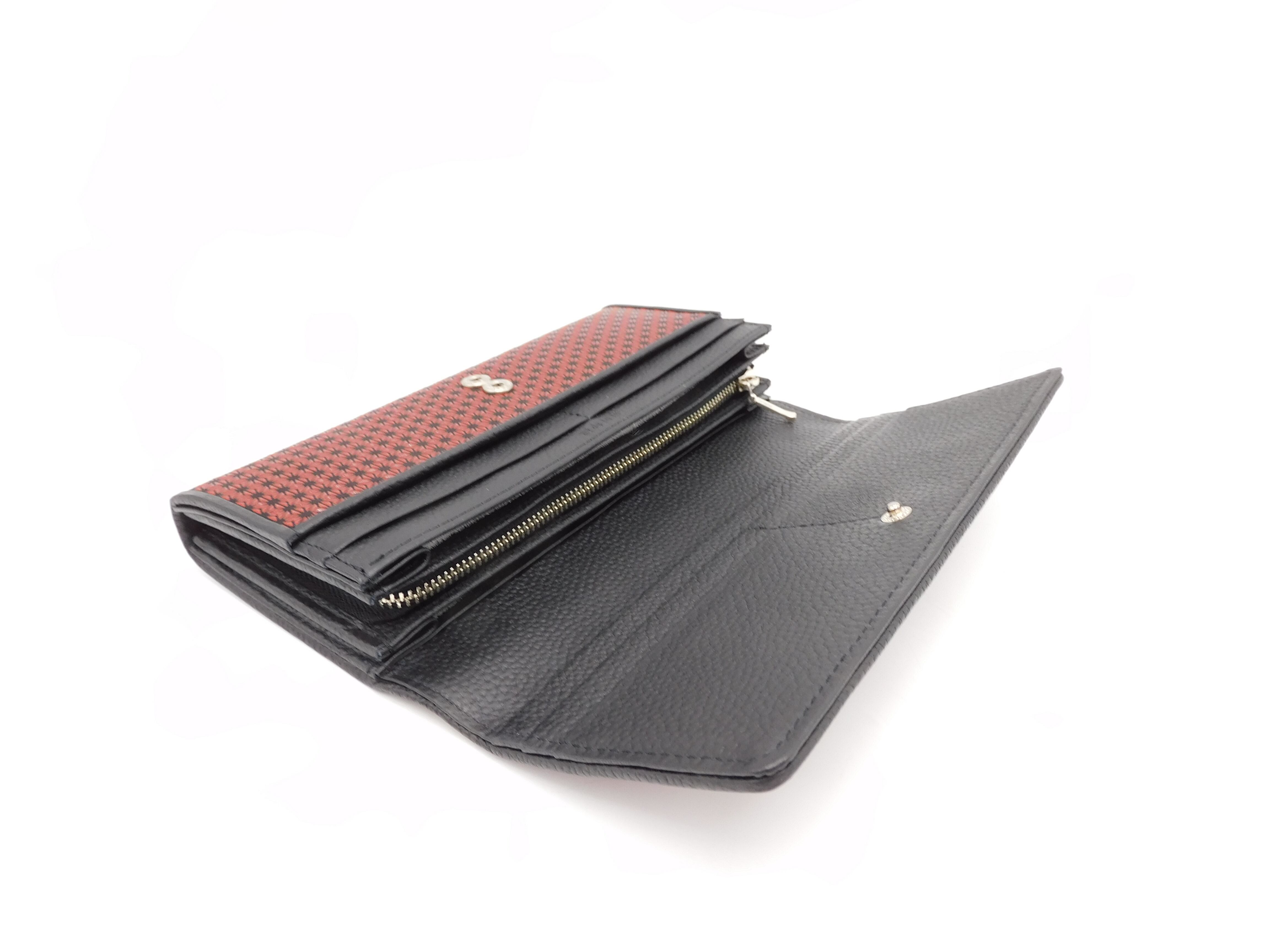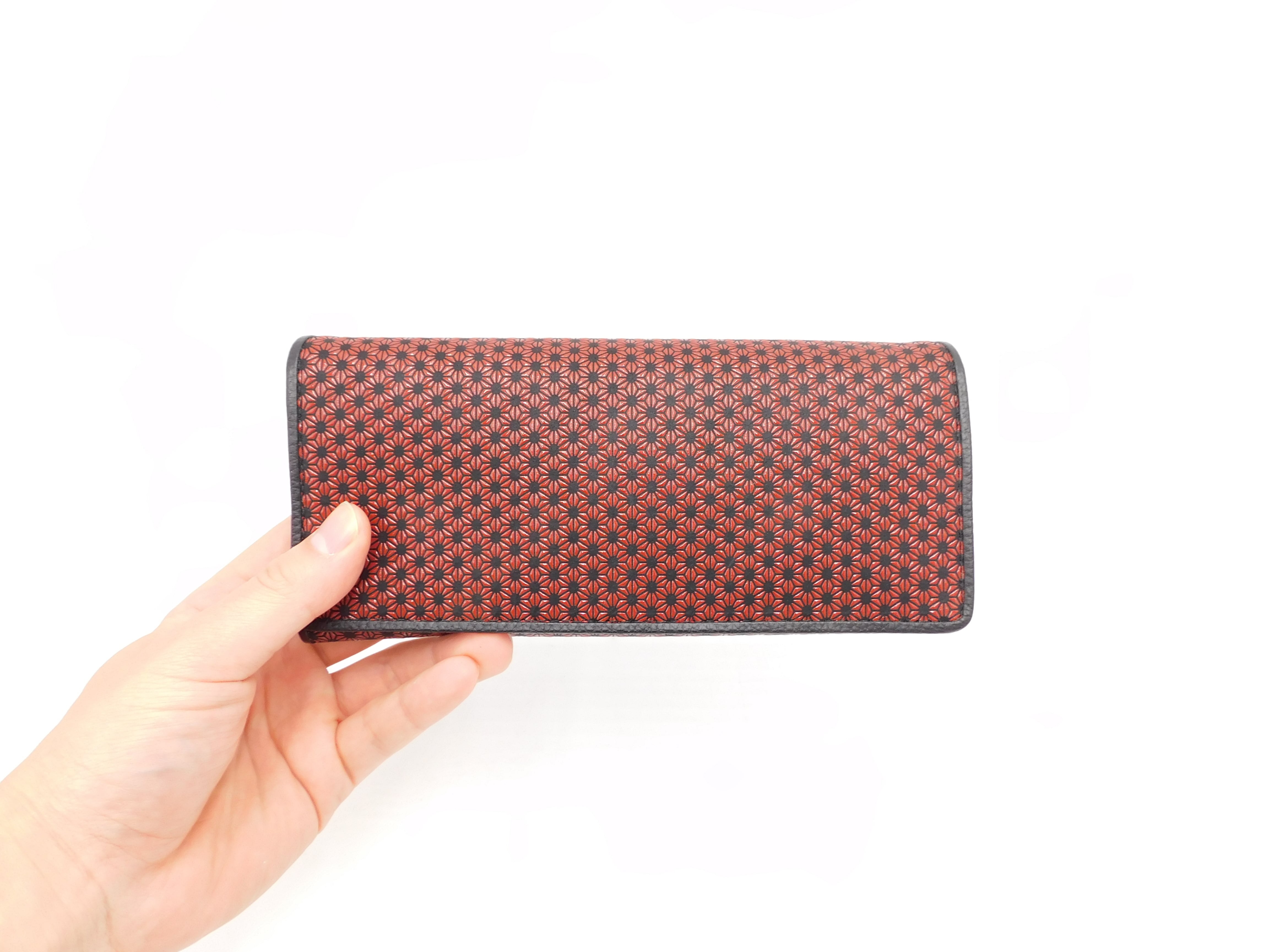 中L型長財布 黒/赤 丸麻の葉柄