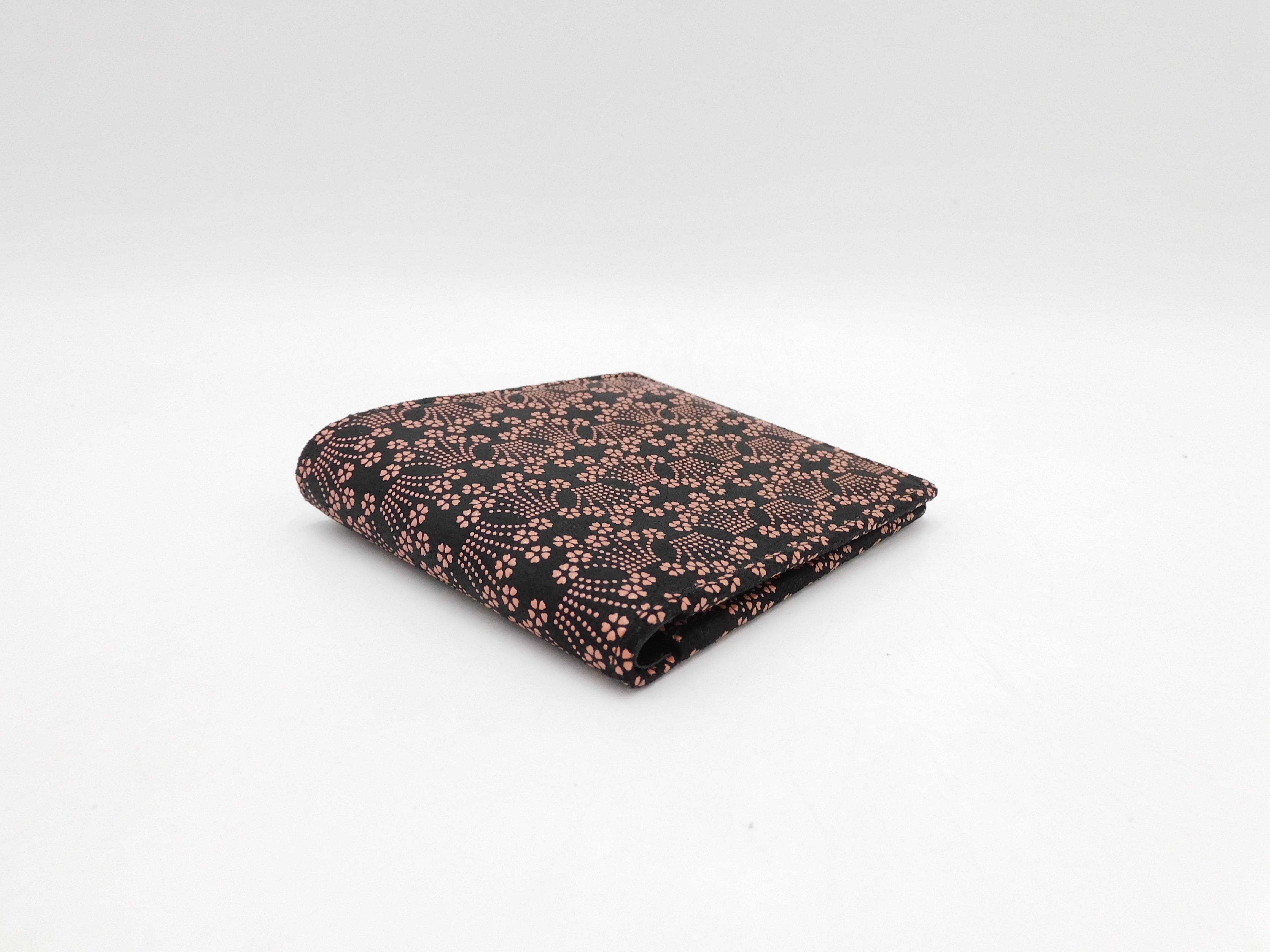 札入(小銭付) 黒/ピンク 小桜菖蒲柄