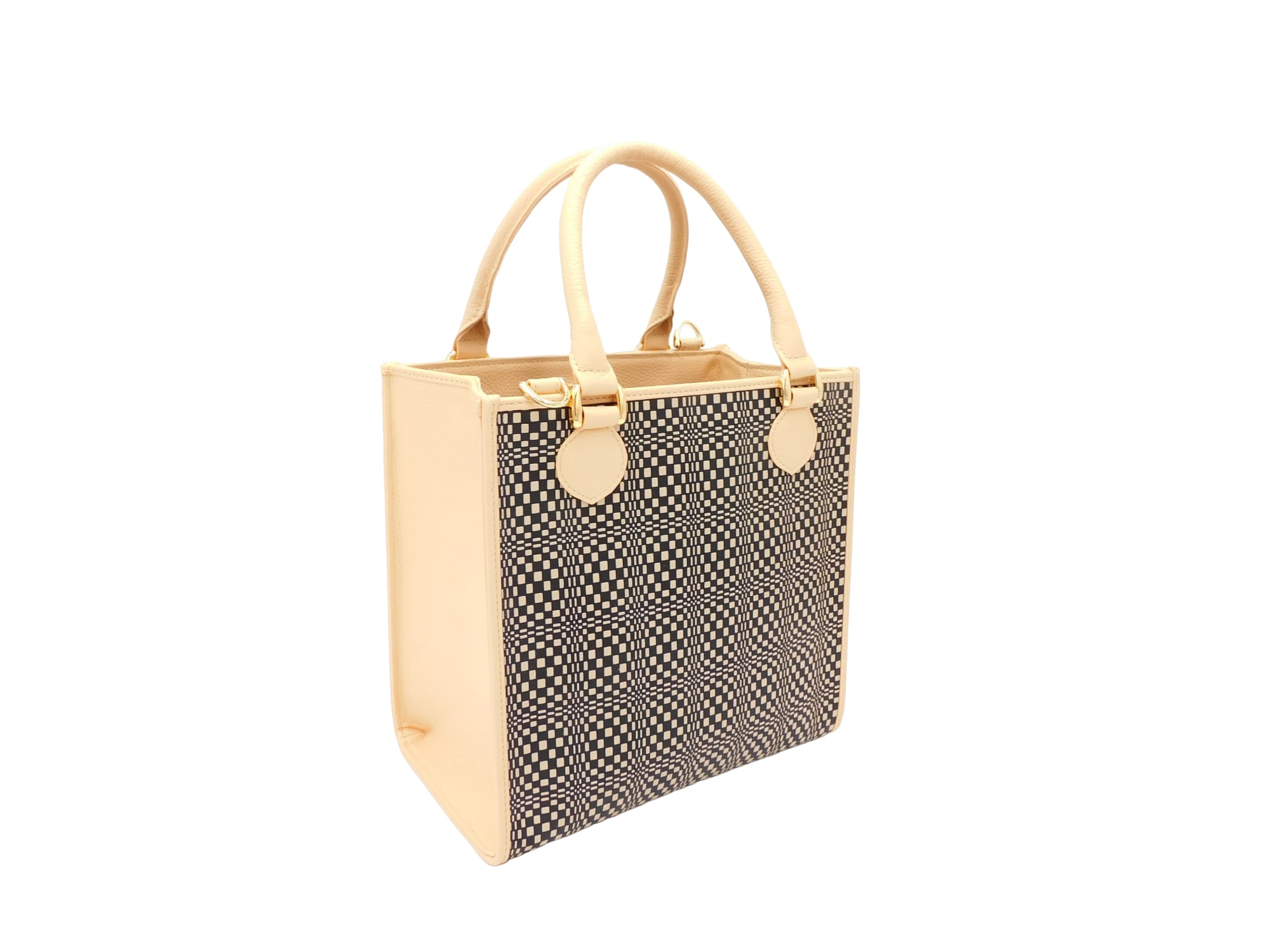 スクエア ベージュ/白 変わり市松柄