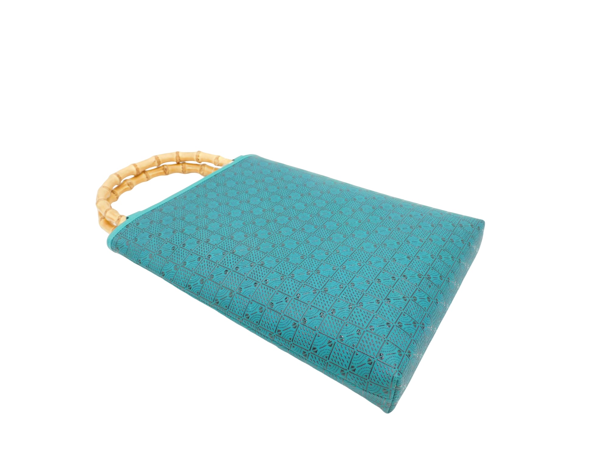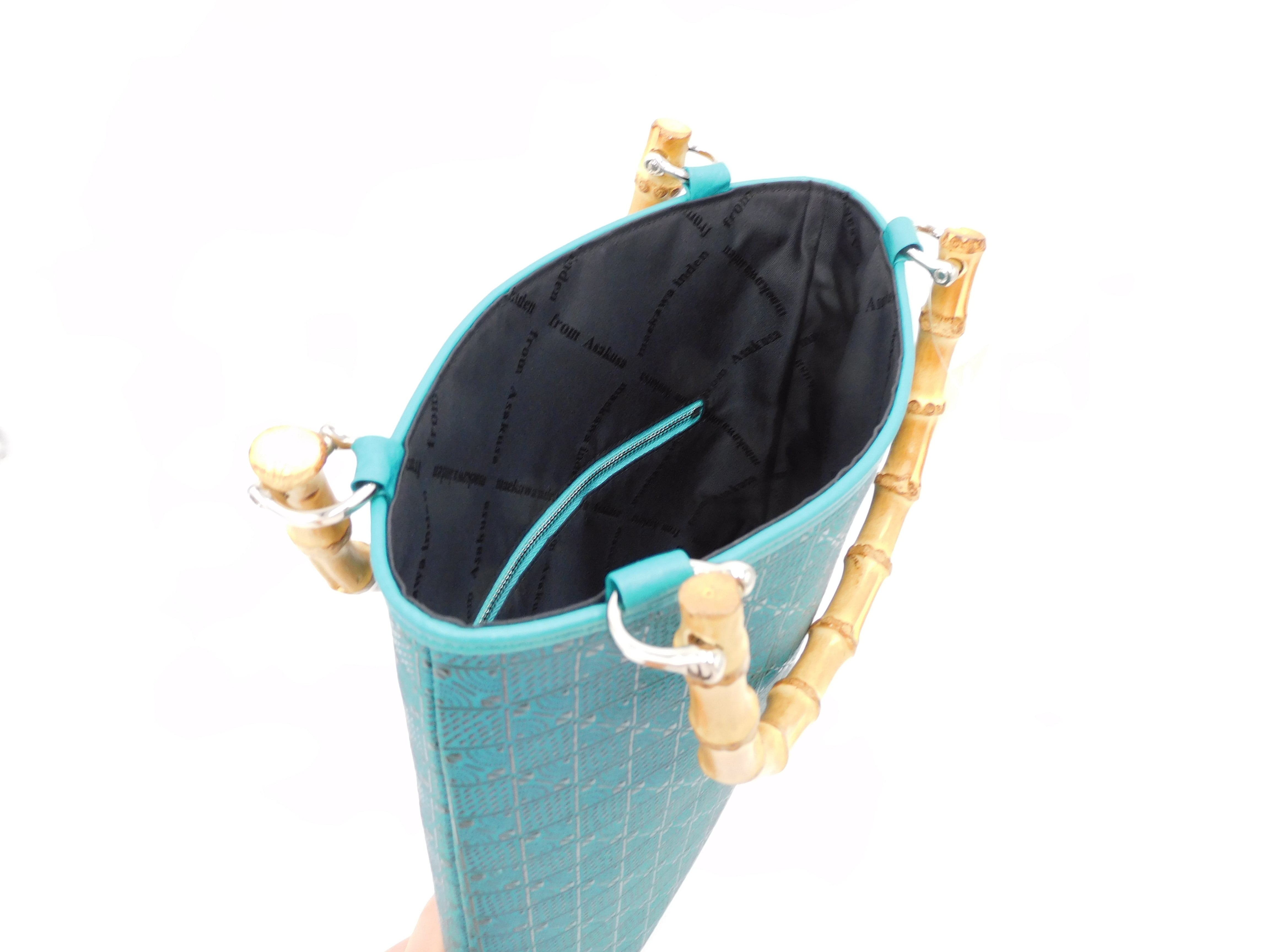 バンブー手提げ(特大)ターコイズ/白 源氏香柄