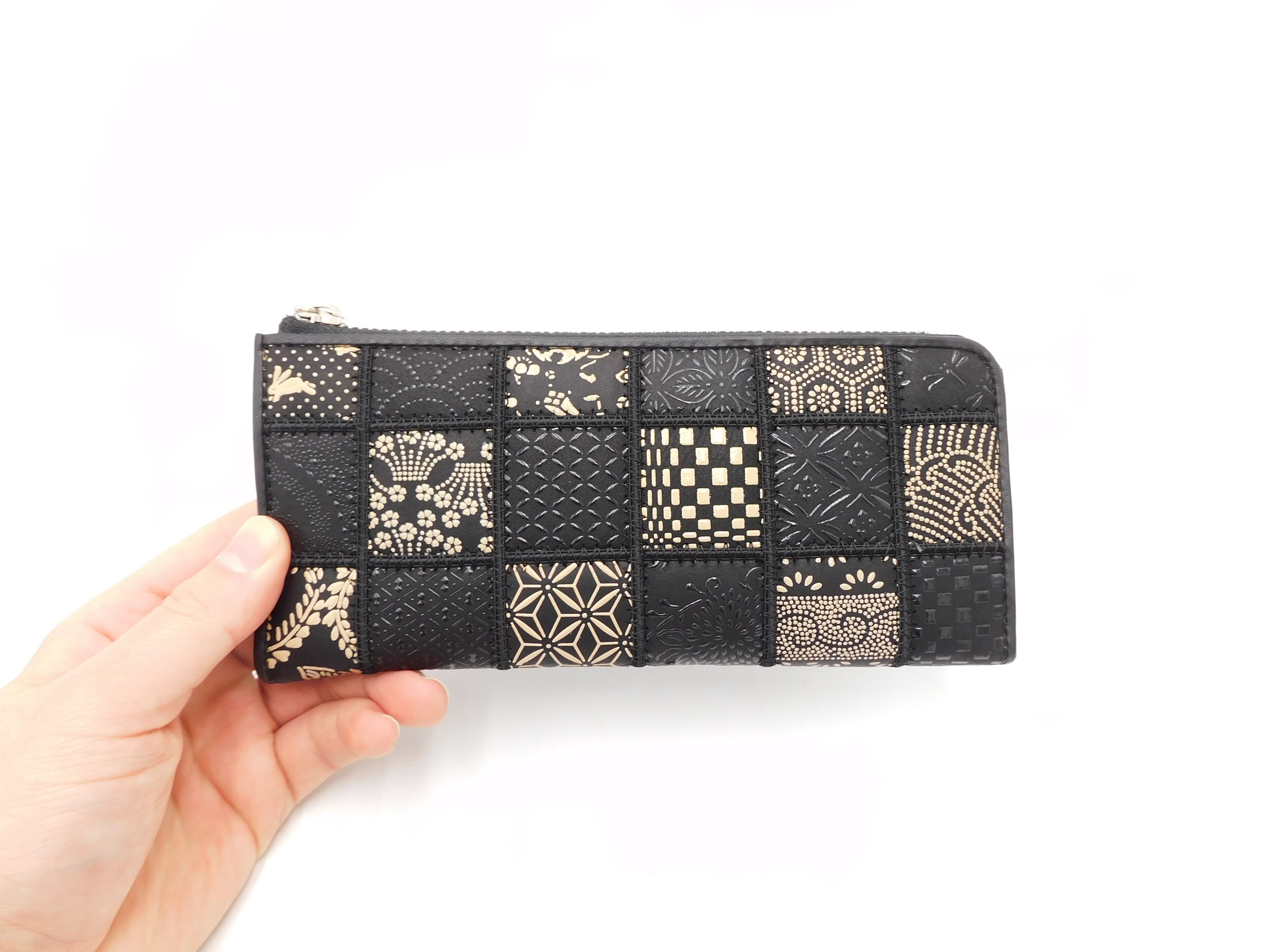 パッチワーク印傳 外Lファスナー長財布 モノトーン
