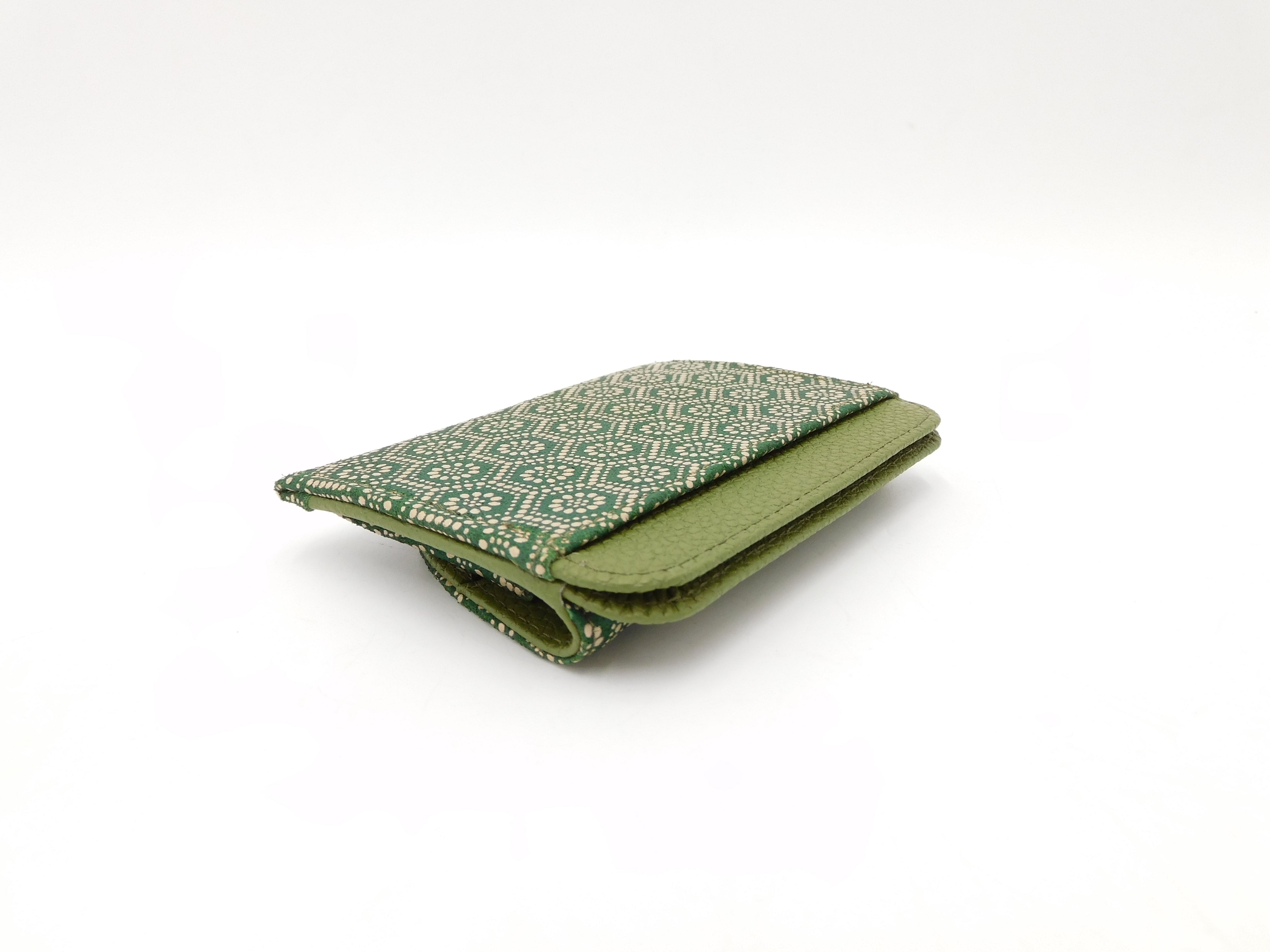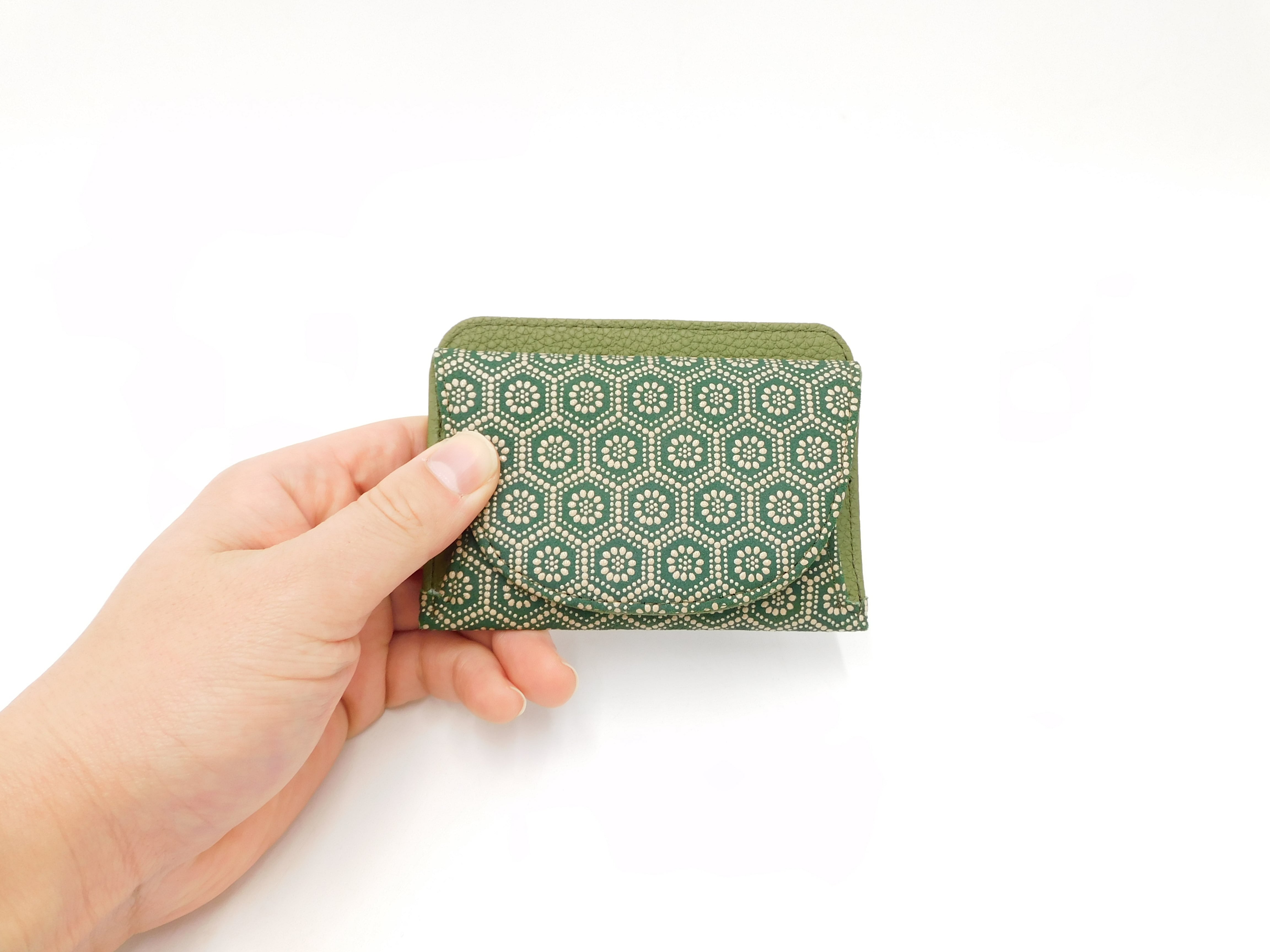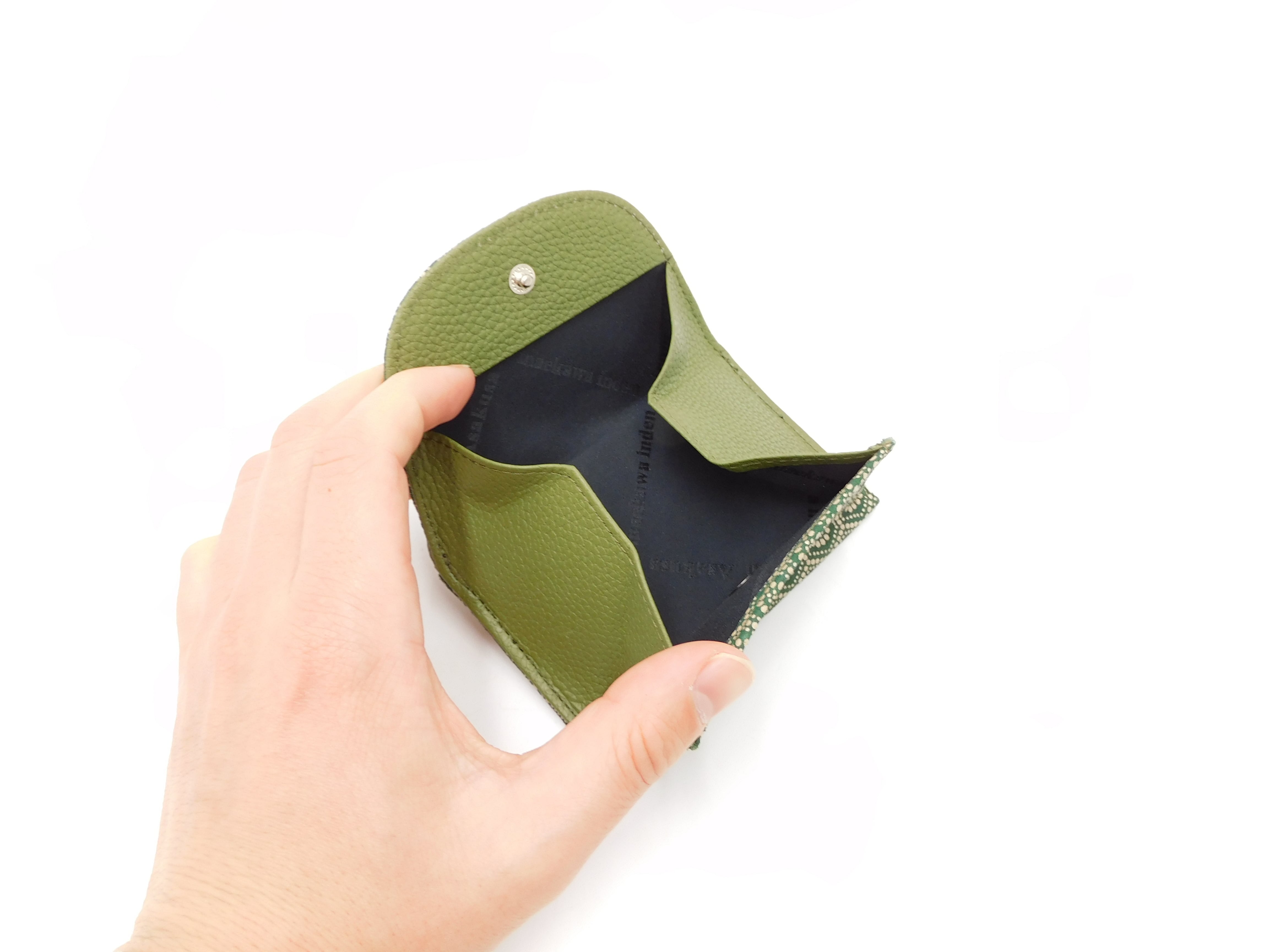 外側には小銭入れを備え、中央には札入れが1か所。さらに前後に1つずつカードポケットを配置し、シンプルながら日常に十分な機能を兼ね備えています。幅をやや広めにとった設計により、お札やカードの出し入れがしやすいのも特徴です。