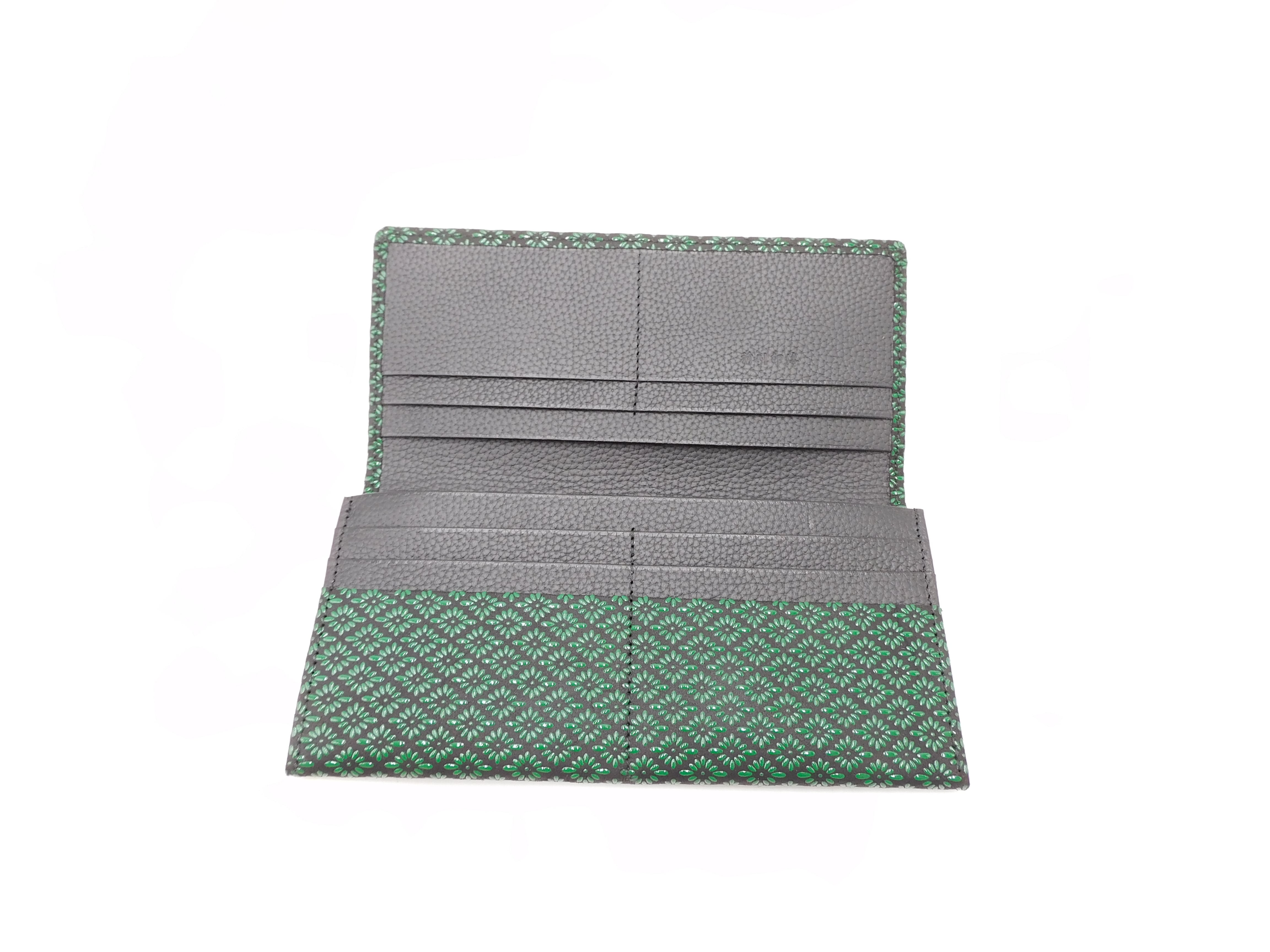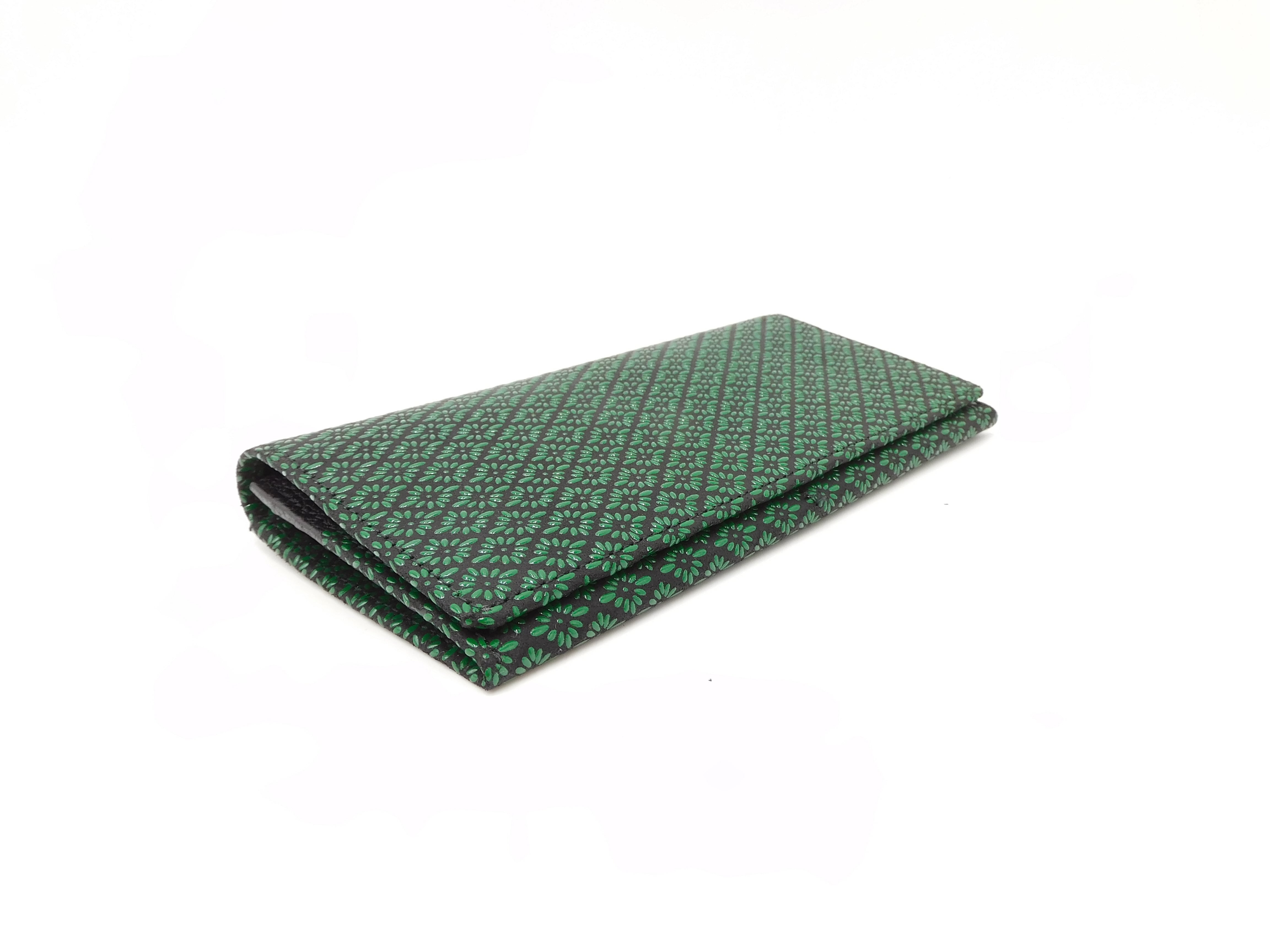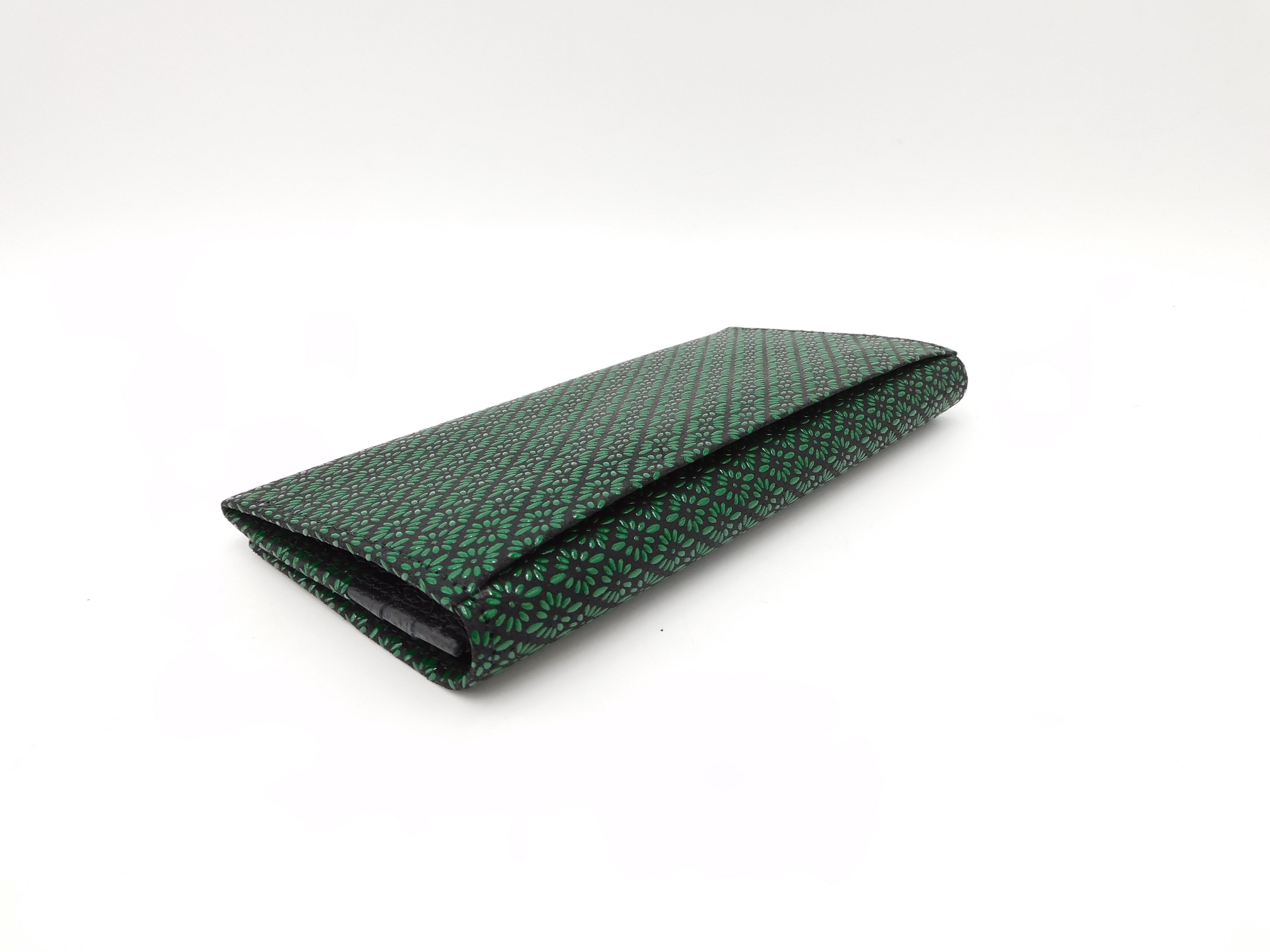 長財布小銭付 黒/緑 菱菊柄