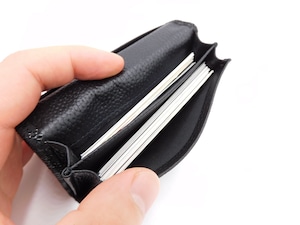 ポケットに収まりやすいサイズながら、内部には4つのカードポケットと背面ポケットが付いており、名刺を50枚程度収納可能。名刺が散らばらず、スッキリ整理して持ち運べると好評です。使い込むほどに風合いが増し、あなただけの特別な一品へと変化します。