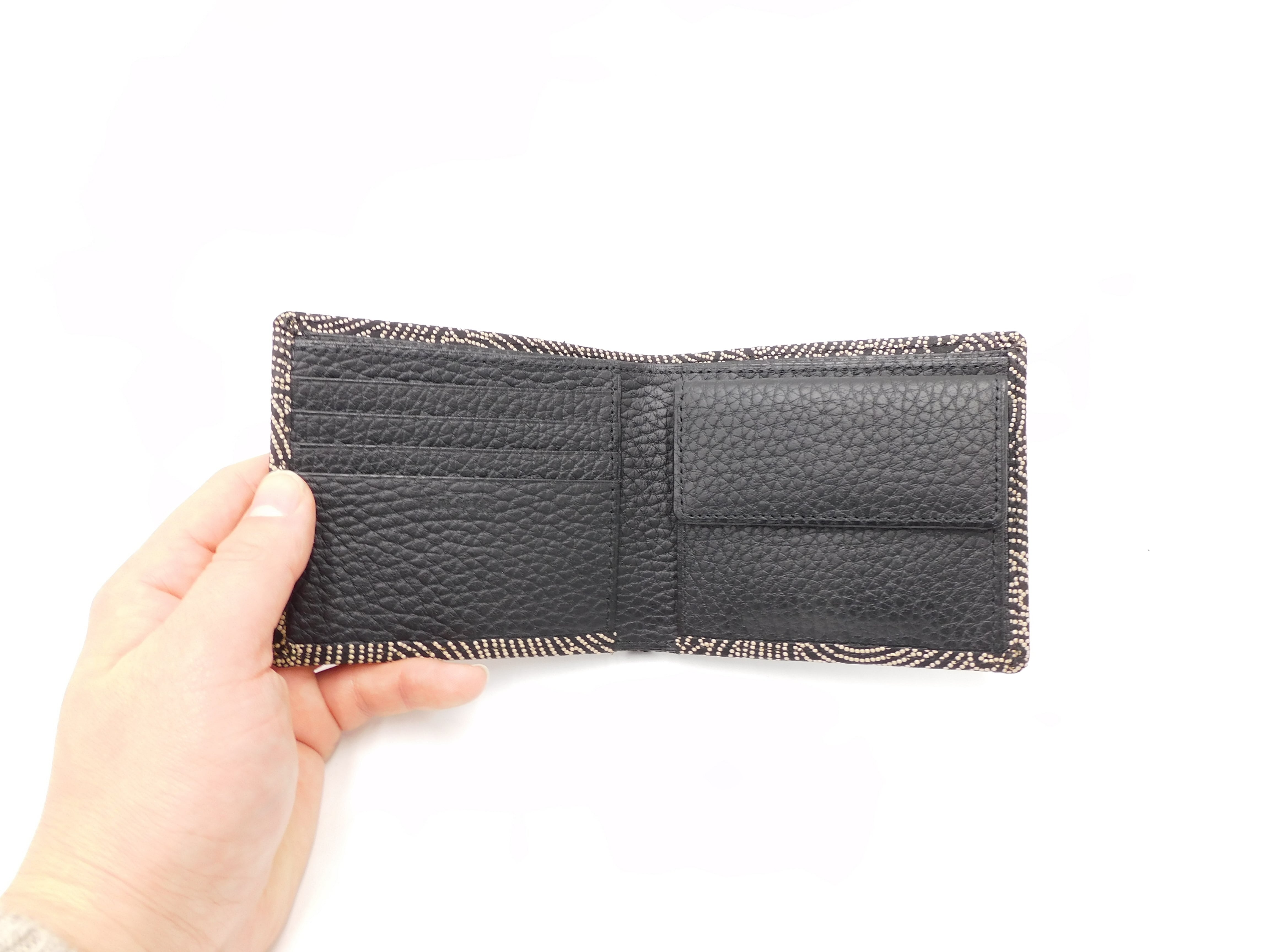 コンパクトなサイズながら、仕切り付きの札入れと7つのカードポケットを備え、日常使いに十分な収納力を確保。