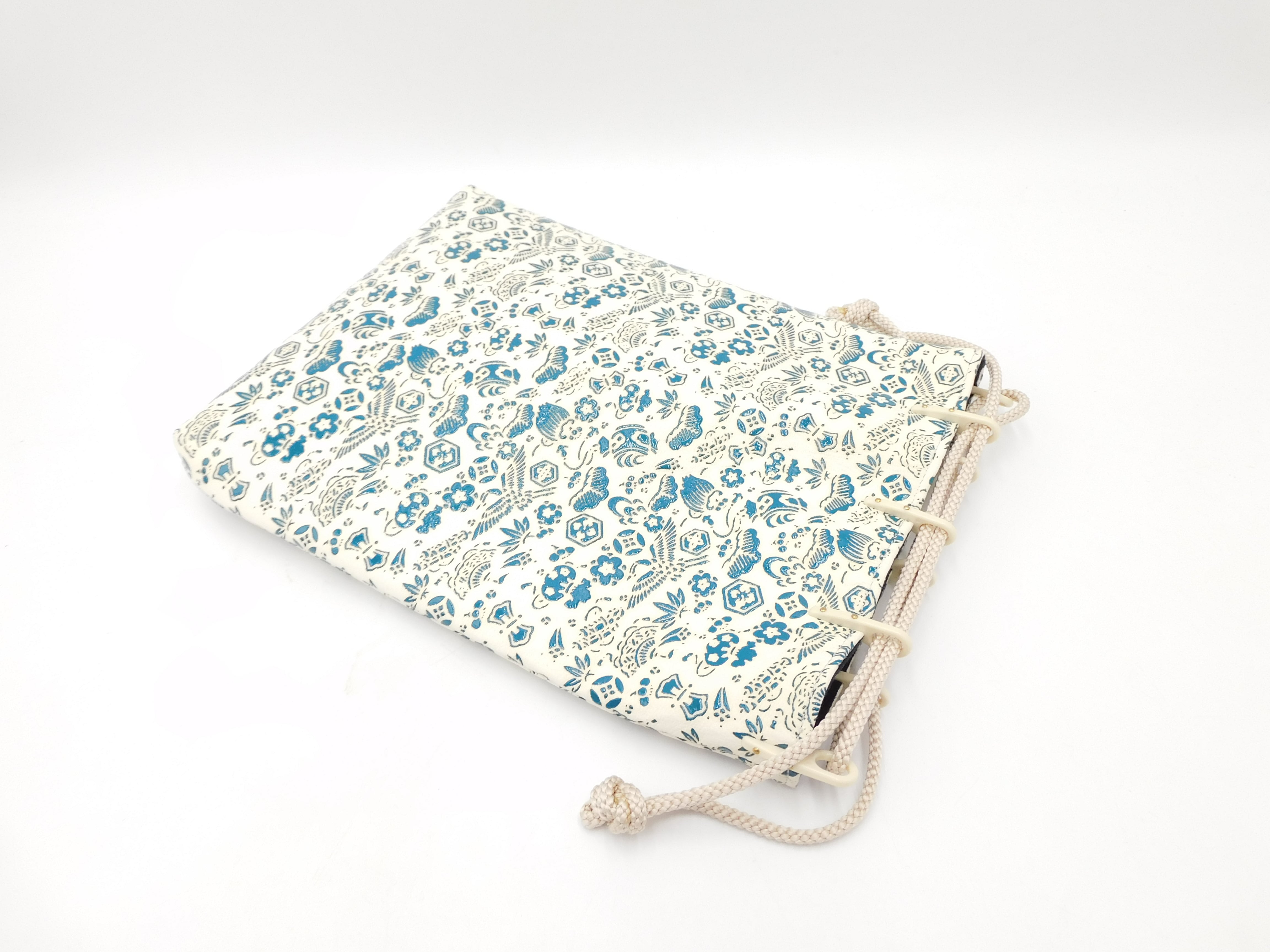 合切袋(中)白/青 宝尽くし柄