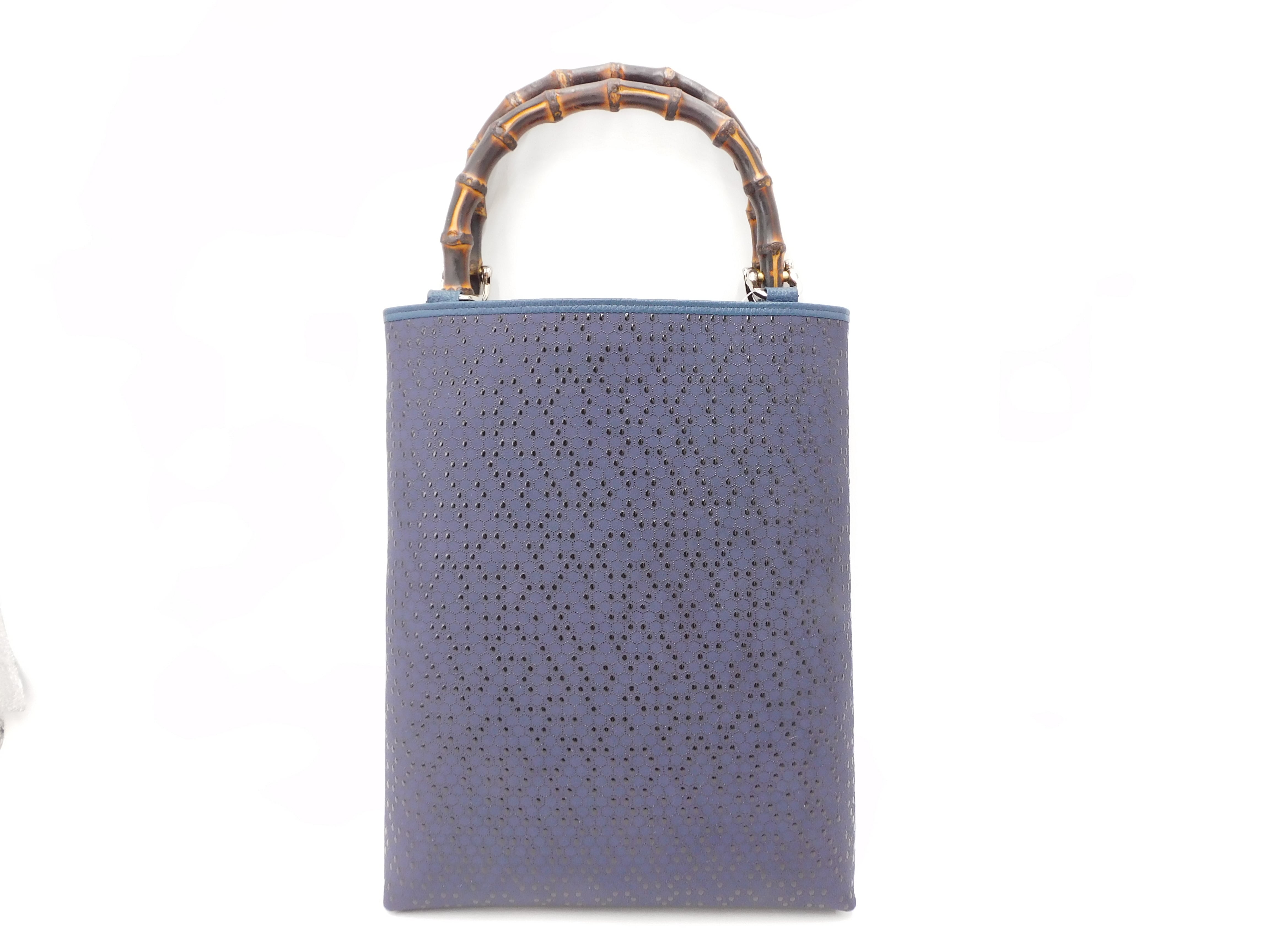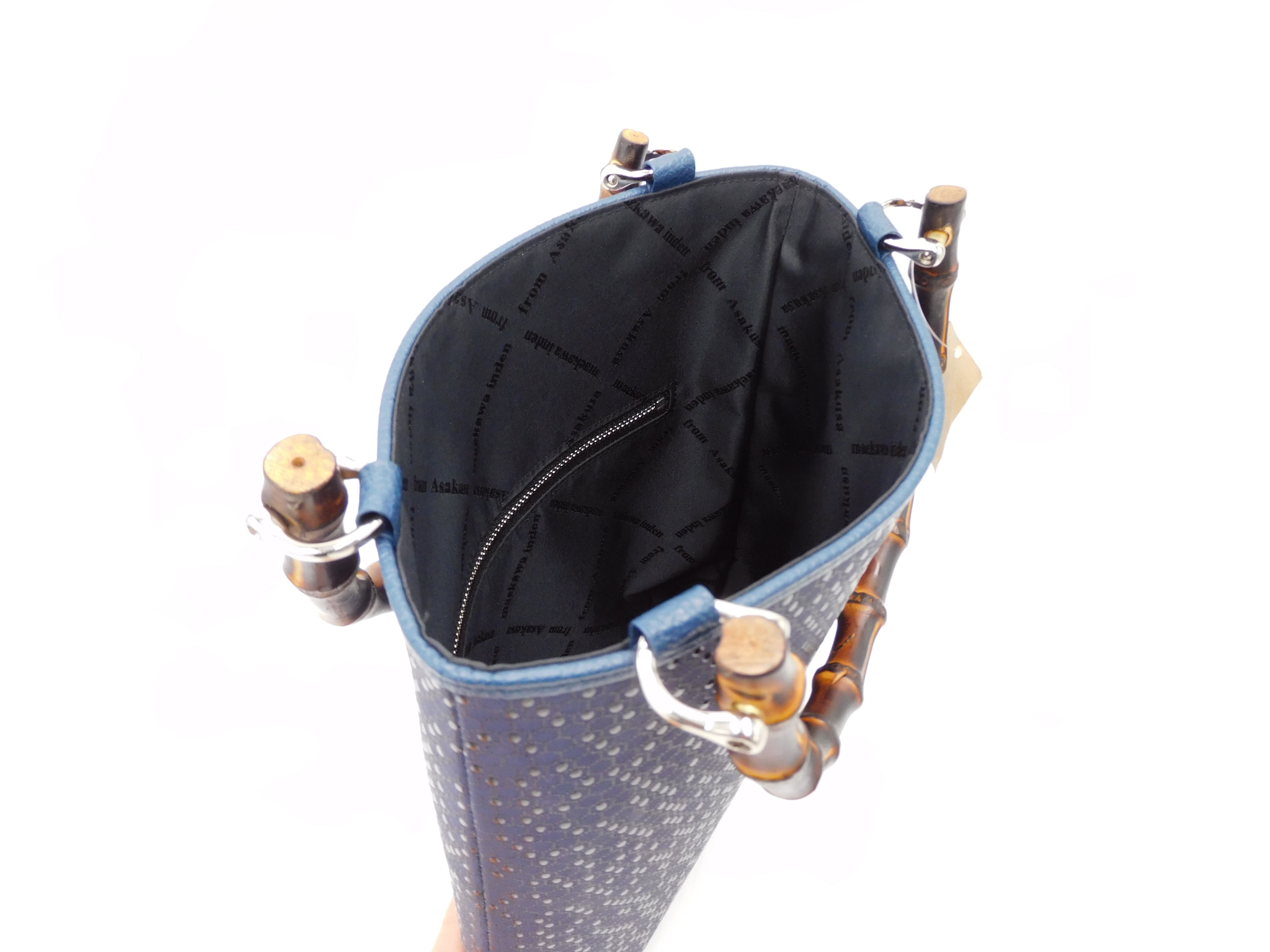 バンブー手提げ(大)紺/黒 目入り亀甲柄