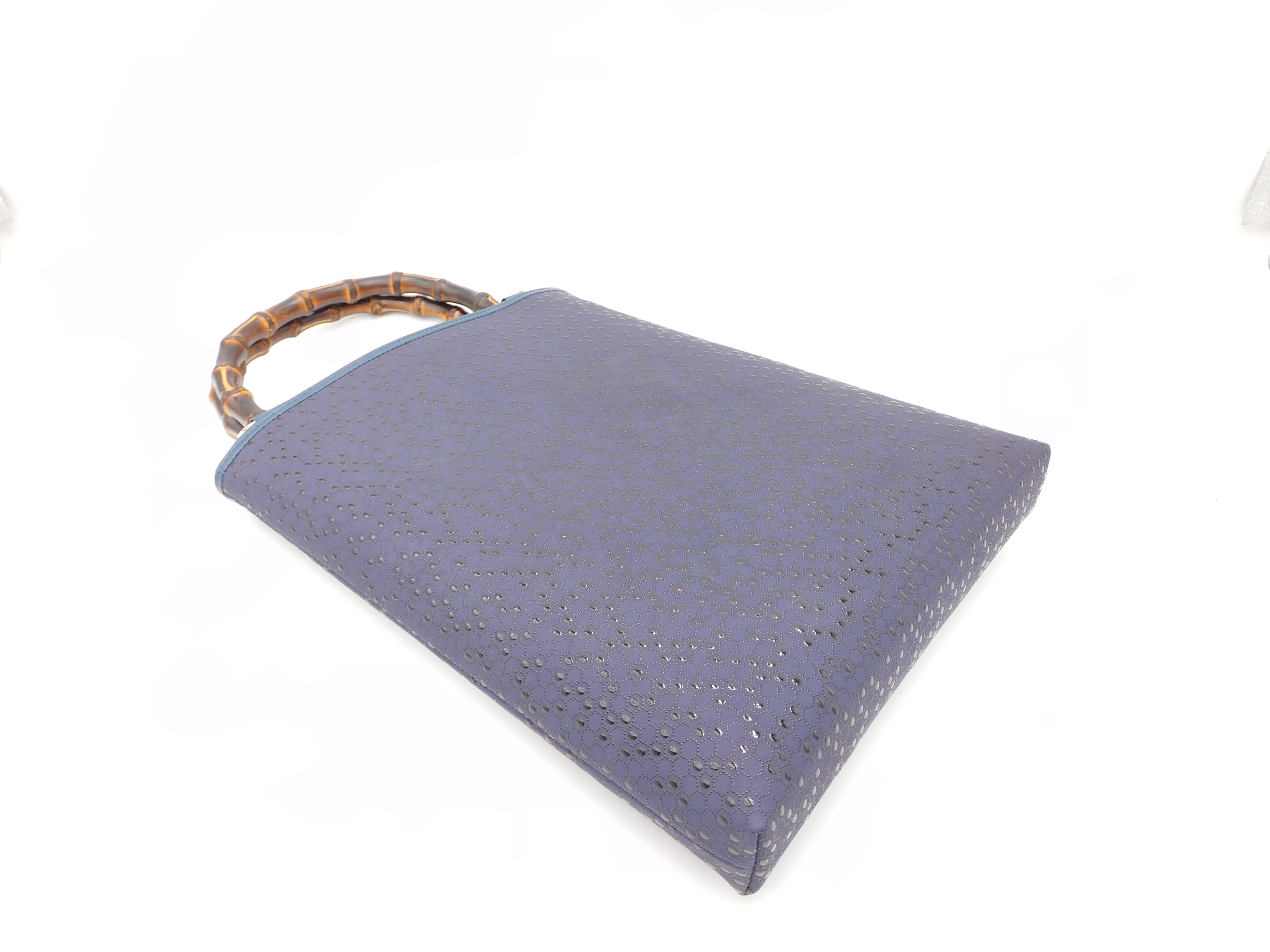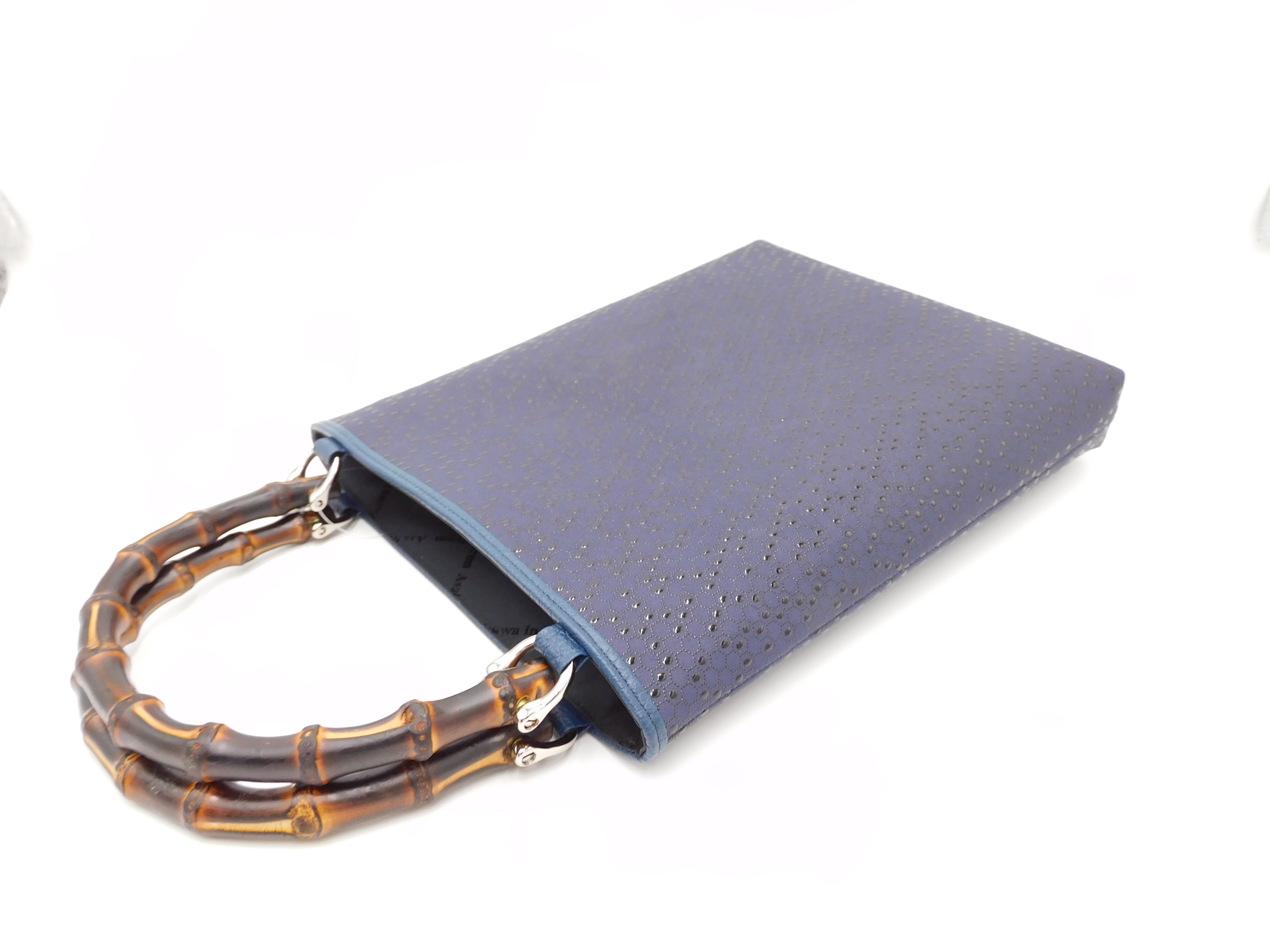 伝統技法による鹿革と漆の美しい模様に、本物の竹の持ち手を合わせた手提げです。