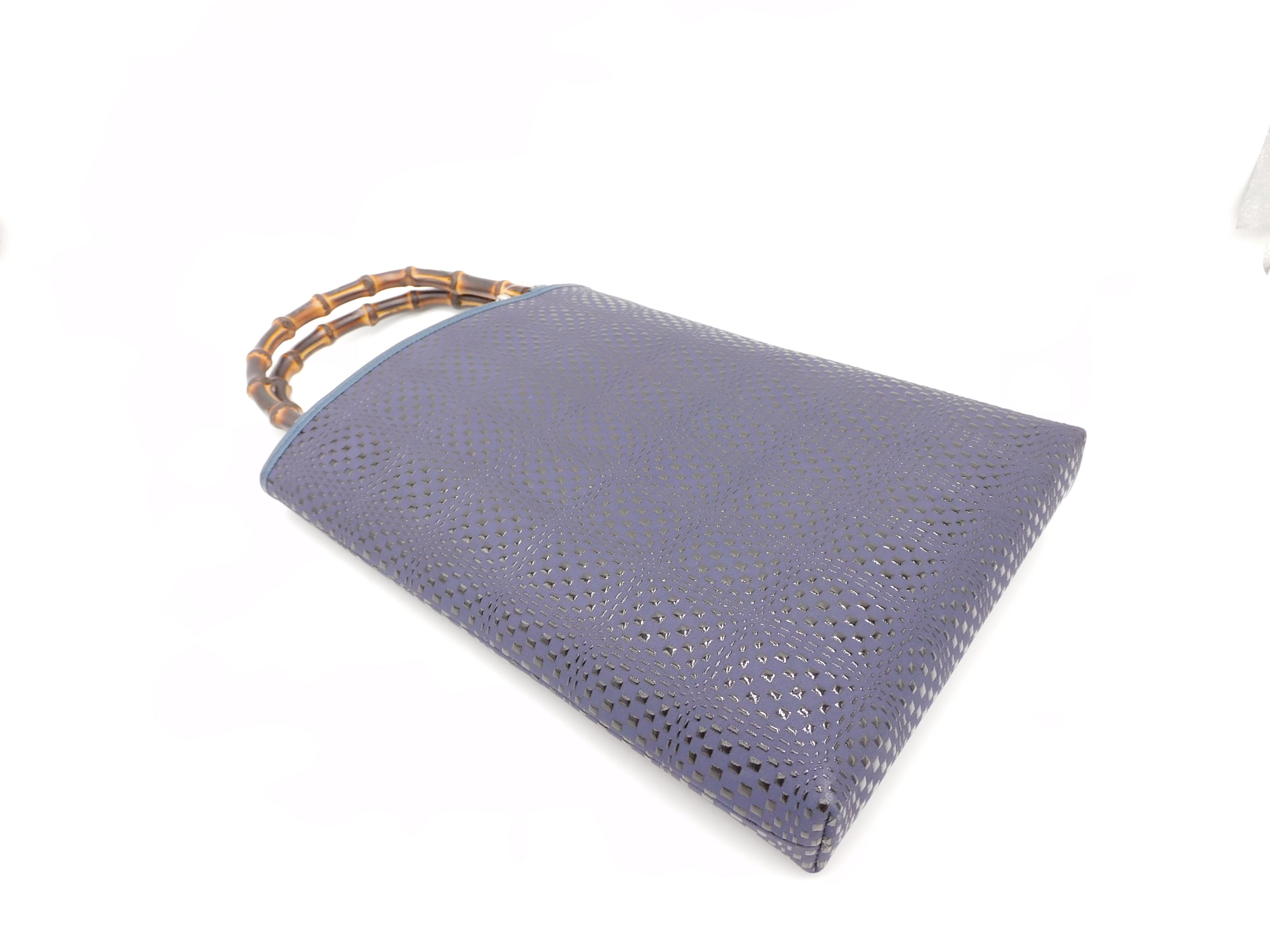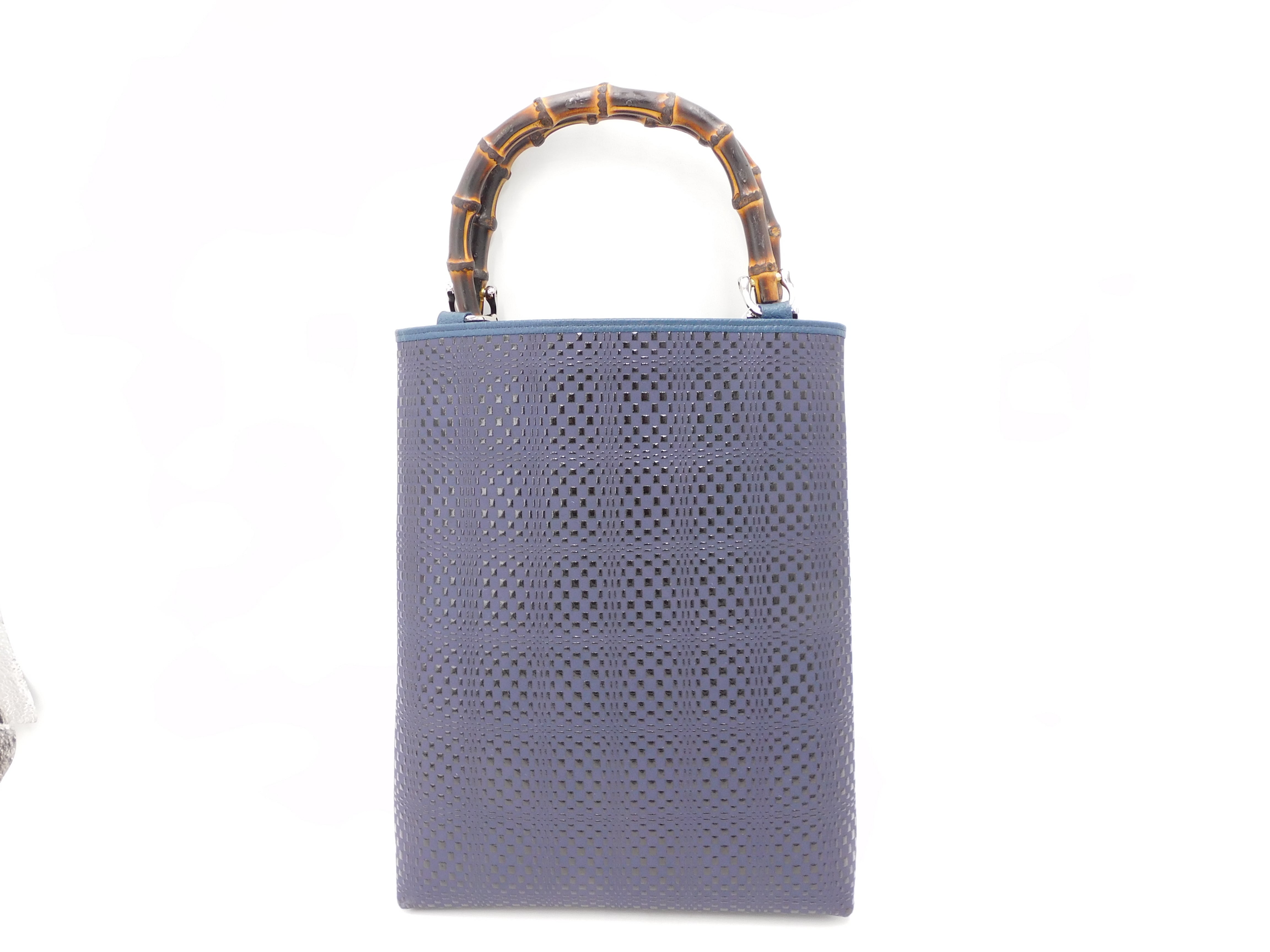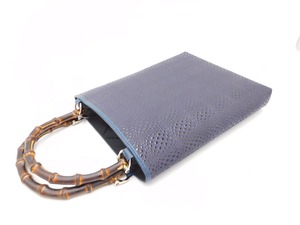伝統技法による鹿革と漆の美しい模様に、本物の竹の持ち手を合わせた手提げです。