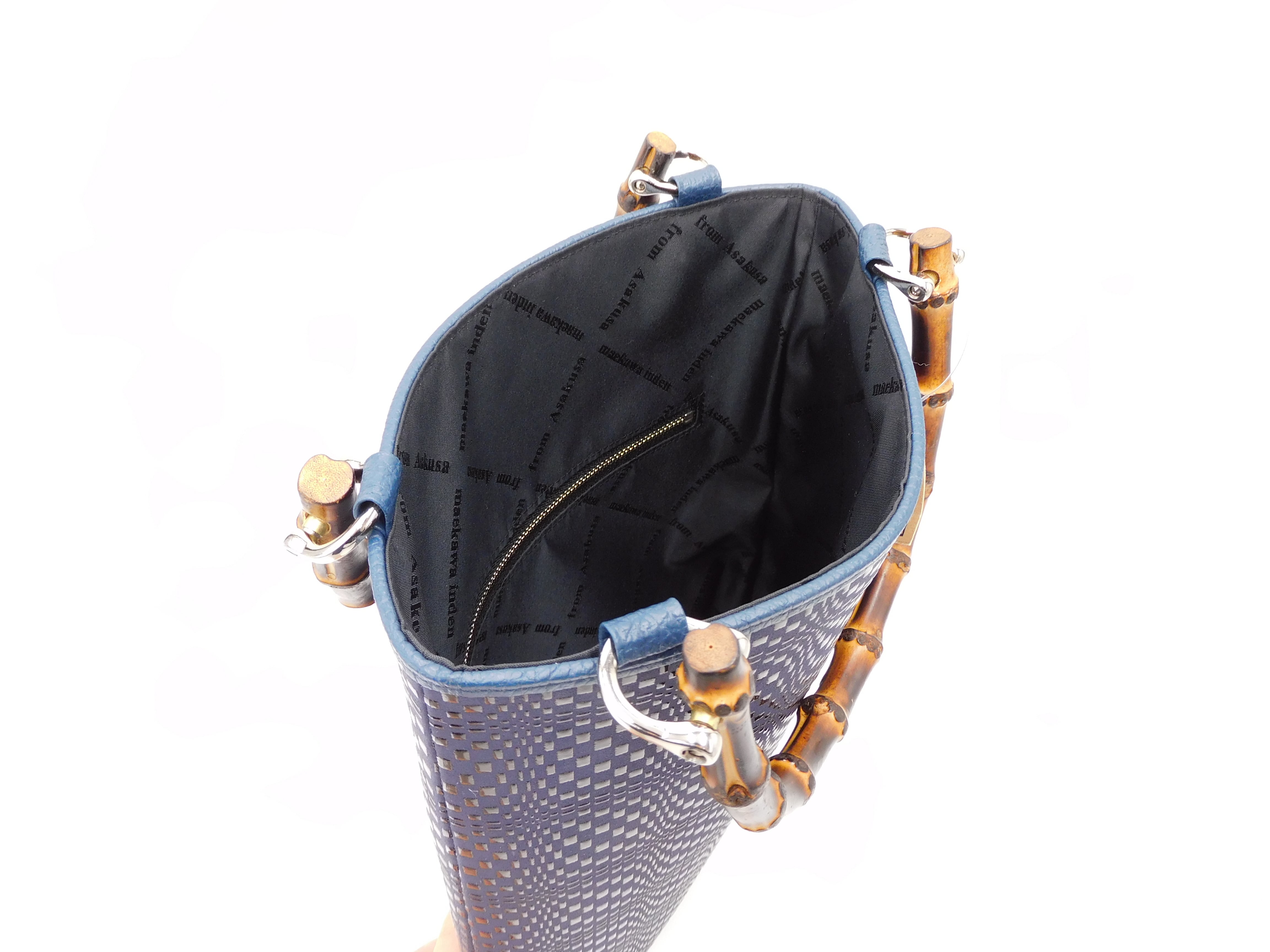 バンブー手提げ(大)紺/黒 変わり市松柄