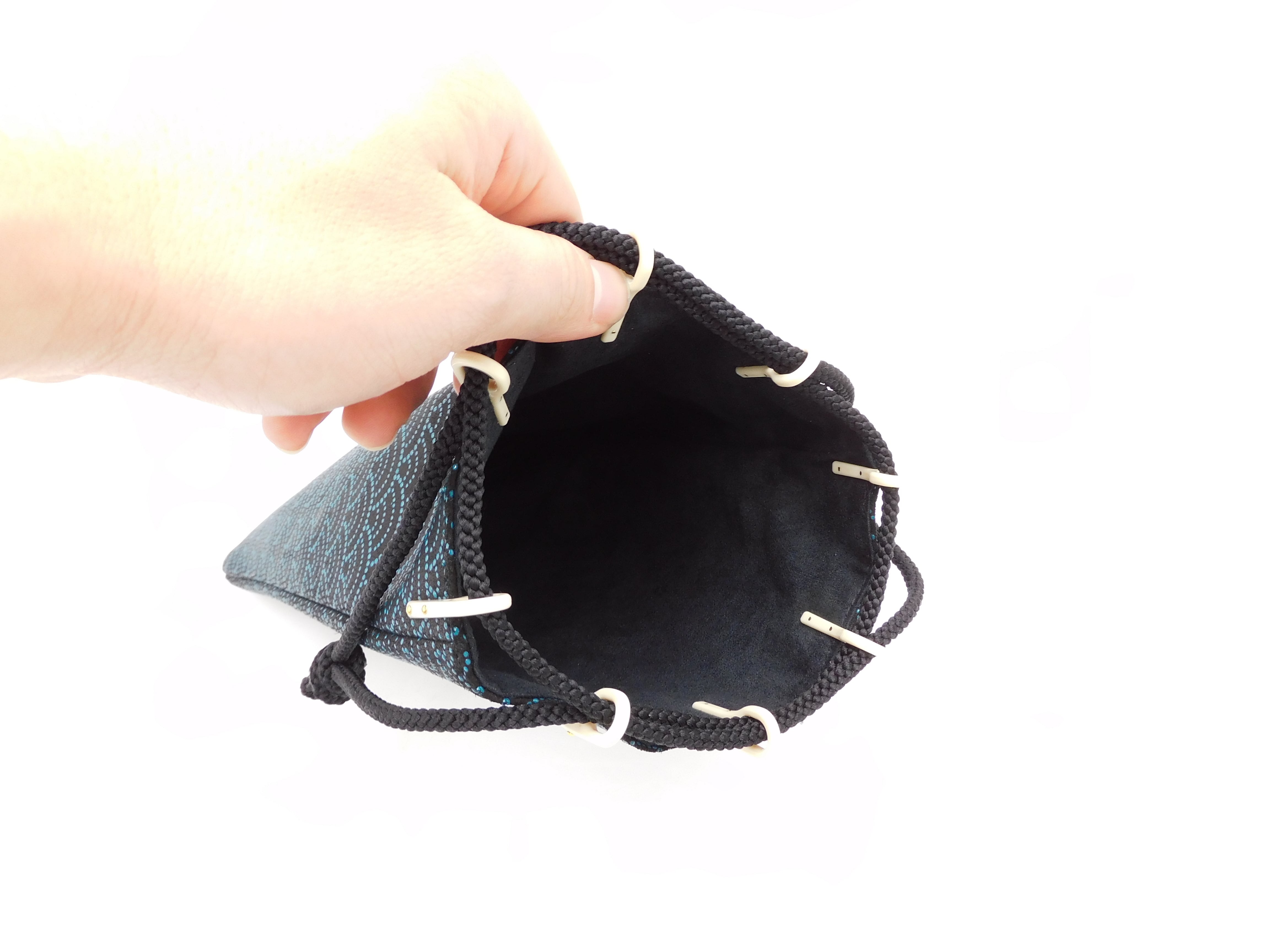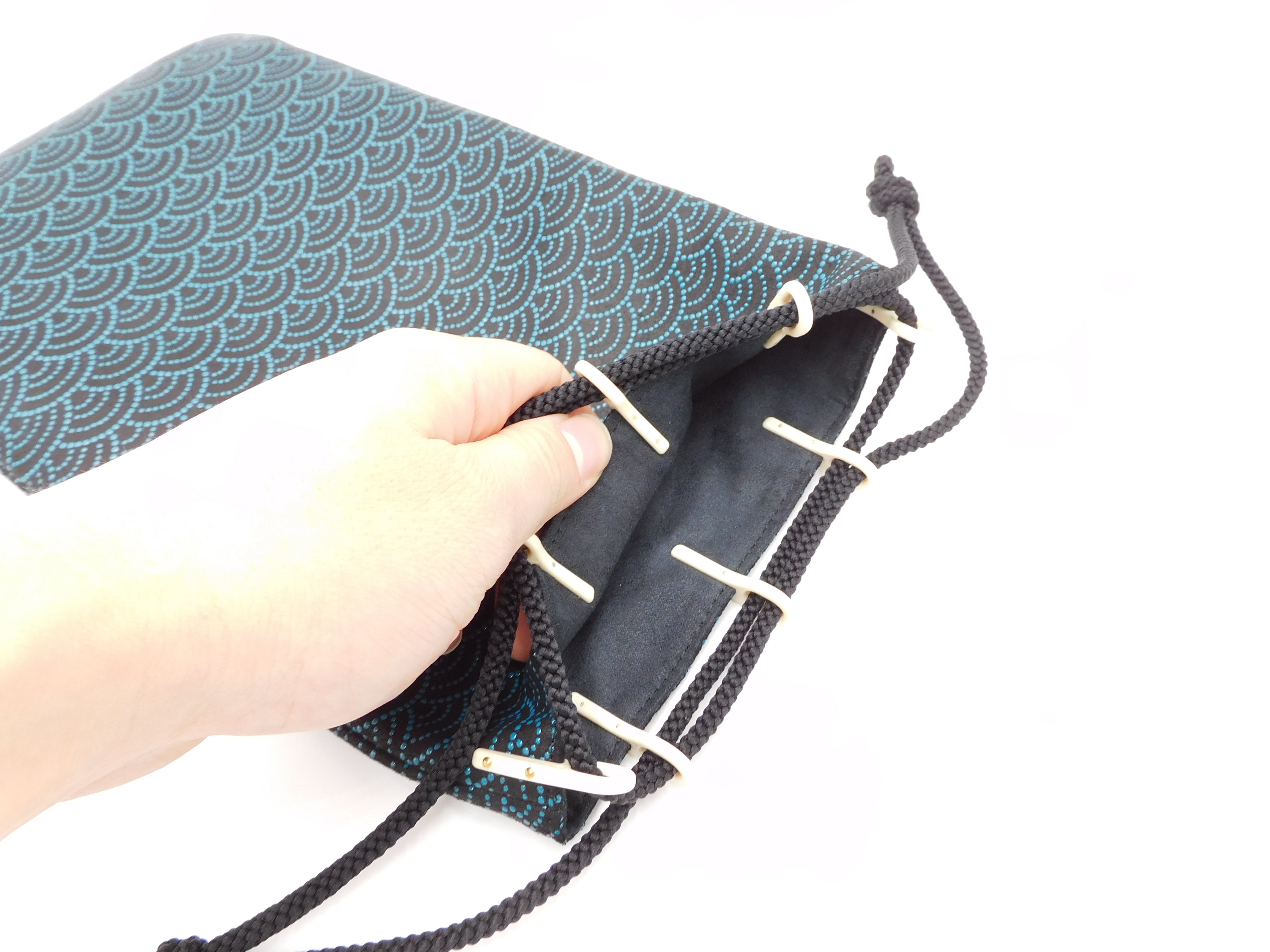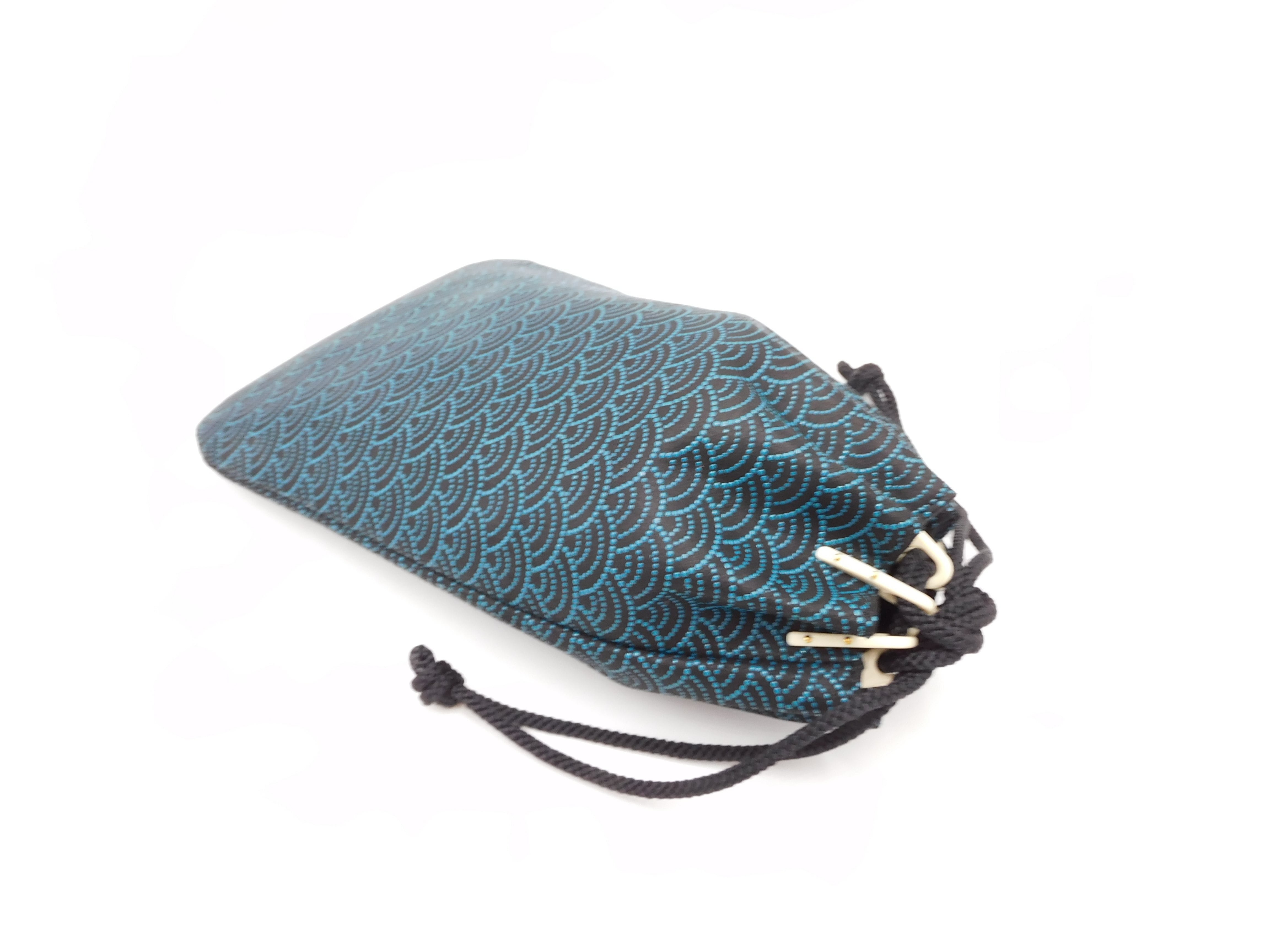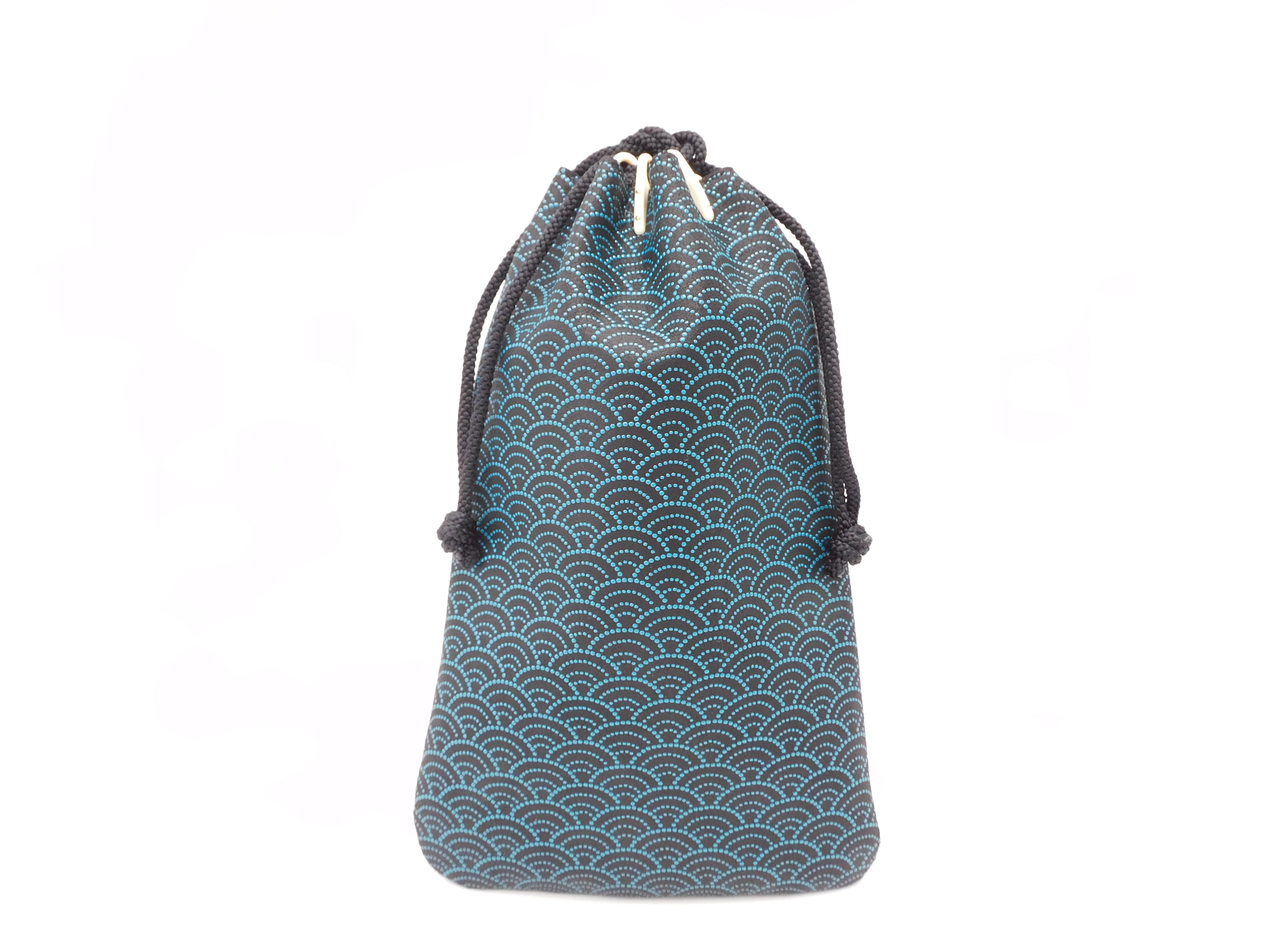 合切袋(小)黒/青 青海波柄