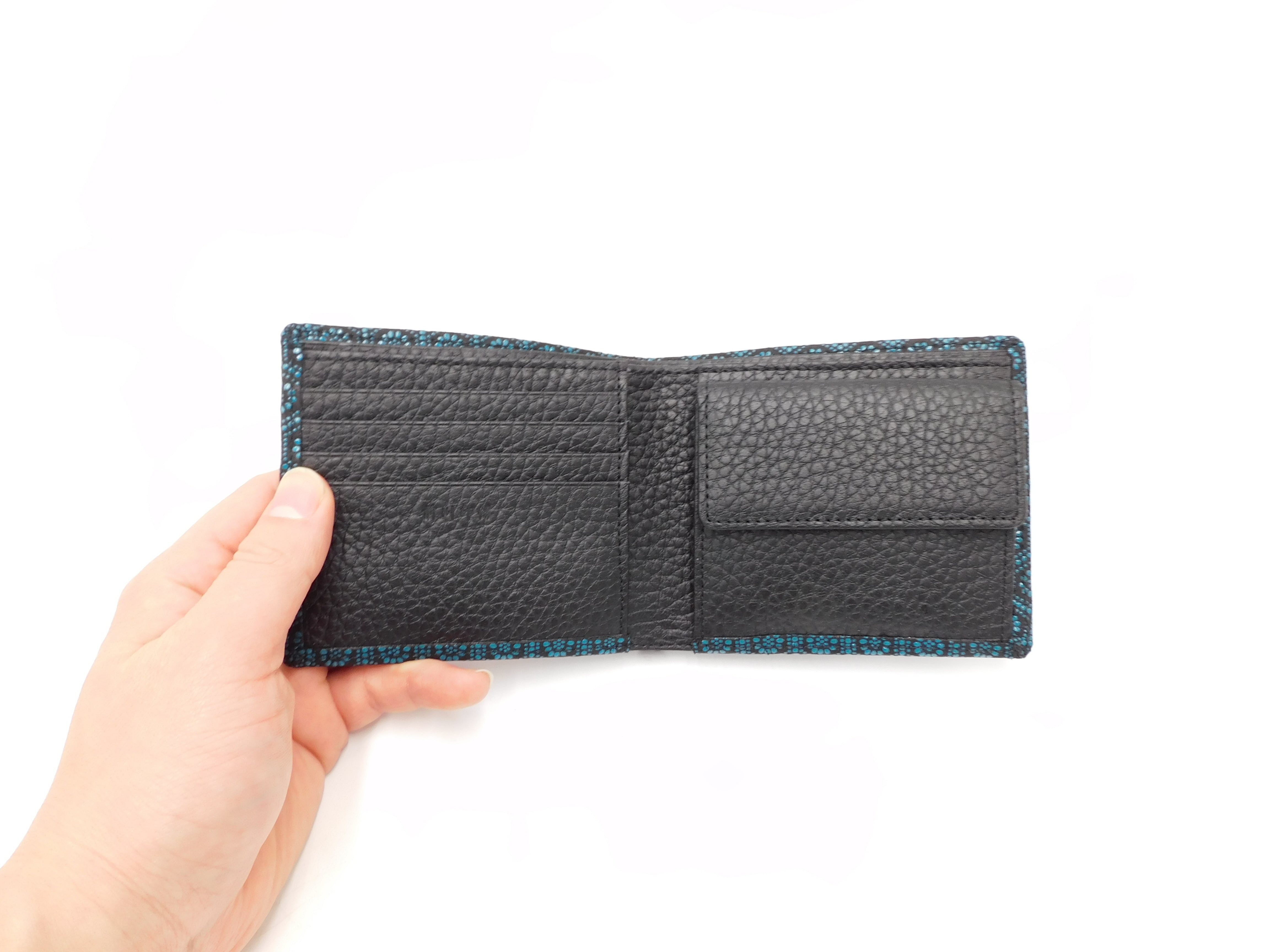 札入(小銭付) 黒/青 亀甲柄