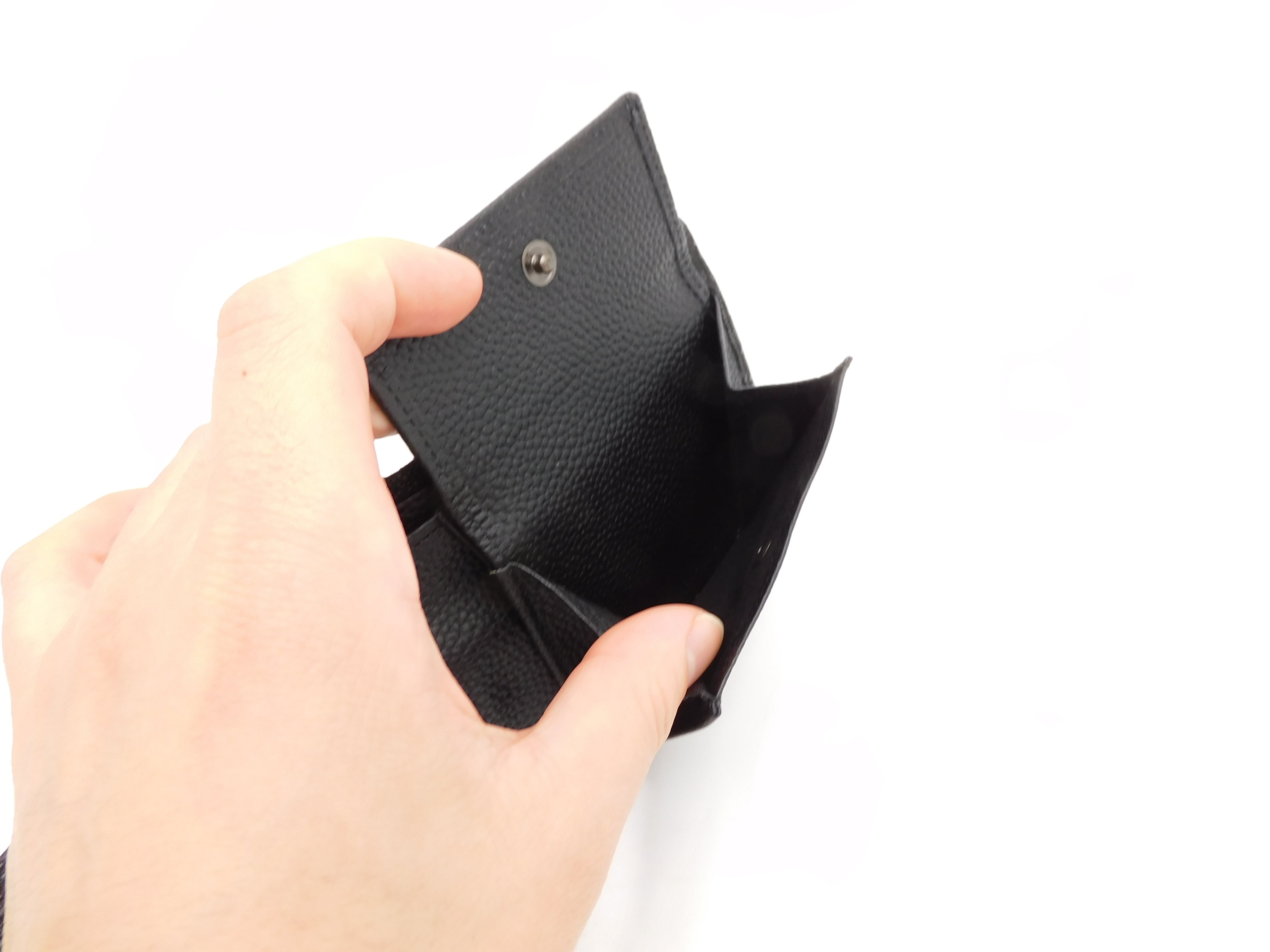 仕切り付きの札入れで整理しやすく、お札や小銭をスマートに取り出せる設計。日常使いに適した実用性を備えています。