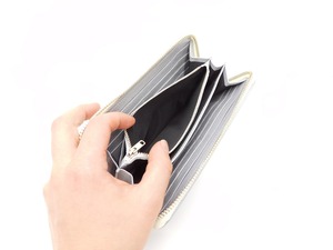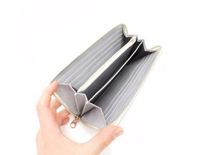 ファスナーでしっかり閉じられる、ラウンドタイプの長財布です。
