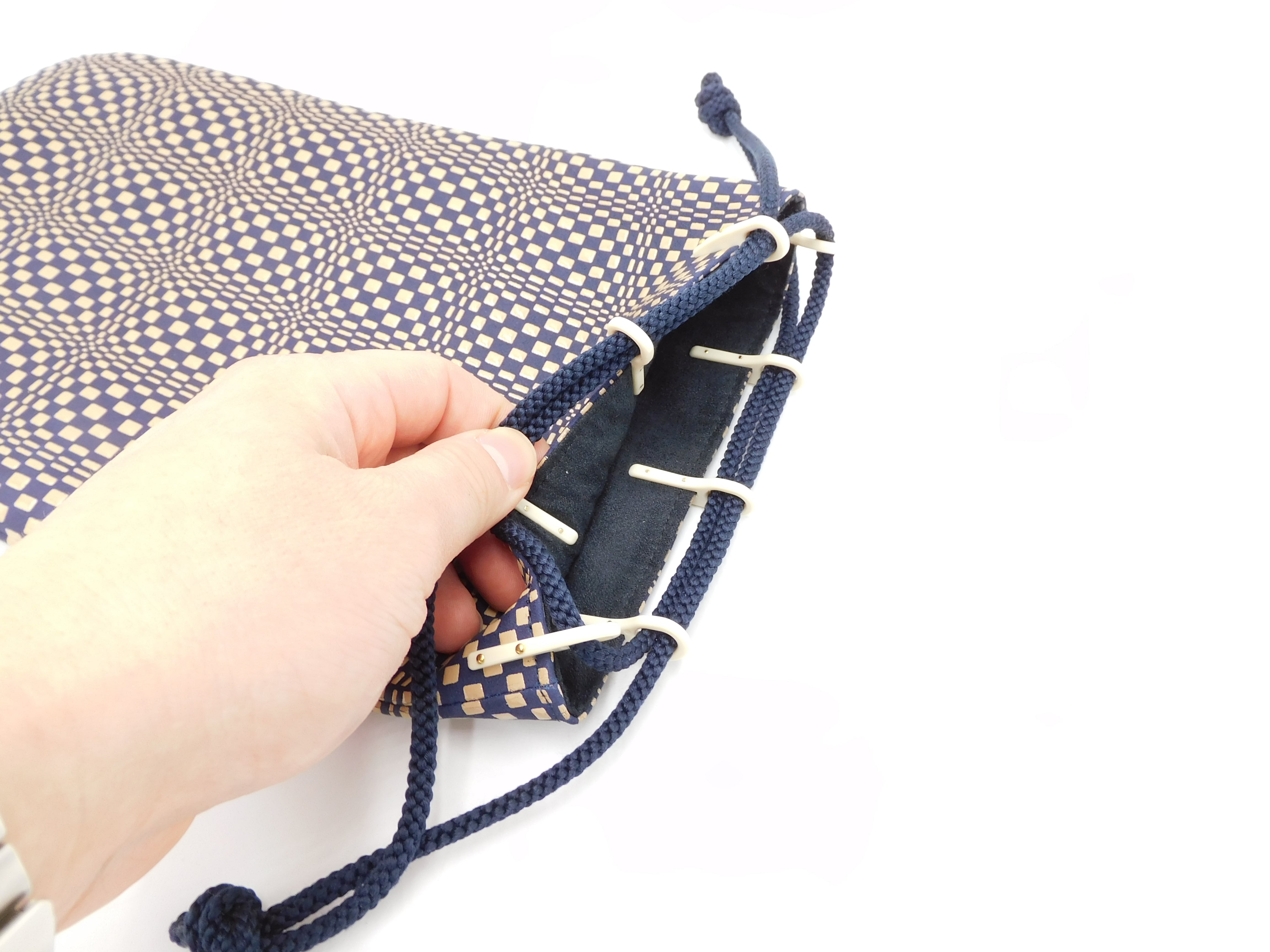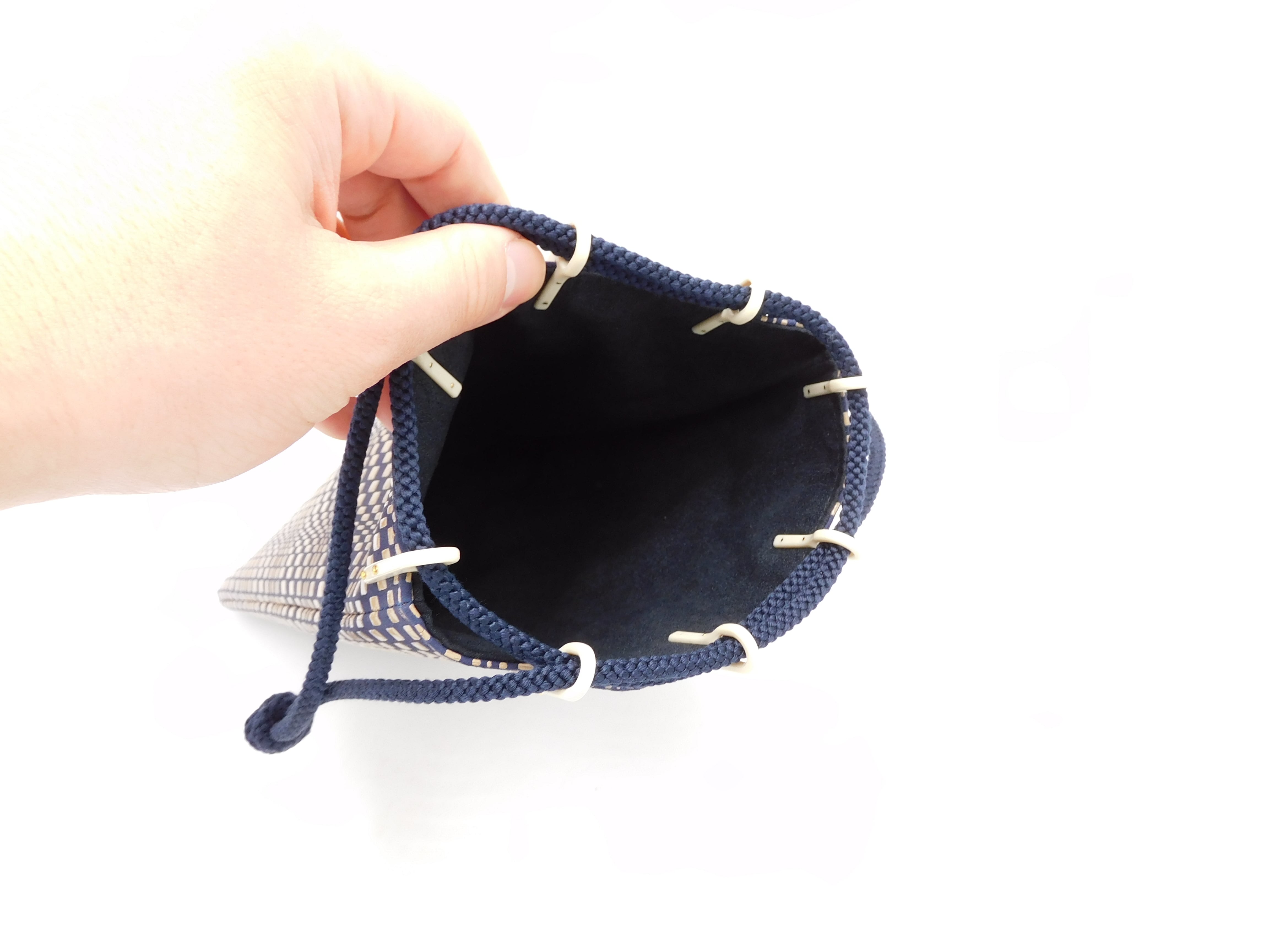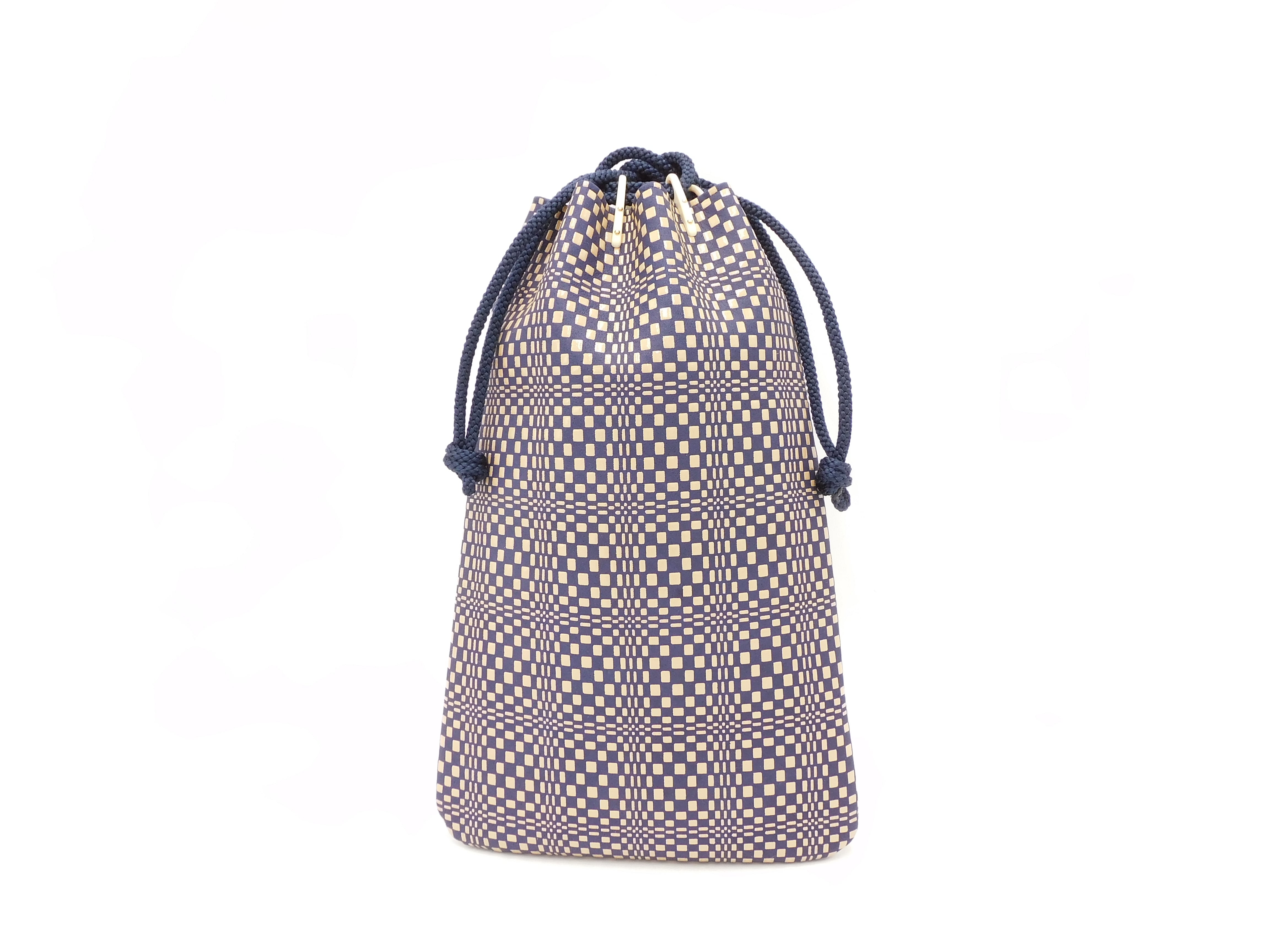 合切袋(小)紺/白 変わり市松柄