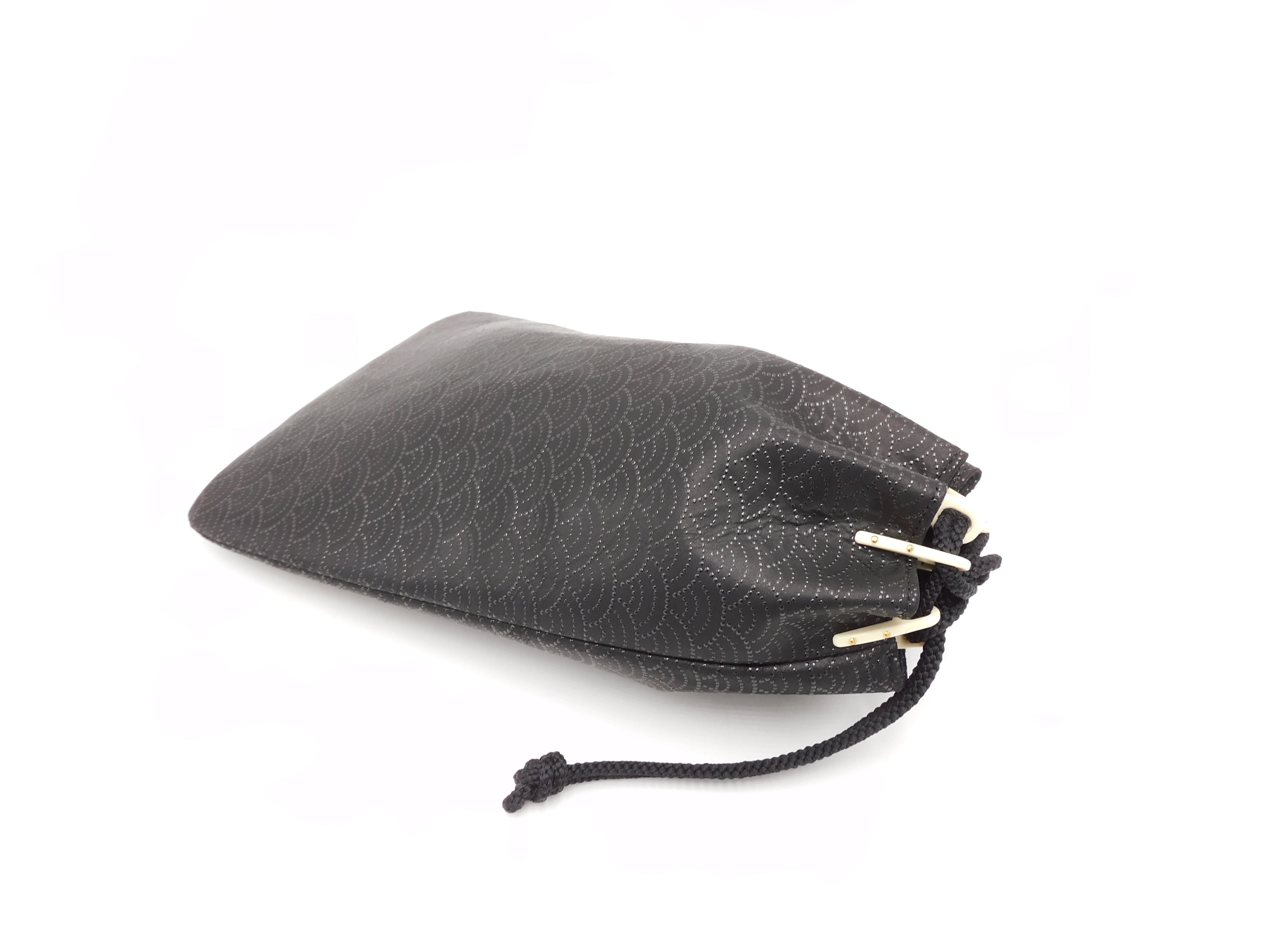 合切袋(小)黒/黒 青海波柄