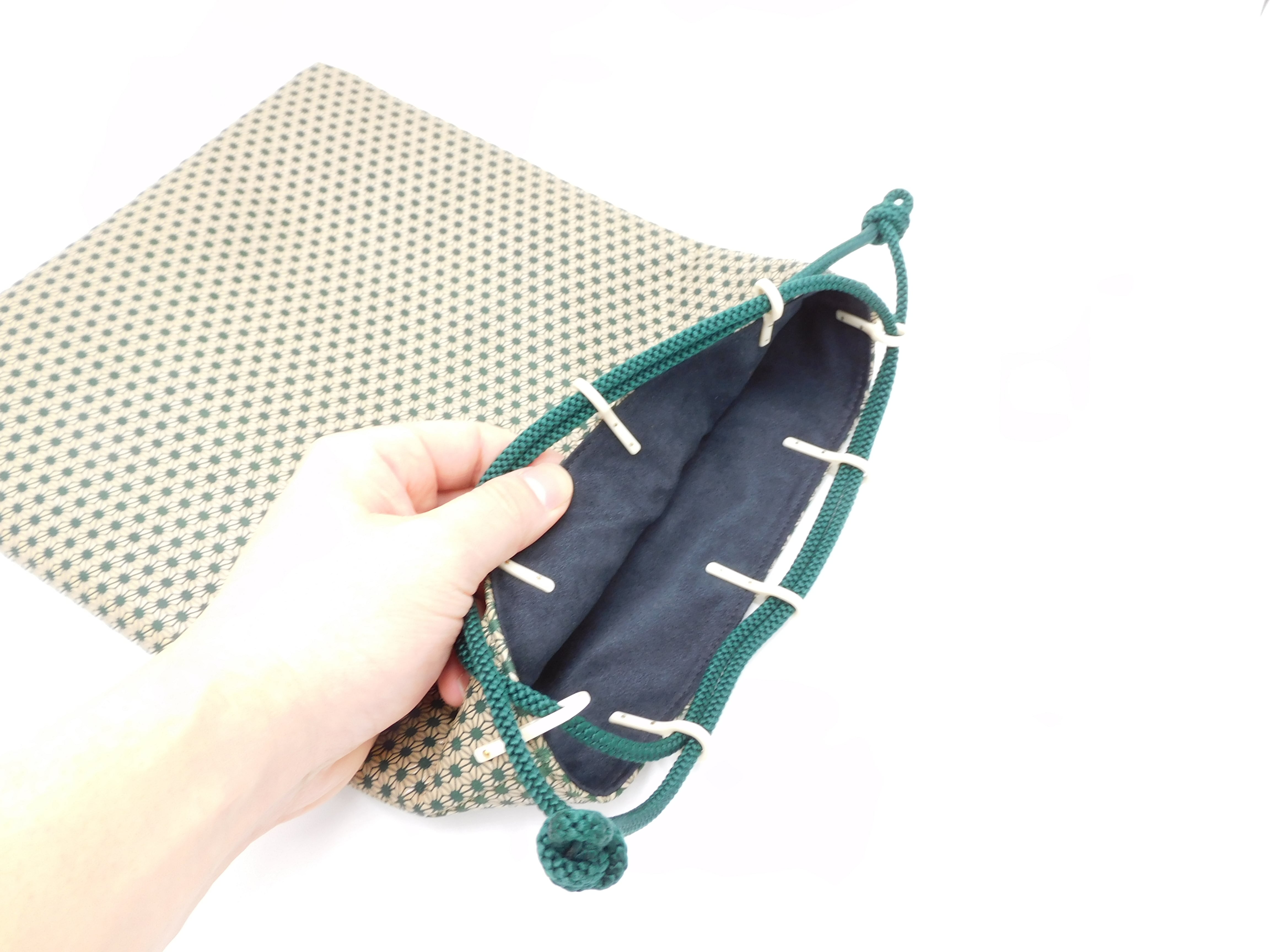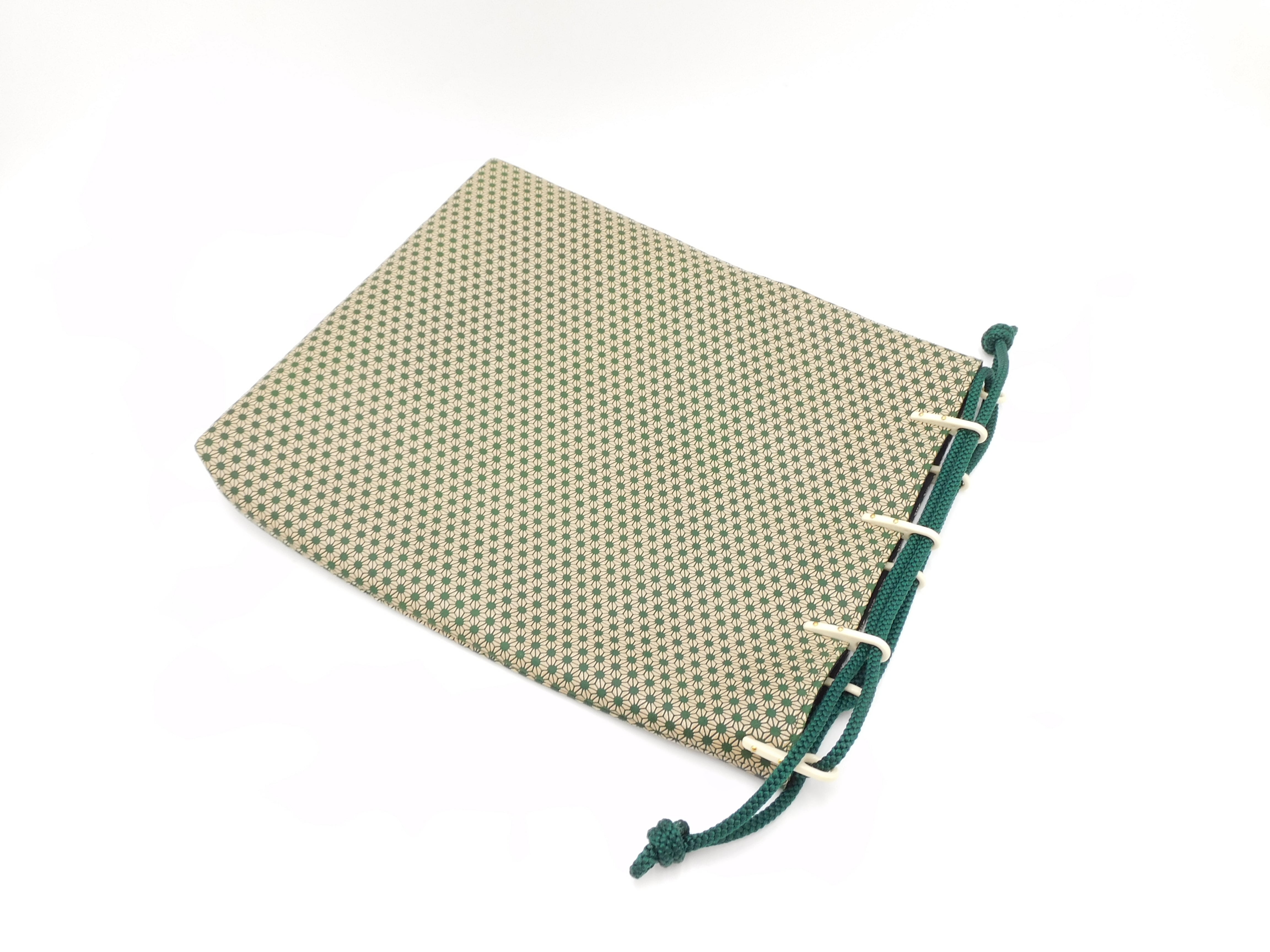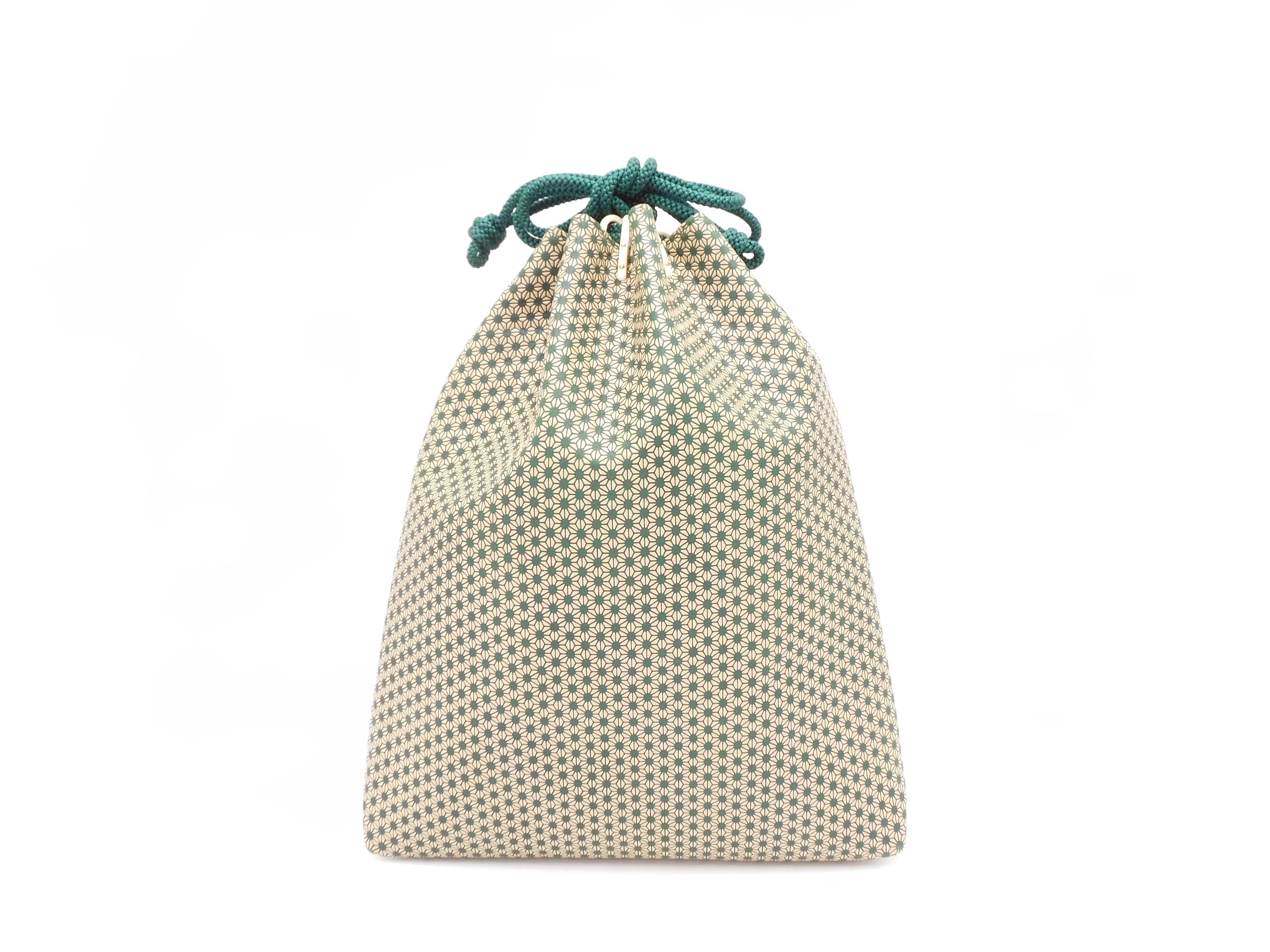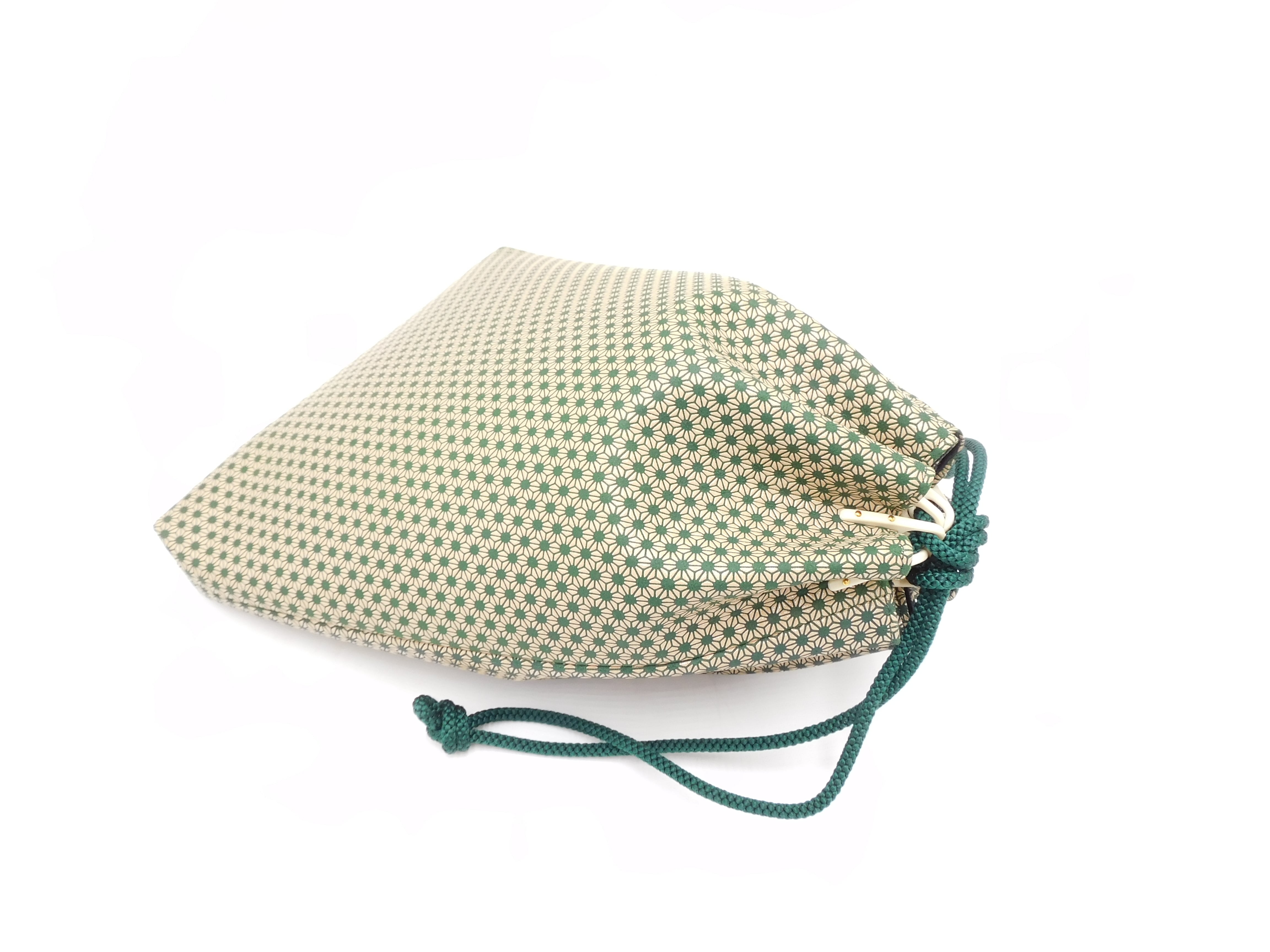 合切袋(大)緑/白 丸麻の葉柄