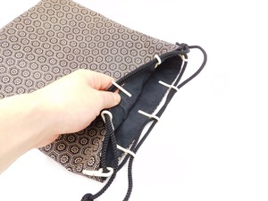 財布やスマホ、メガネケース、キーケースなど、身の回りの必需品をたっぷり収納できる合切袋です。