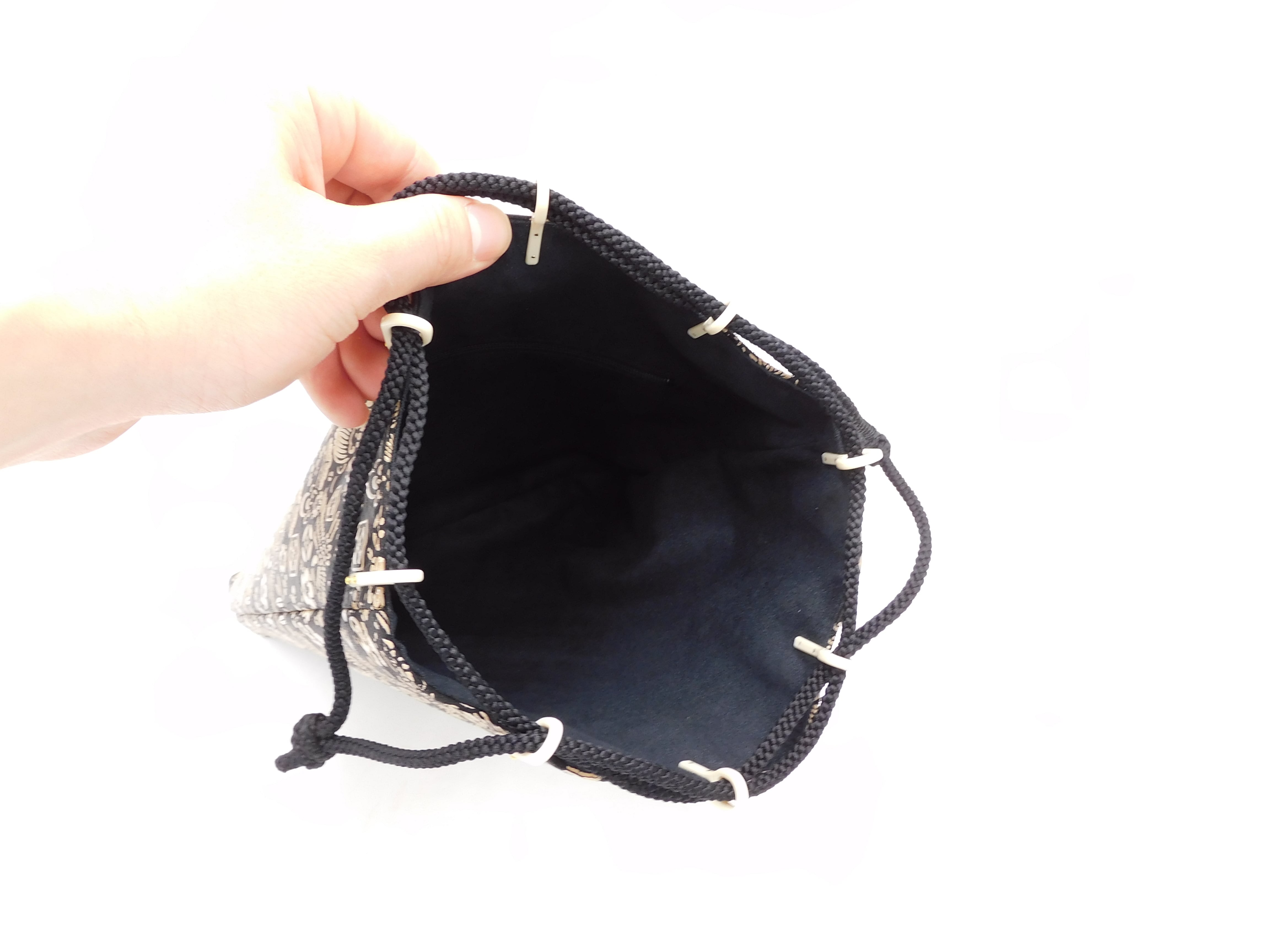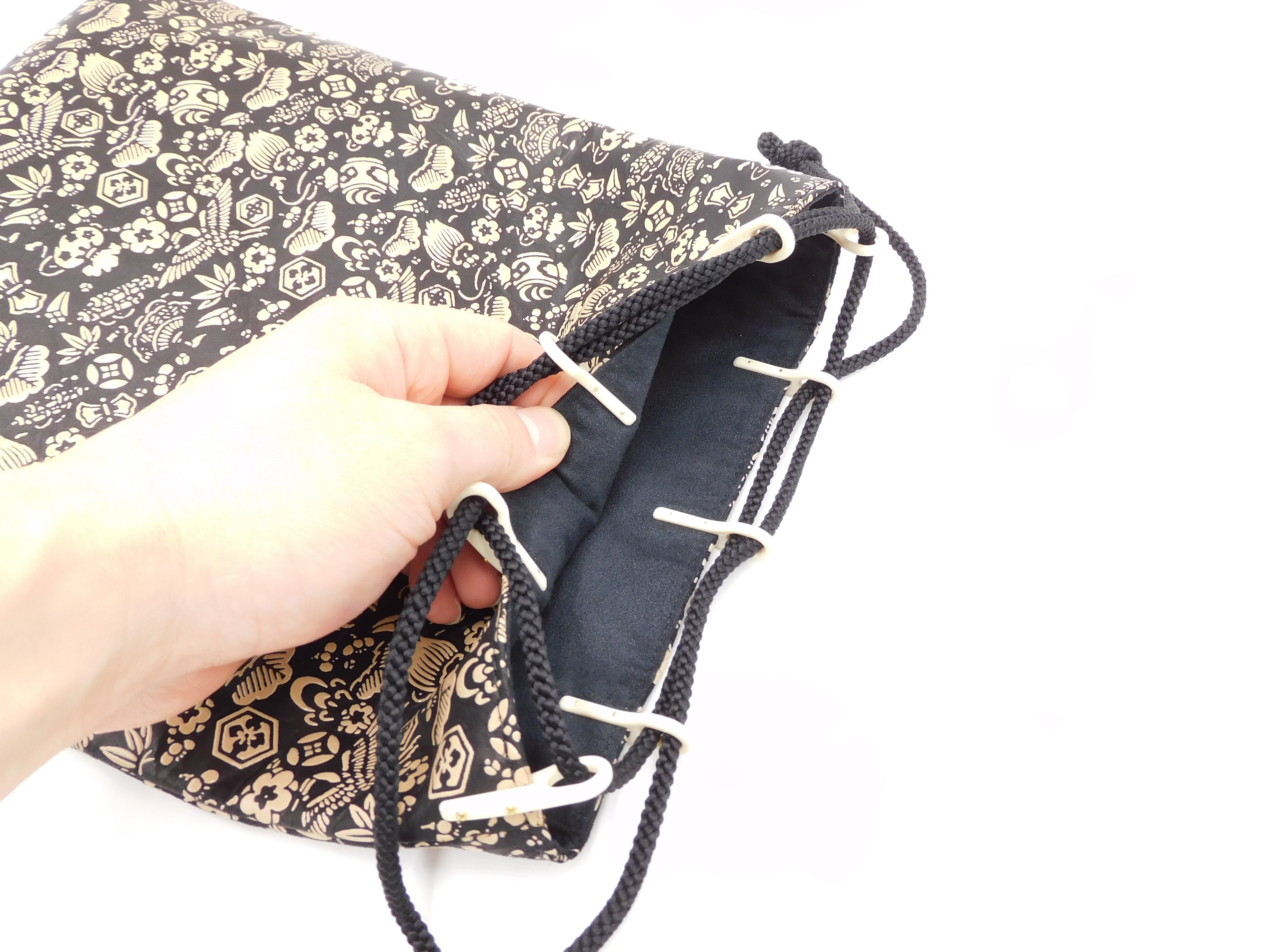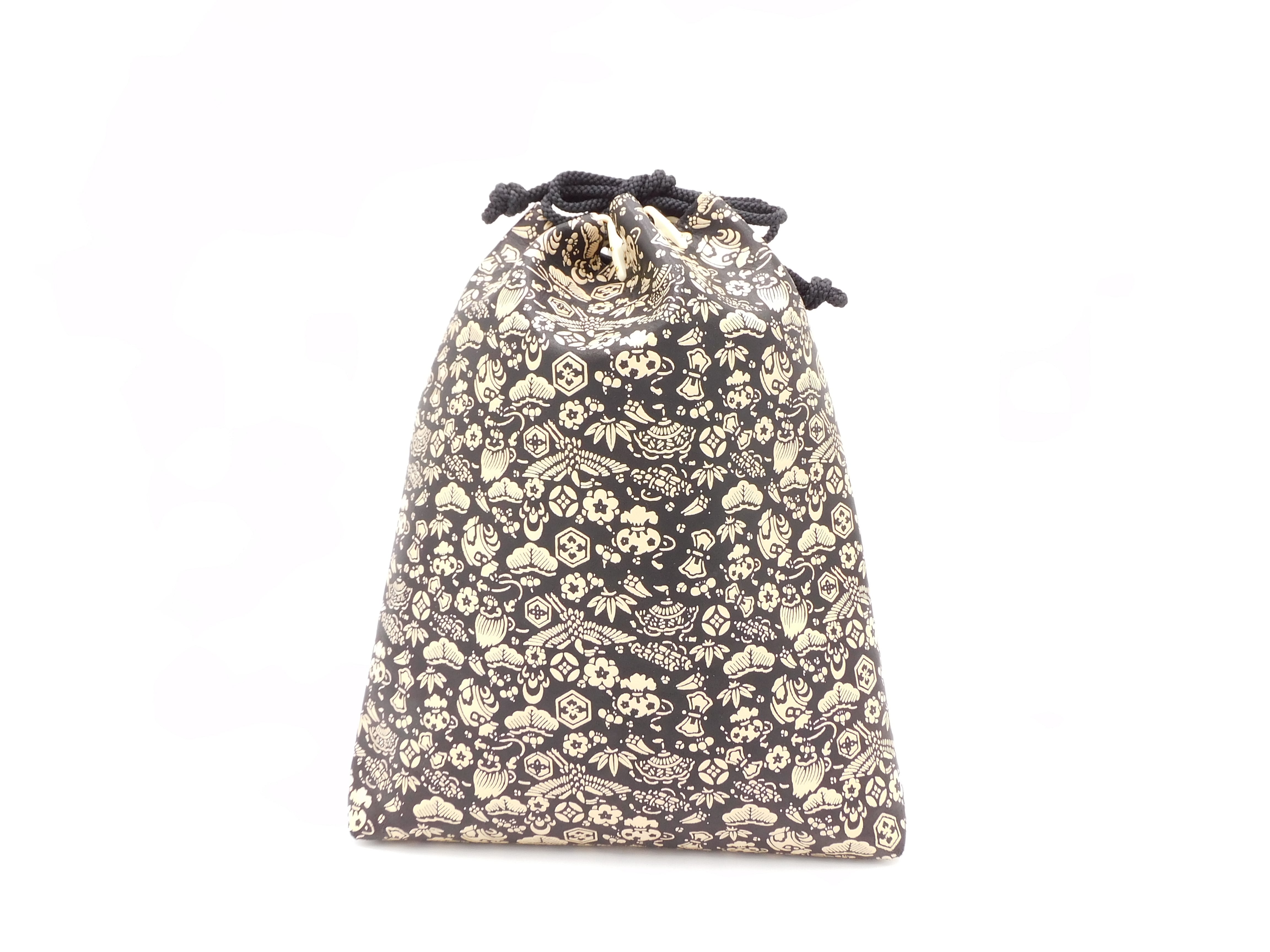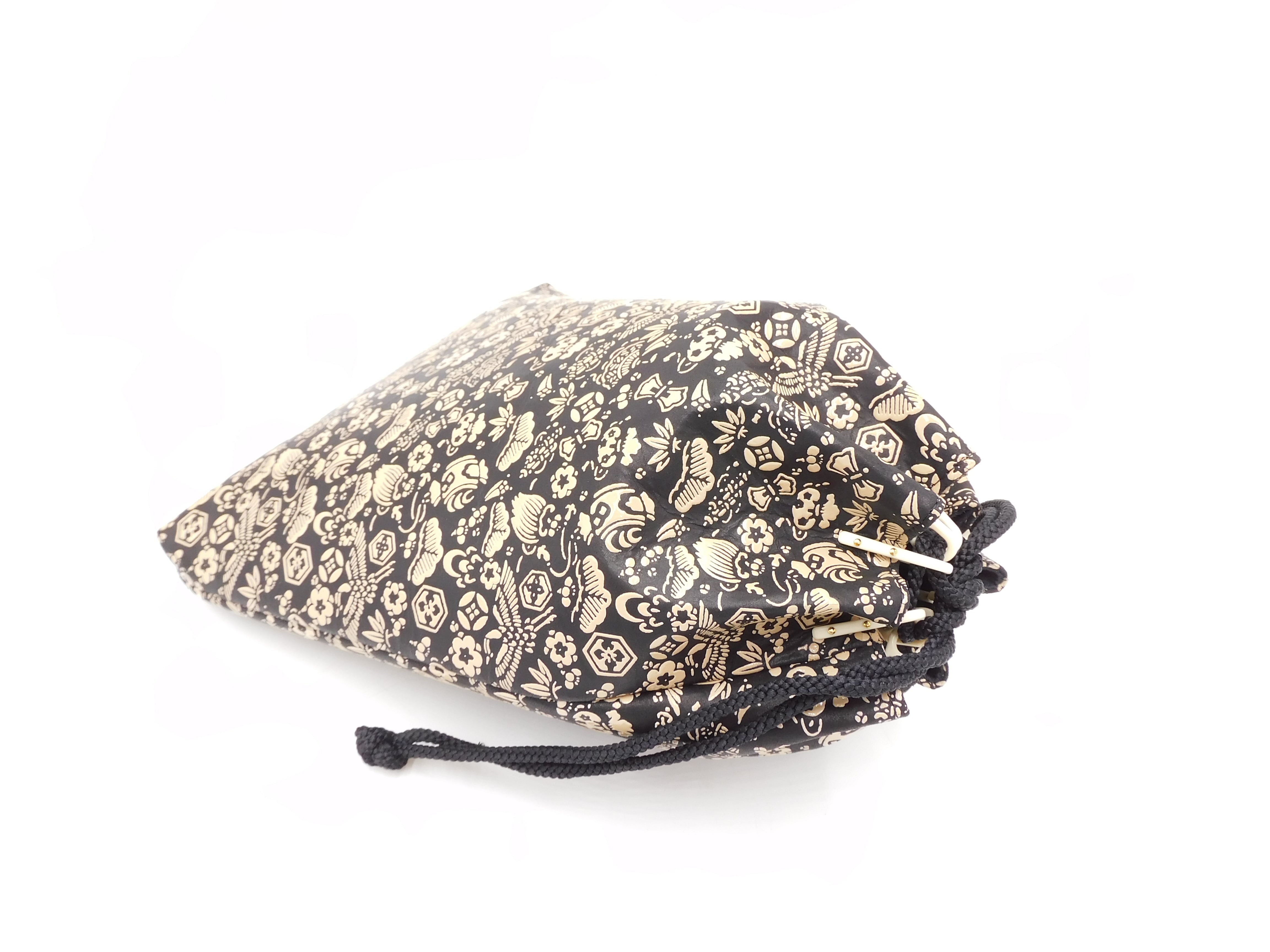 合切袋(大)黒/白 宝尽くし柄