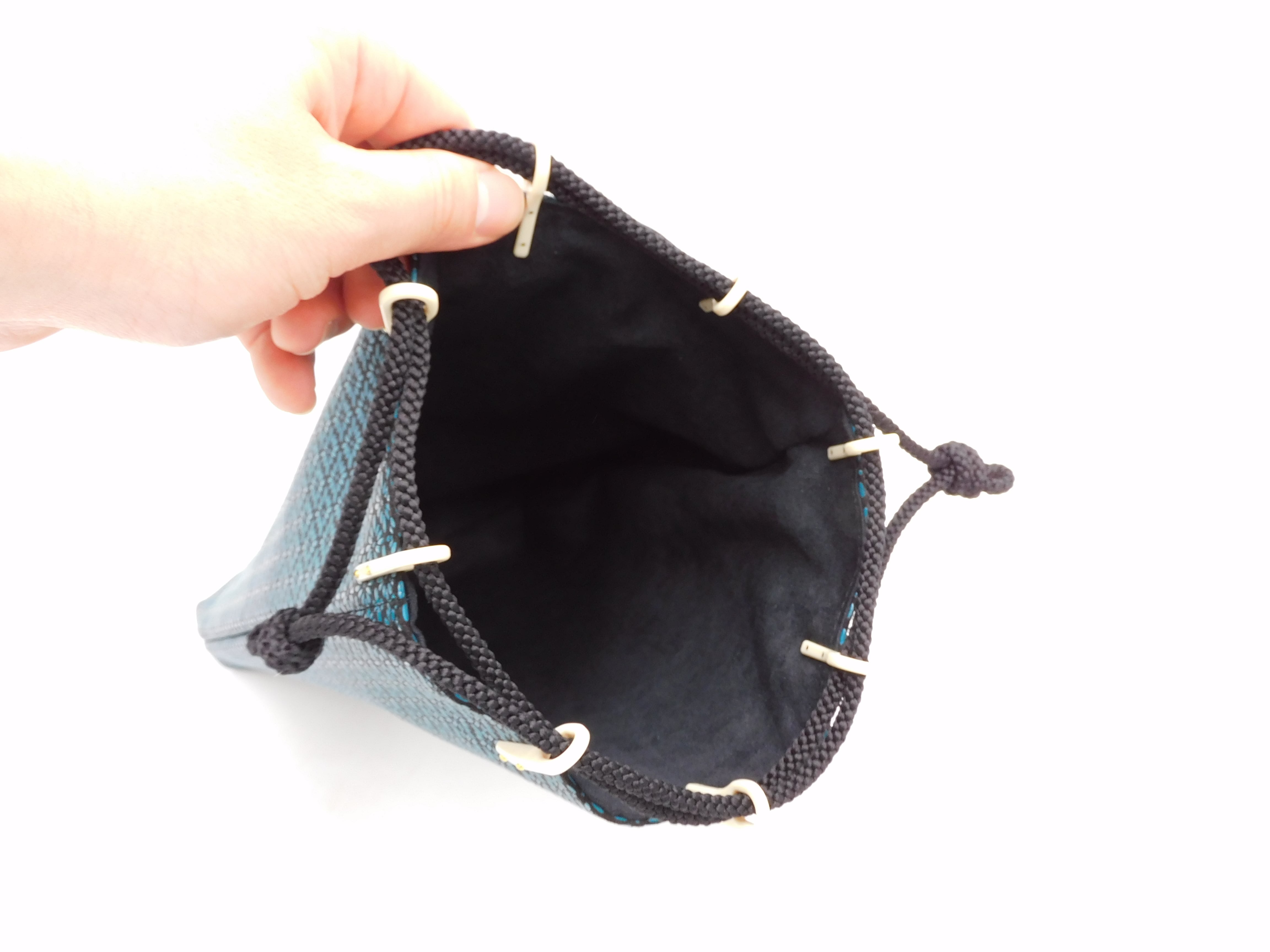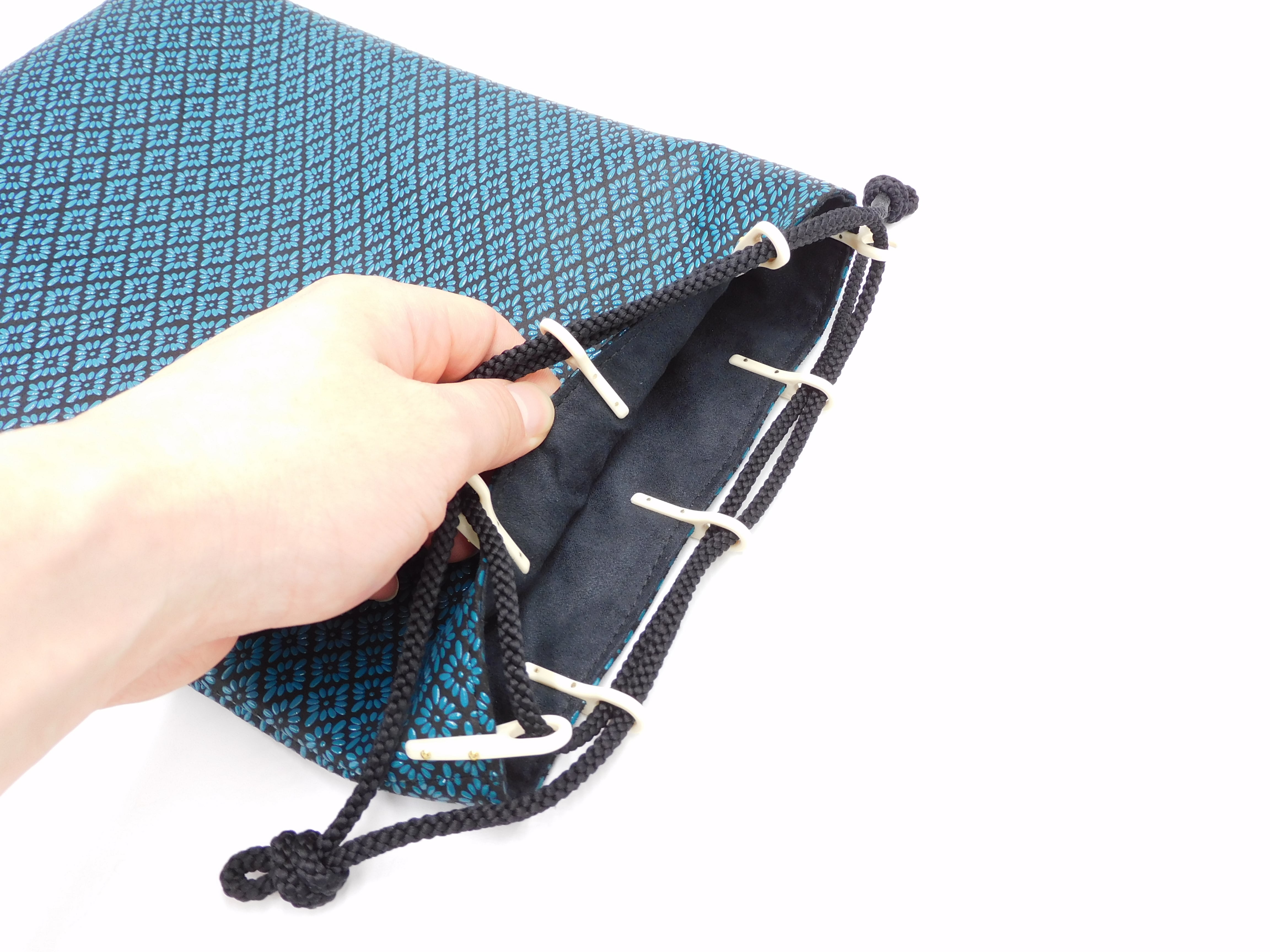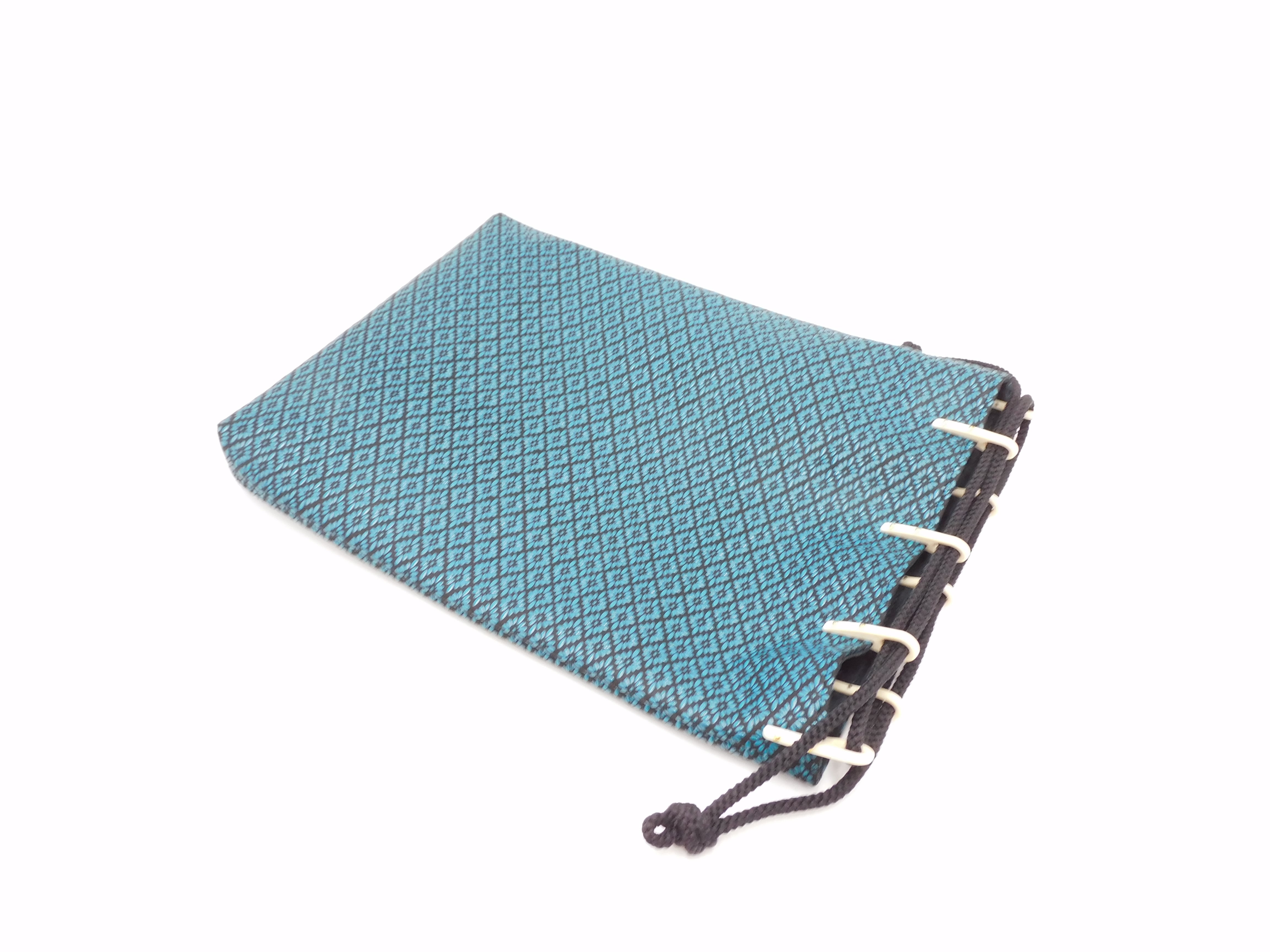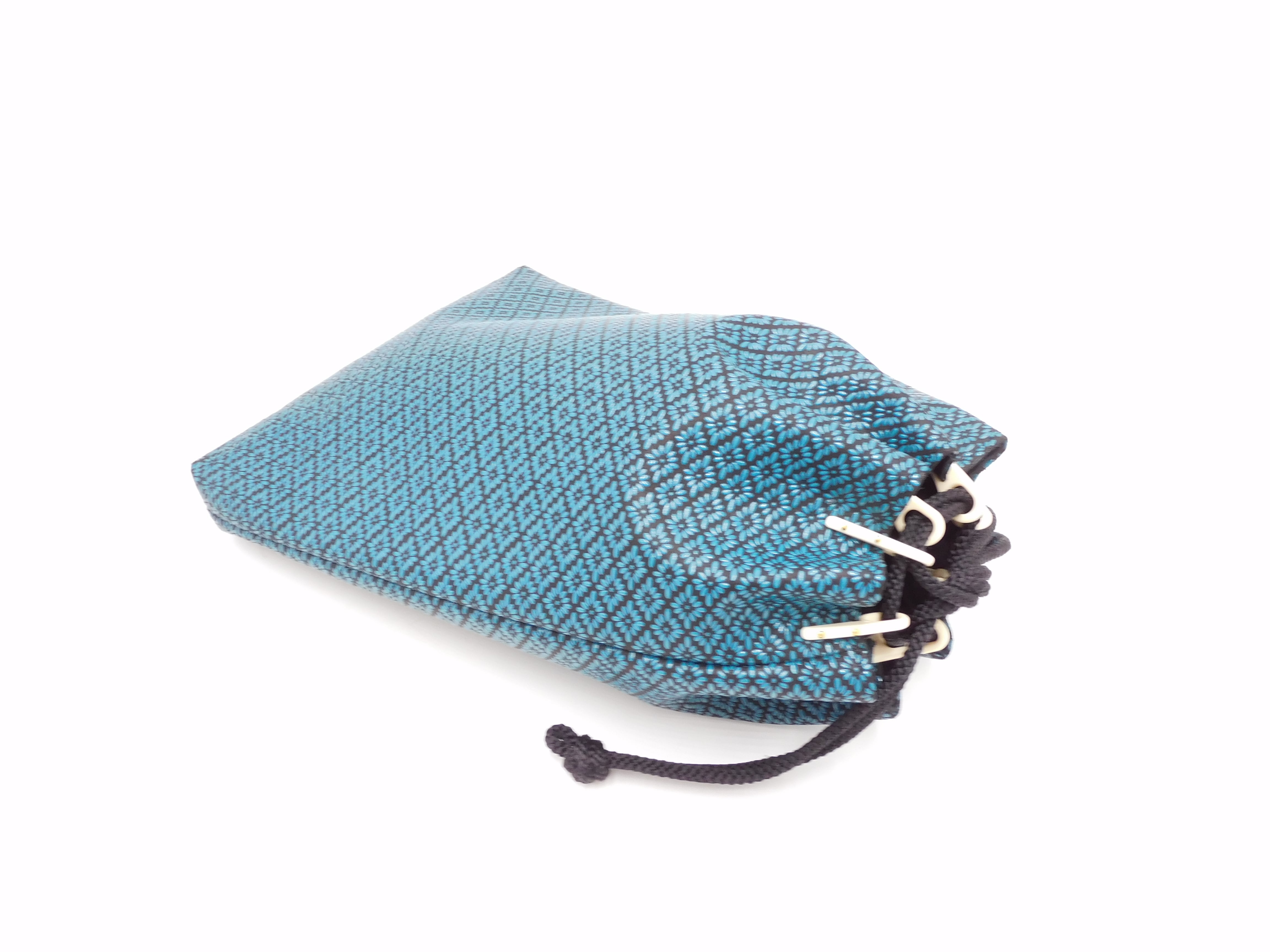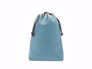 合切袋(中)黒/青 菱菊柄