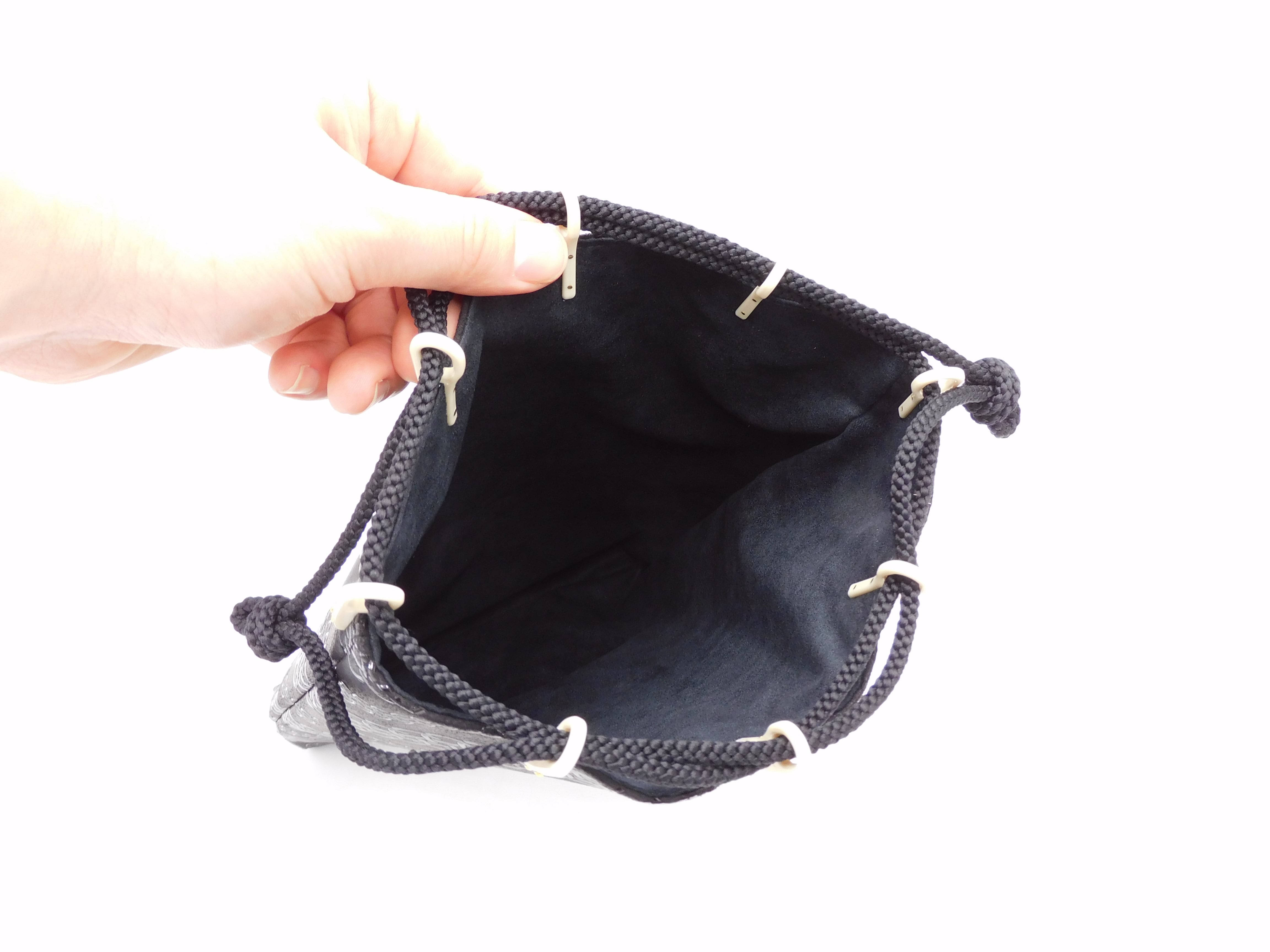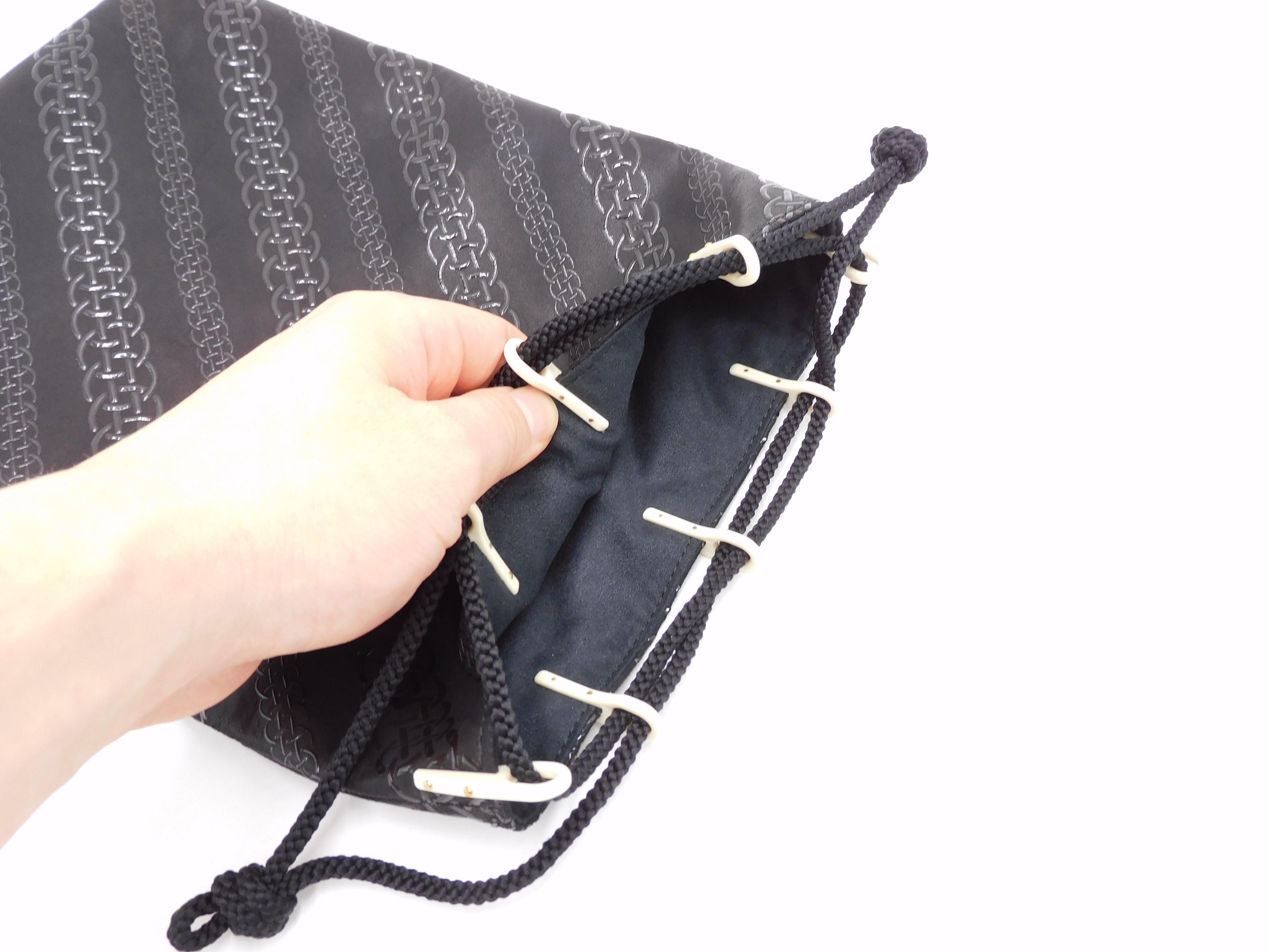 合切袋(中)黒/黒 輪繋ぎ柄