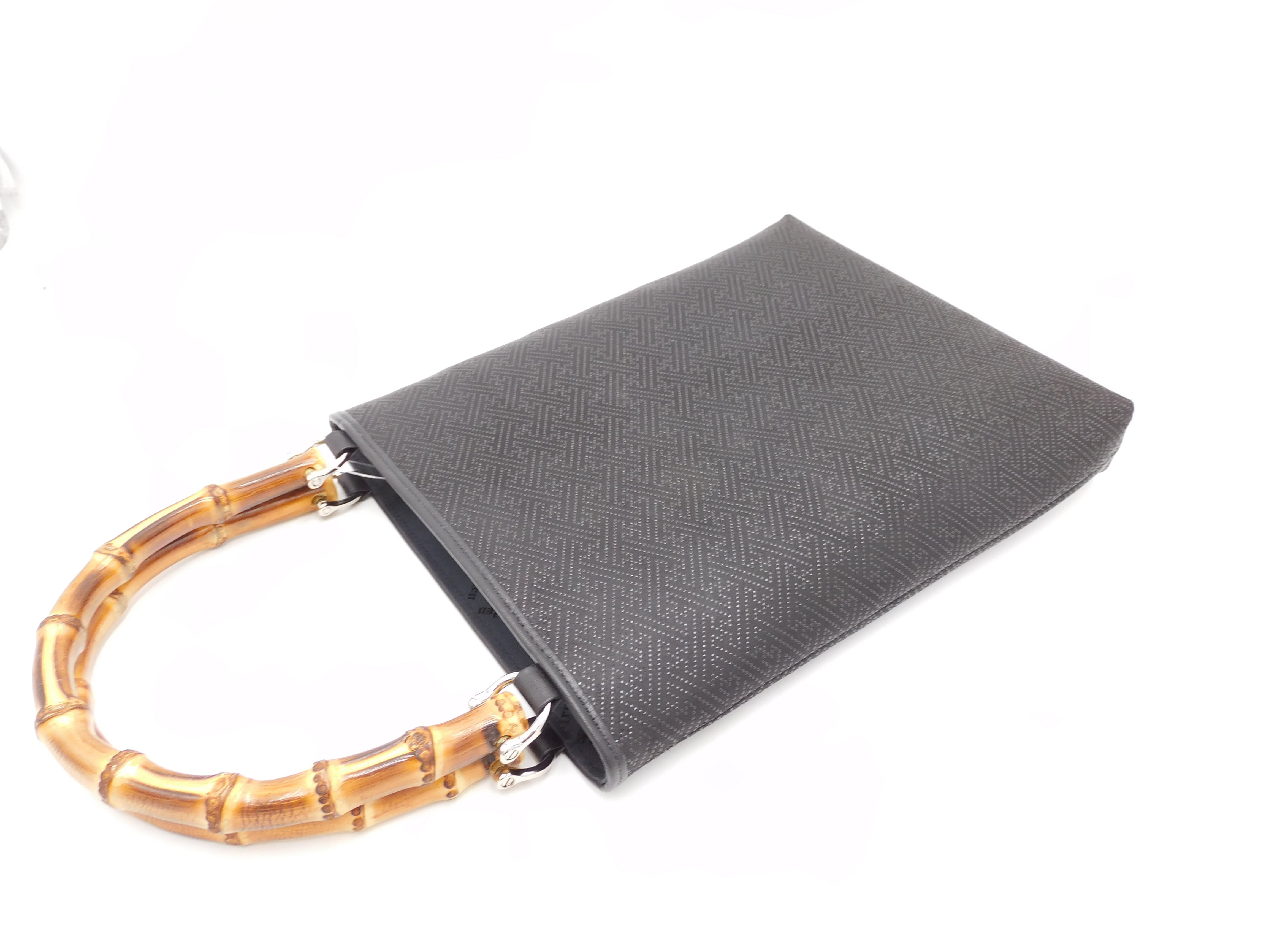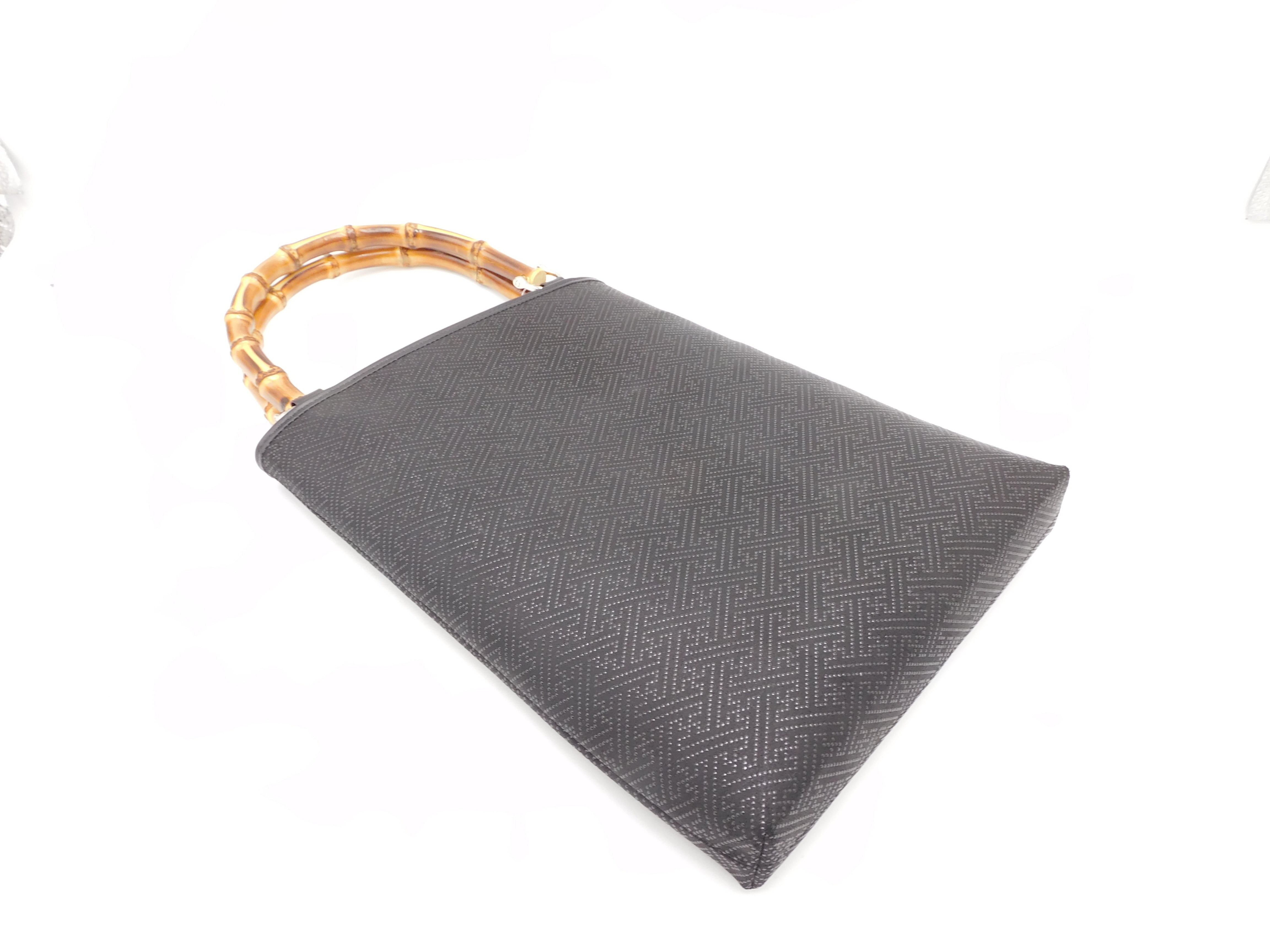 バンブー手提げ(大)黒/黒 紗綾型柄