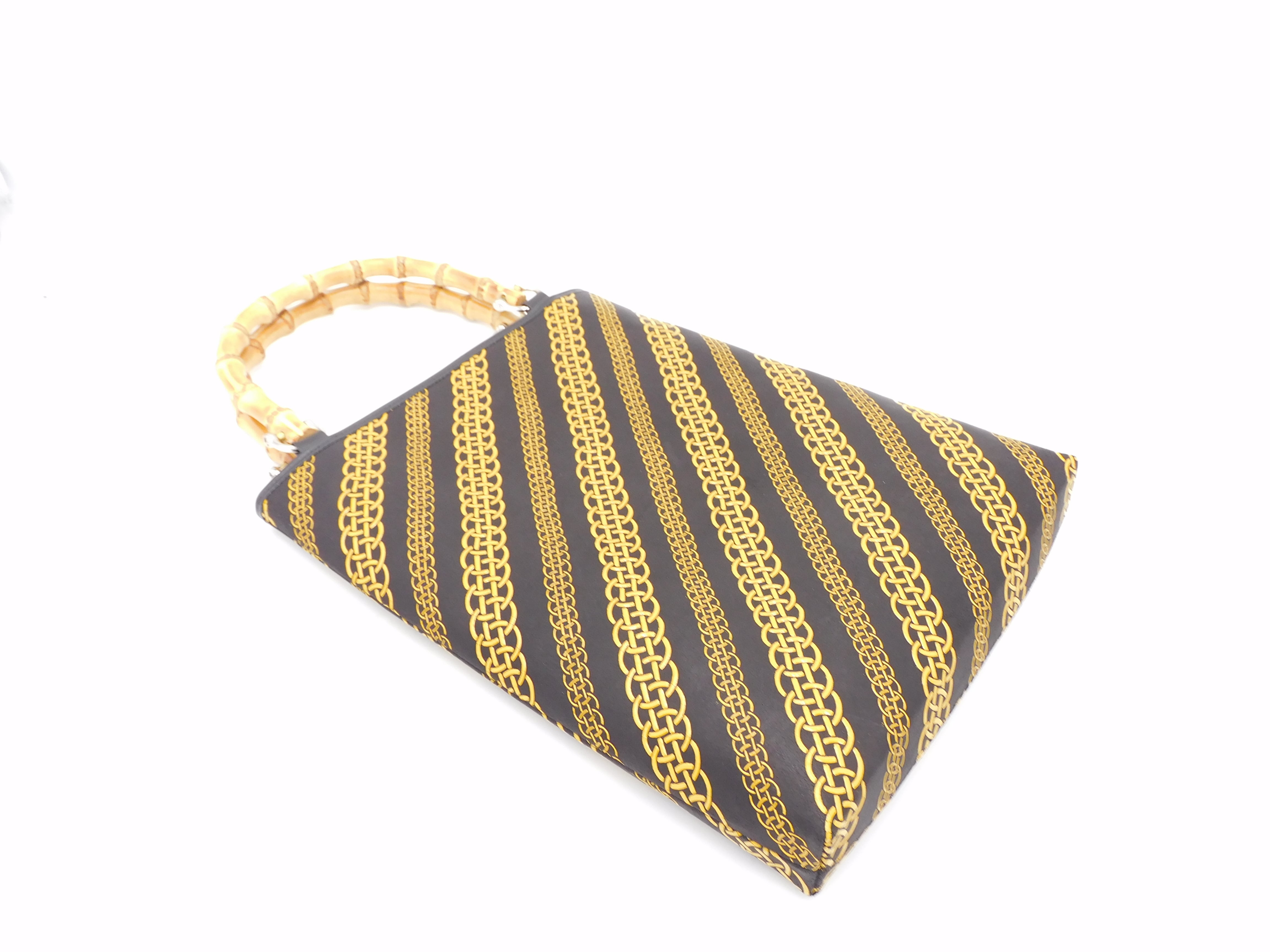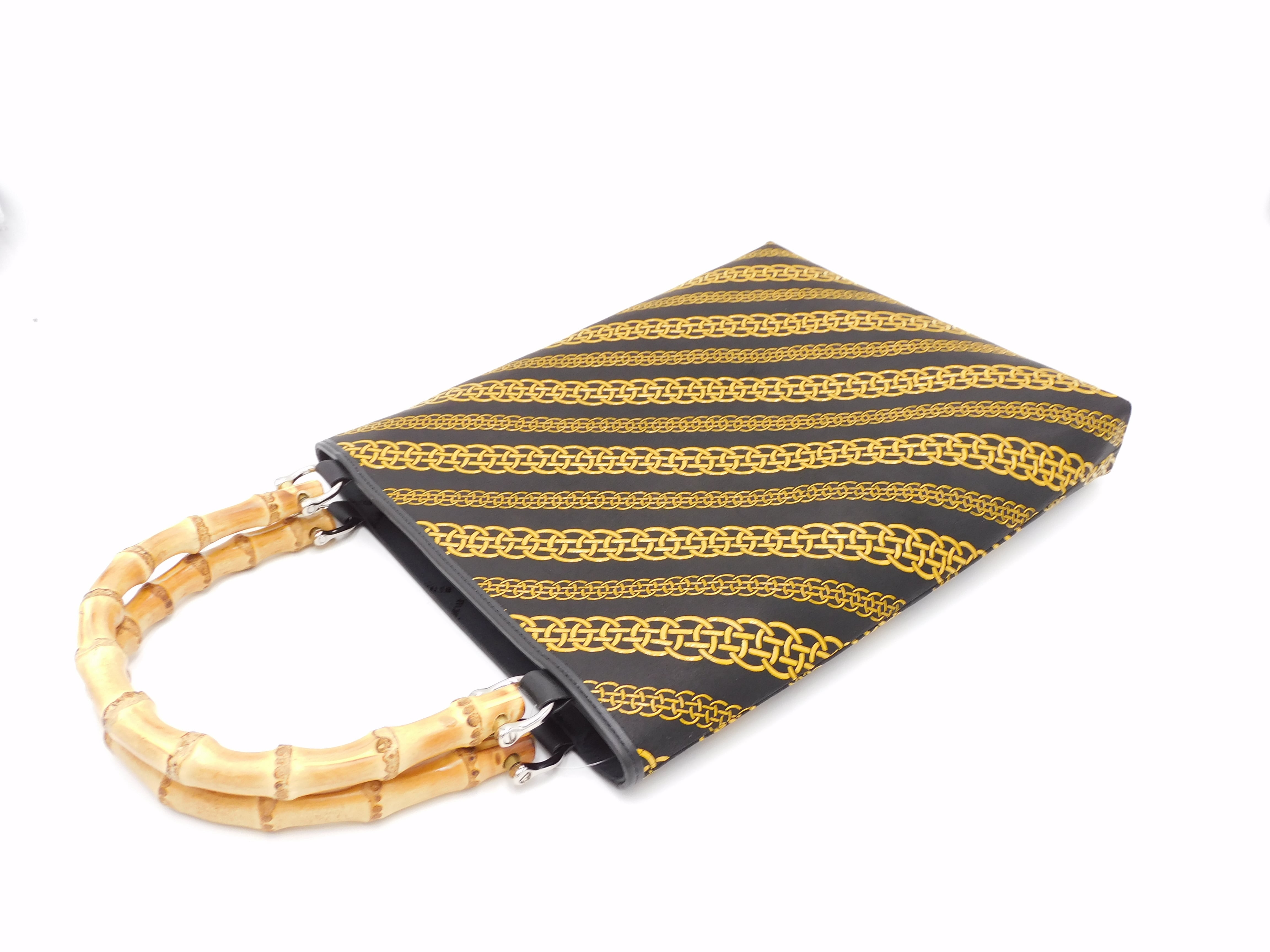 バンブー手提げ(大)黒/黄 輪繋ぎ柄