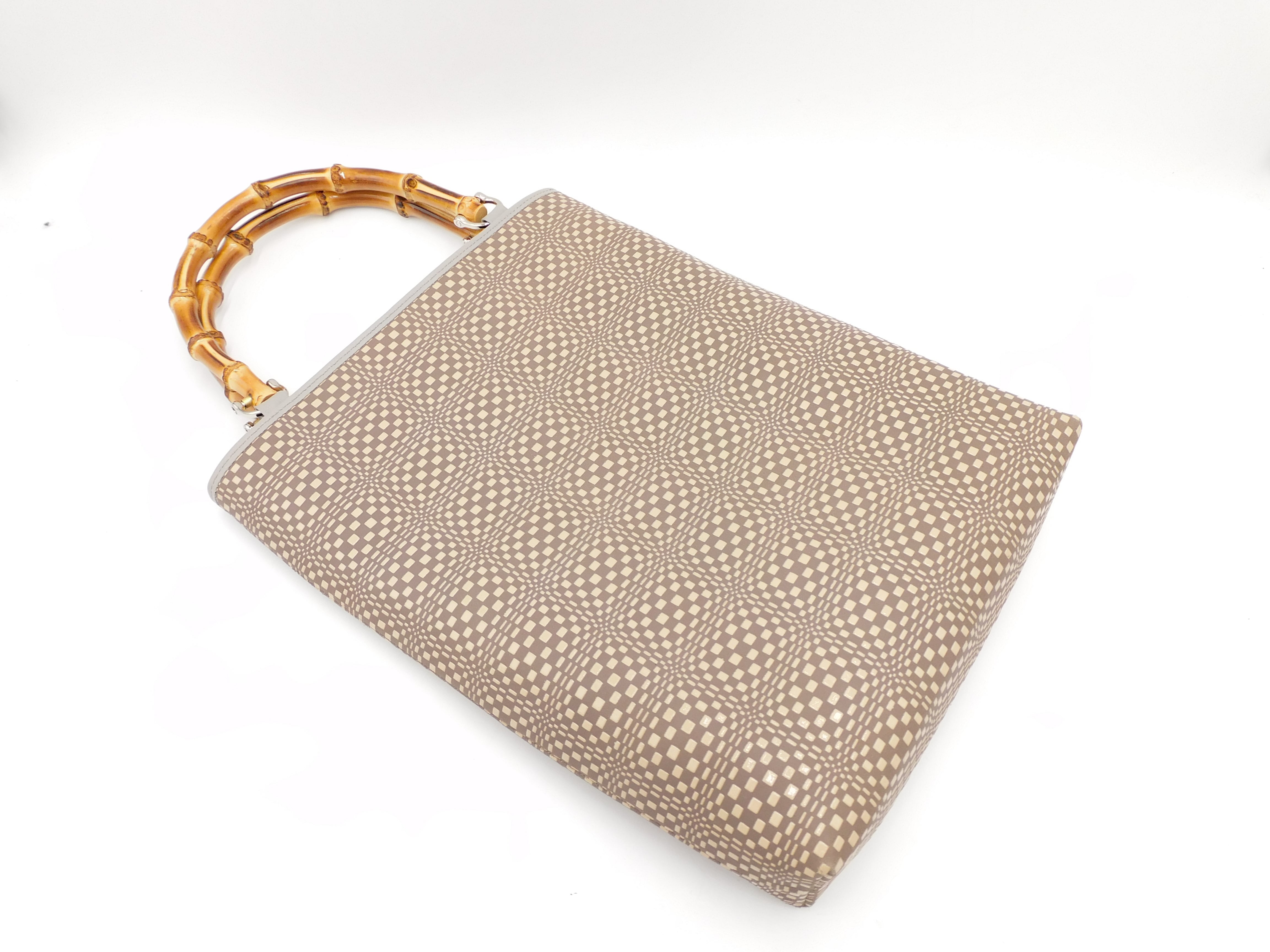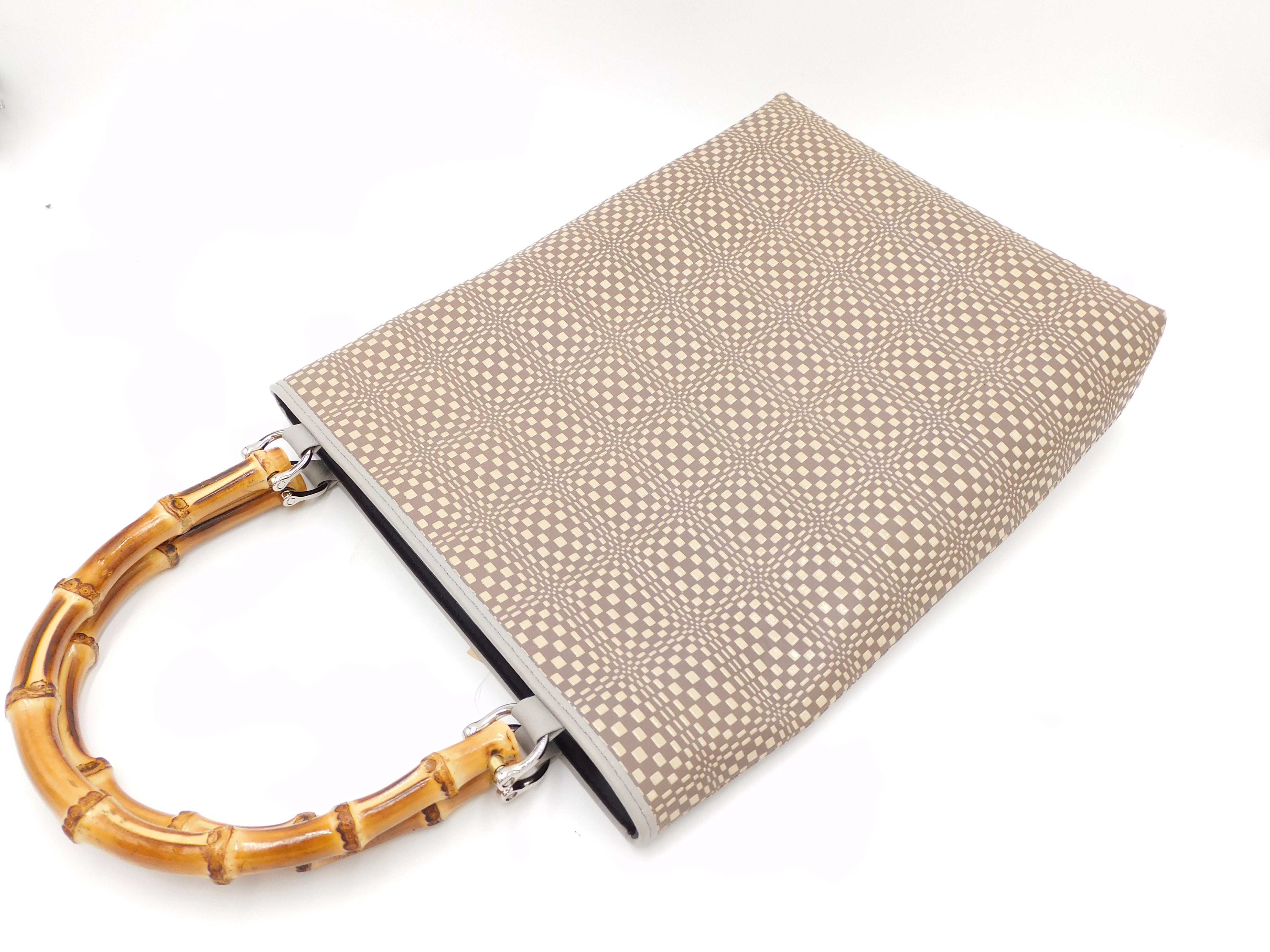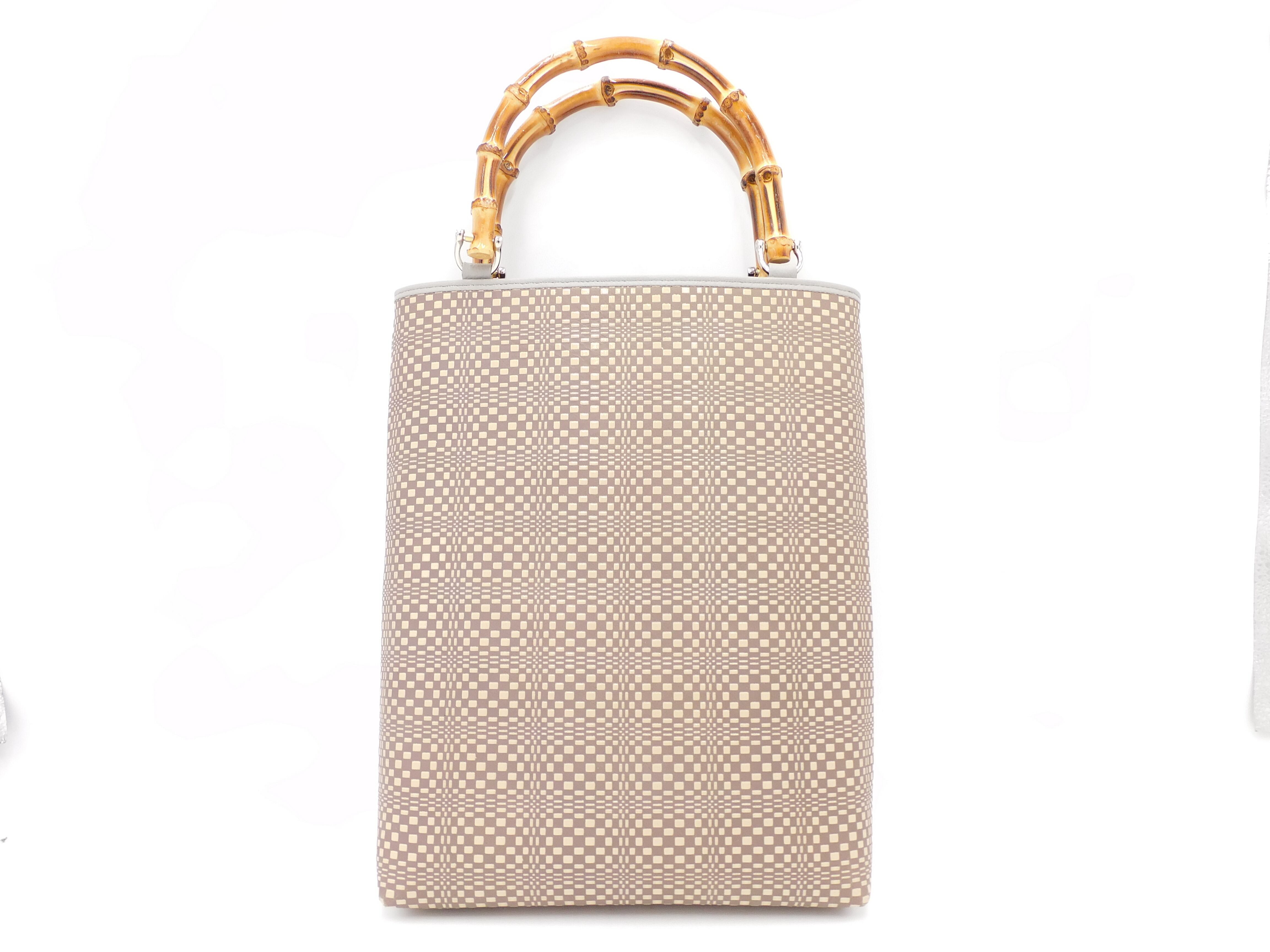 バンブー手提げ(特大)グレー/白 変わり市松柄
