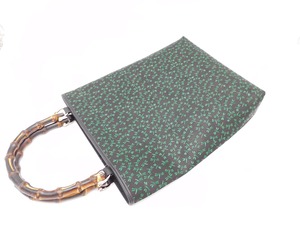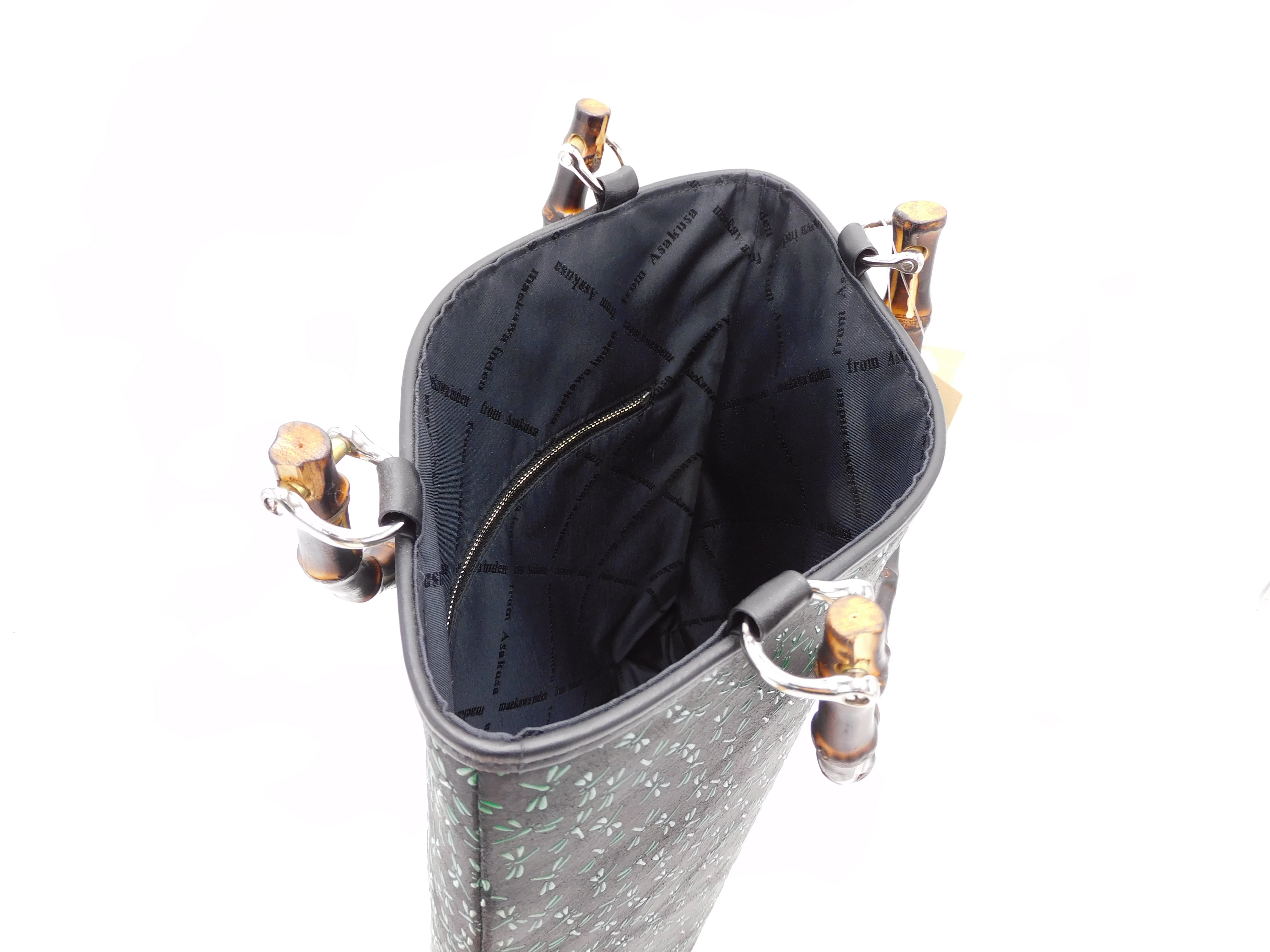 バンブー手提げ(特大)黒/緑 トンボ柄