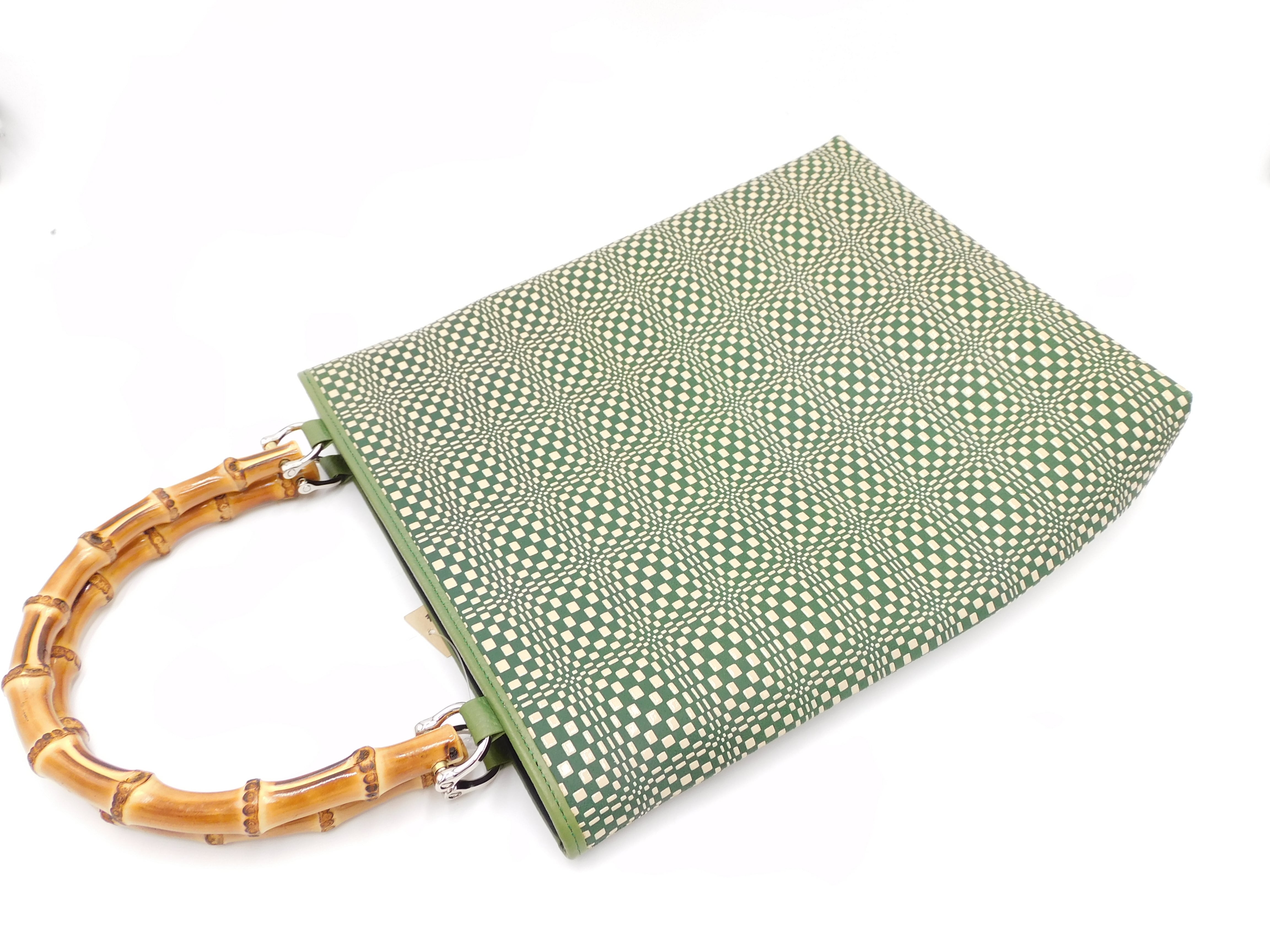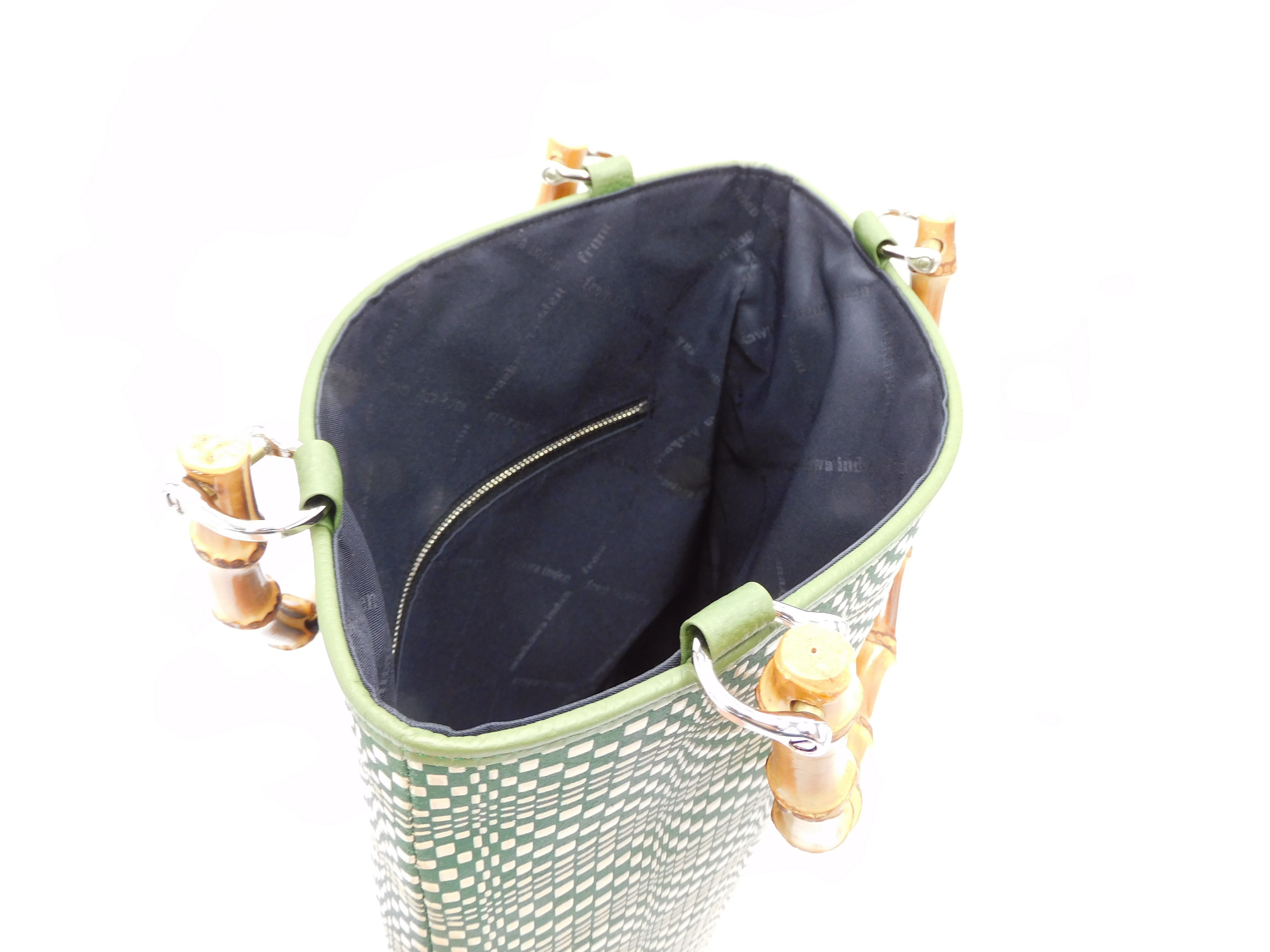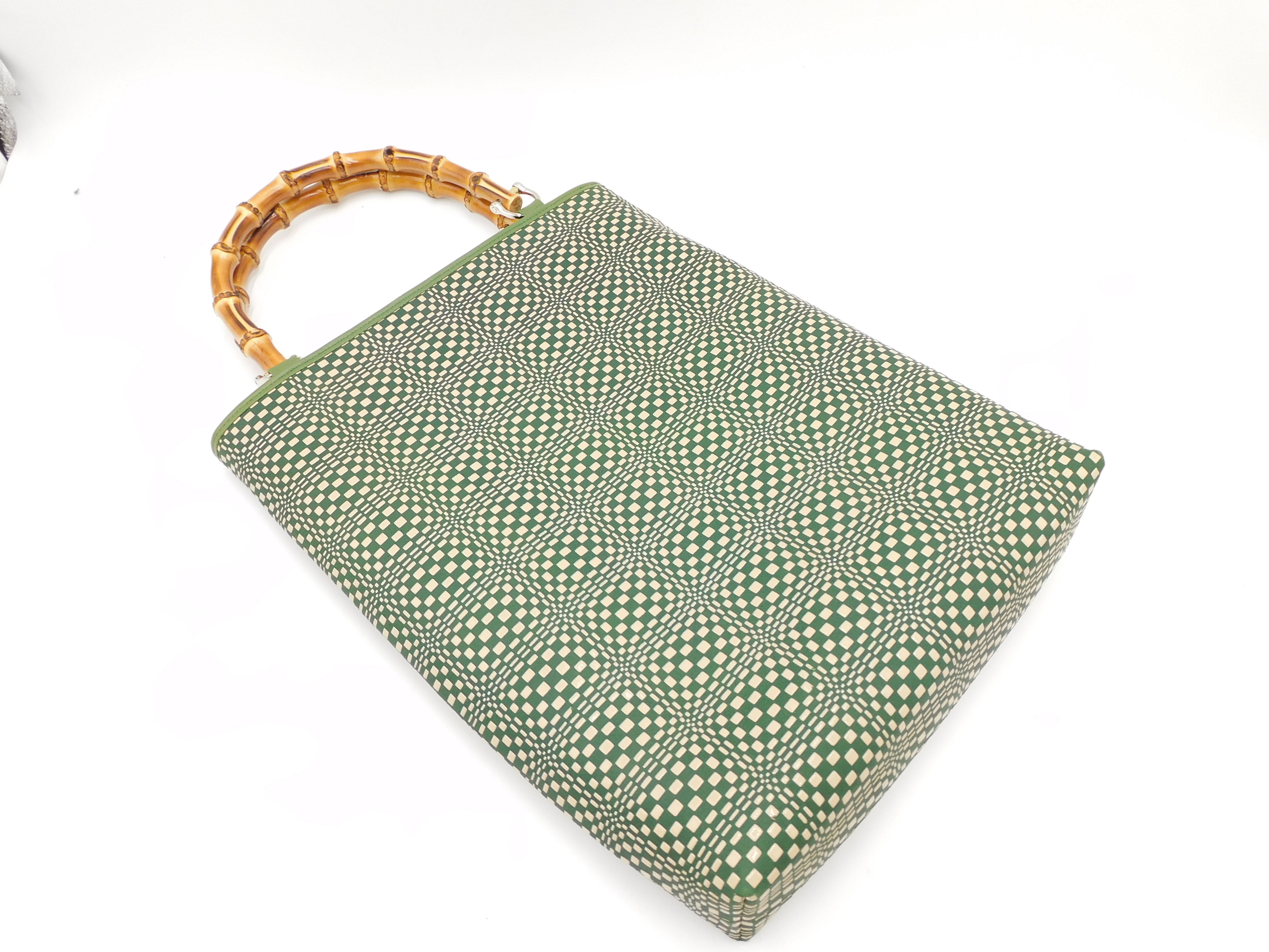 バンブー手提げ(特大)緑/白 変わり市松柄