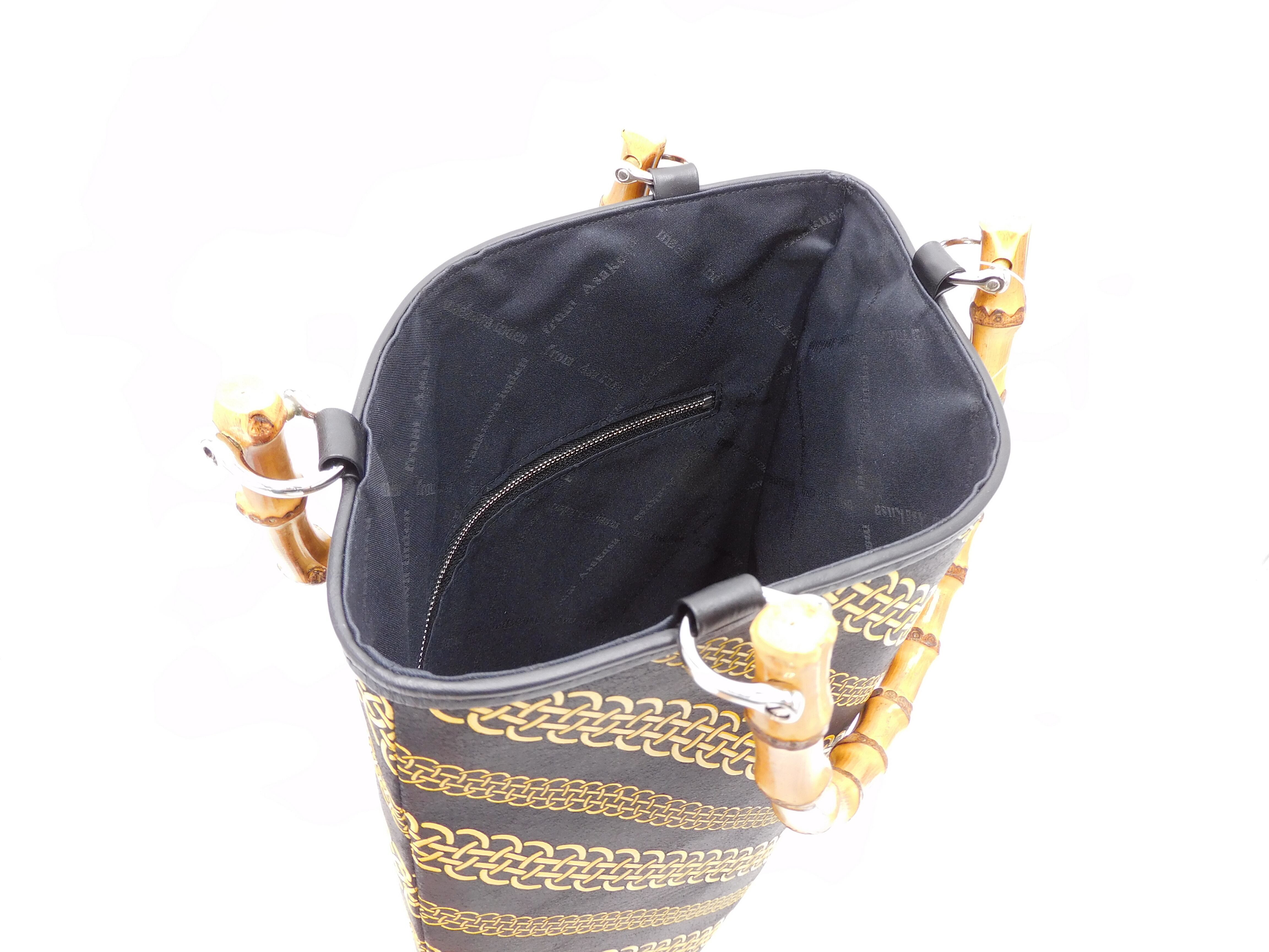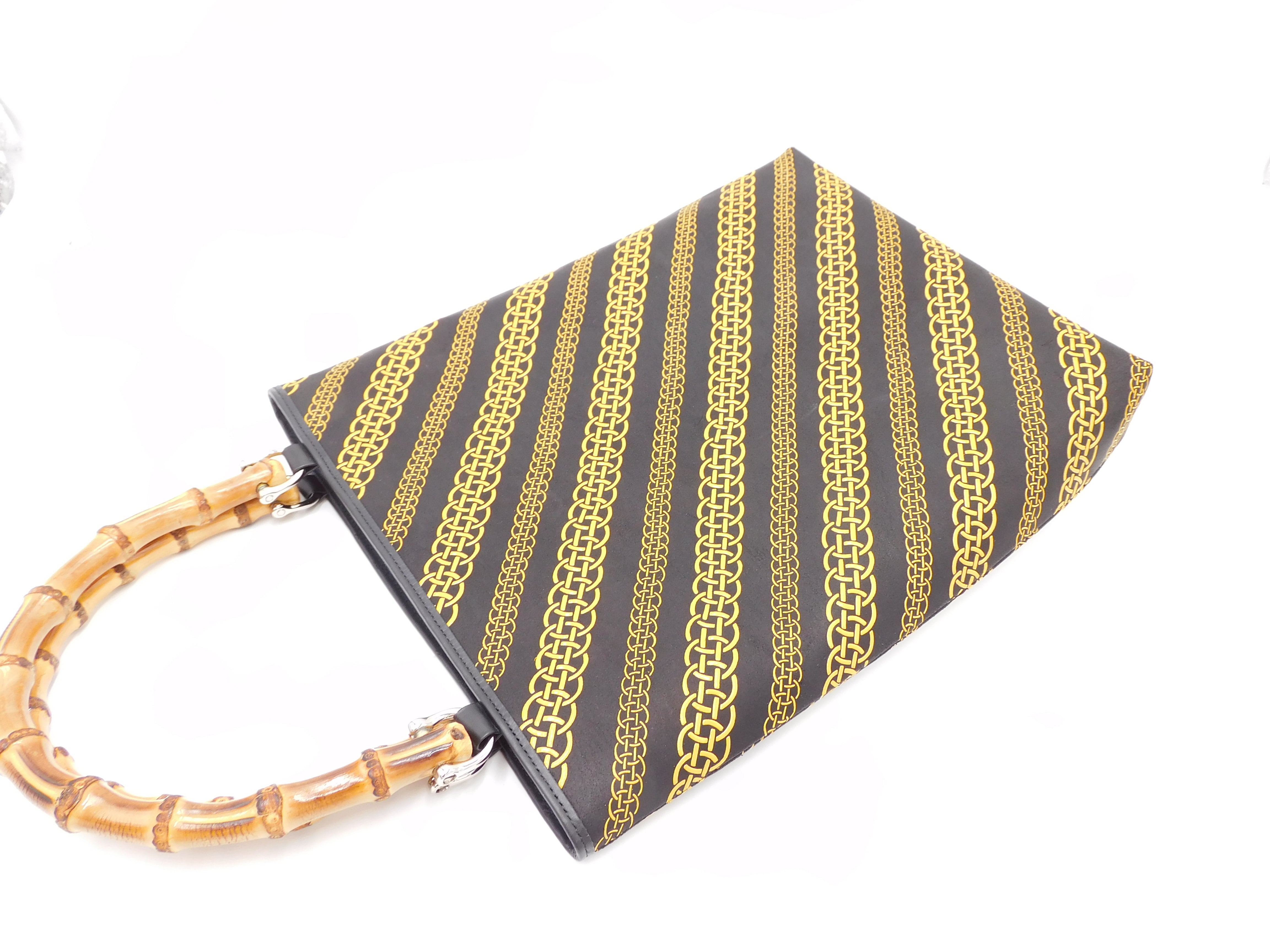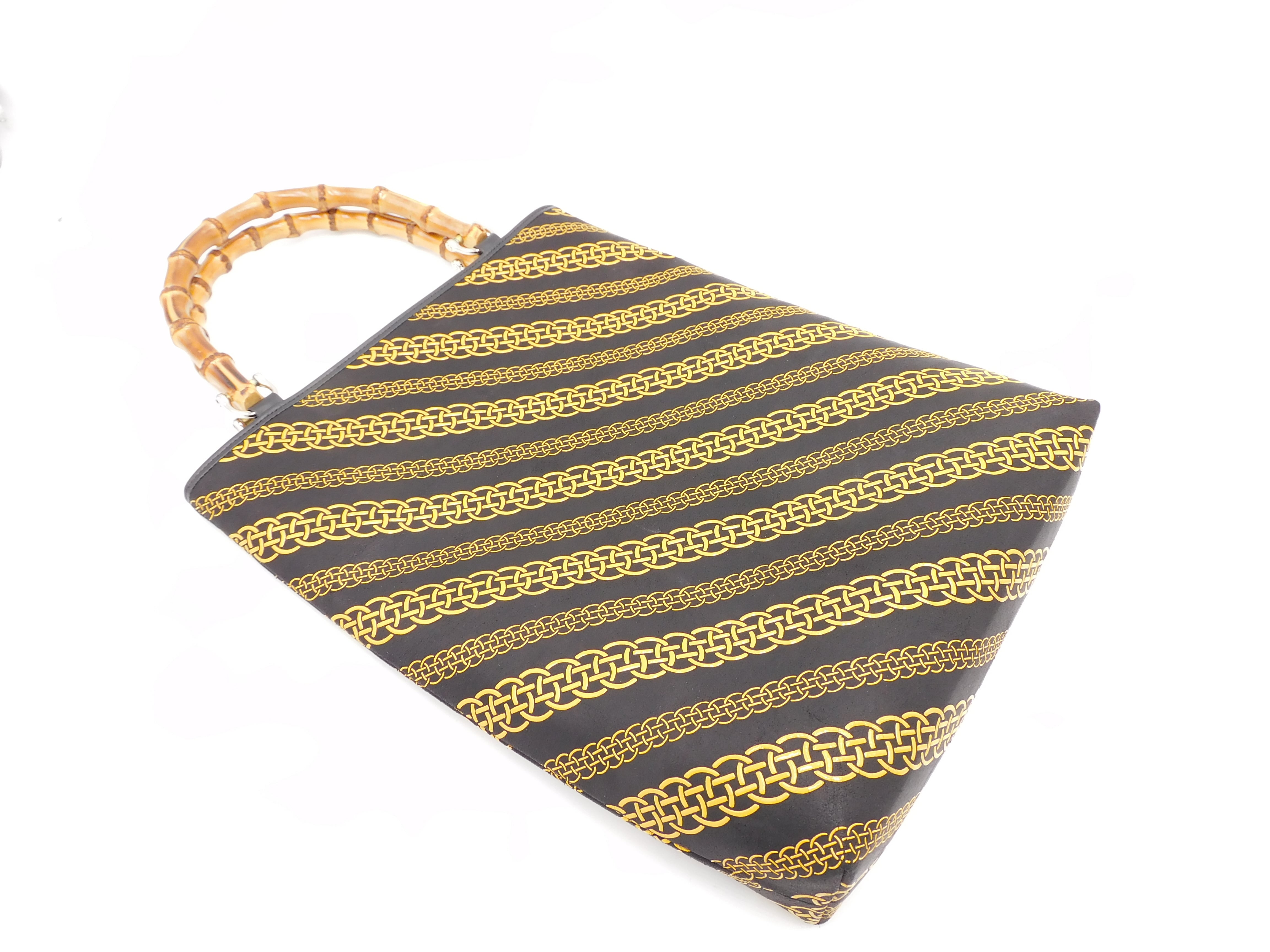 バンブー手提げ 黒/黄 輪繋ぎ柄