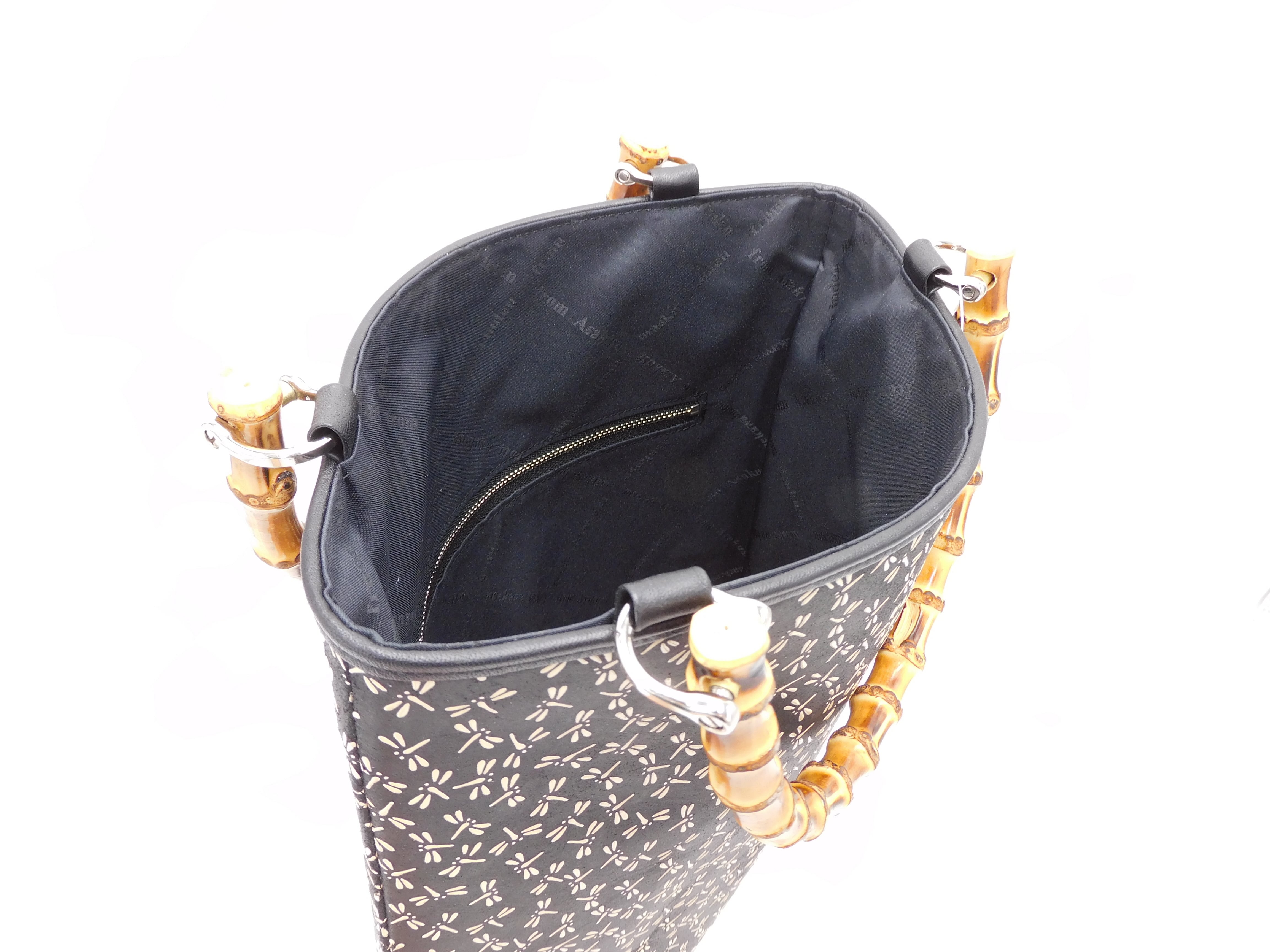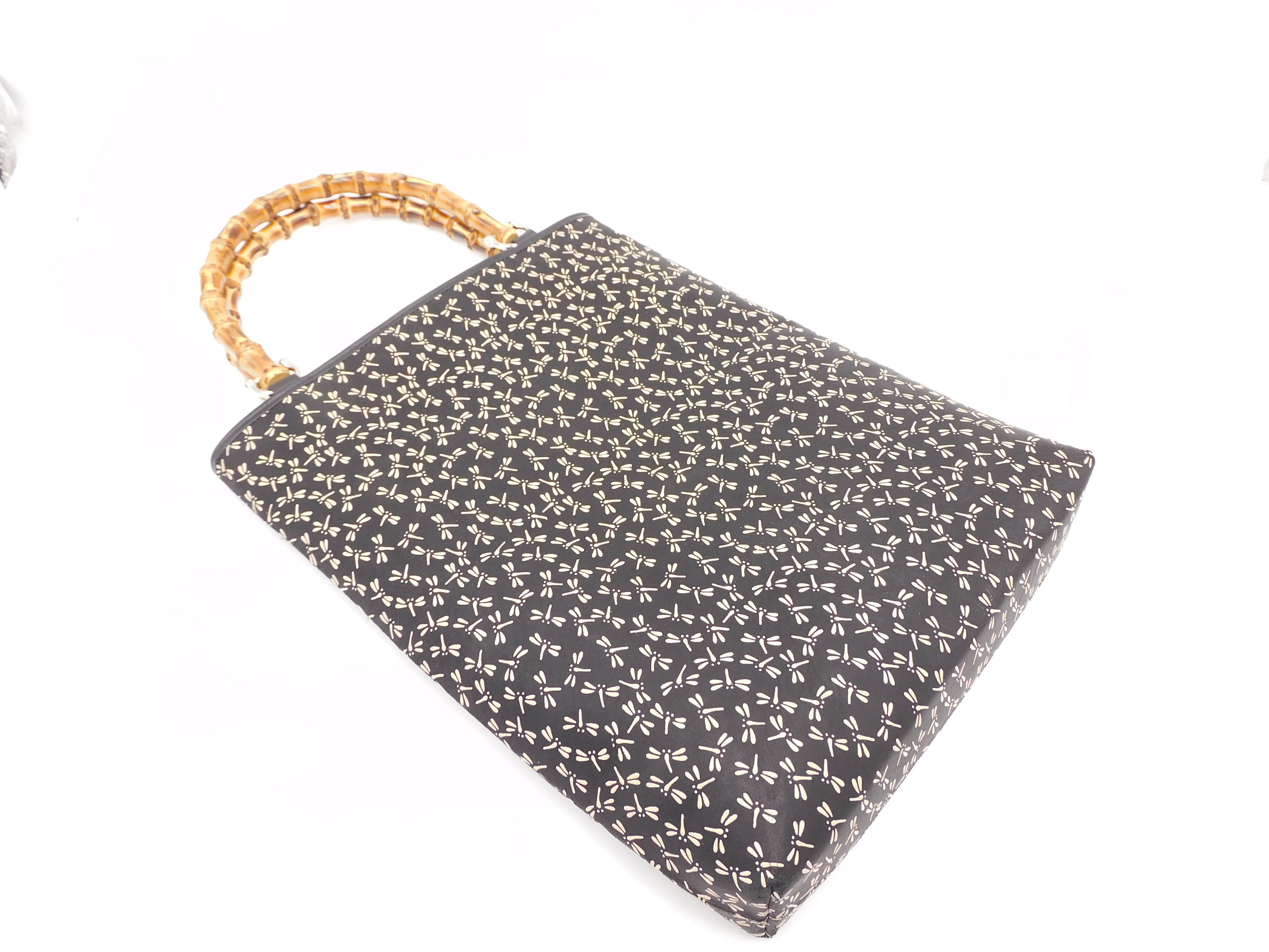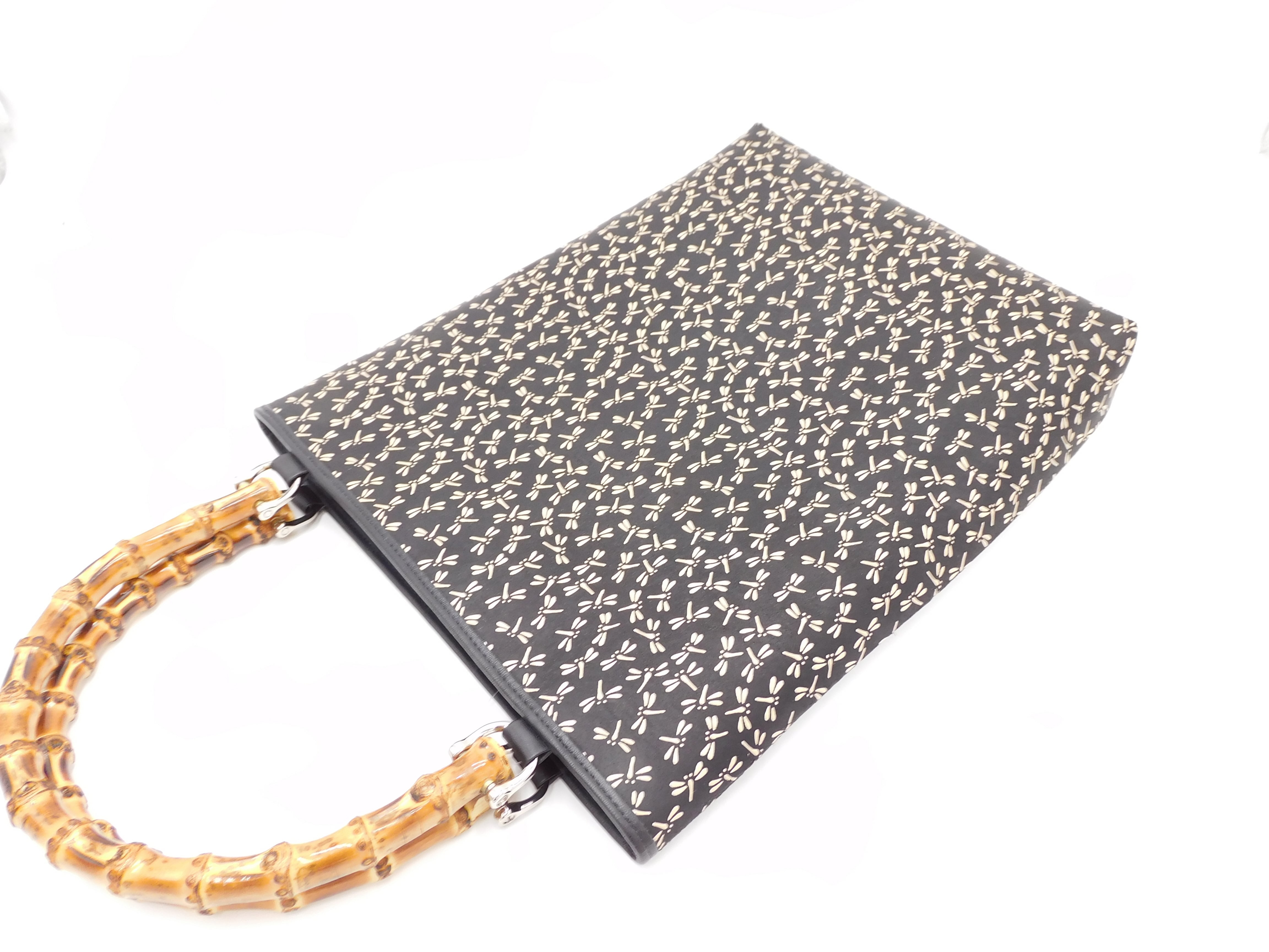 バンブー手提げ 黒/白 トンボ柄