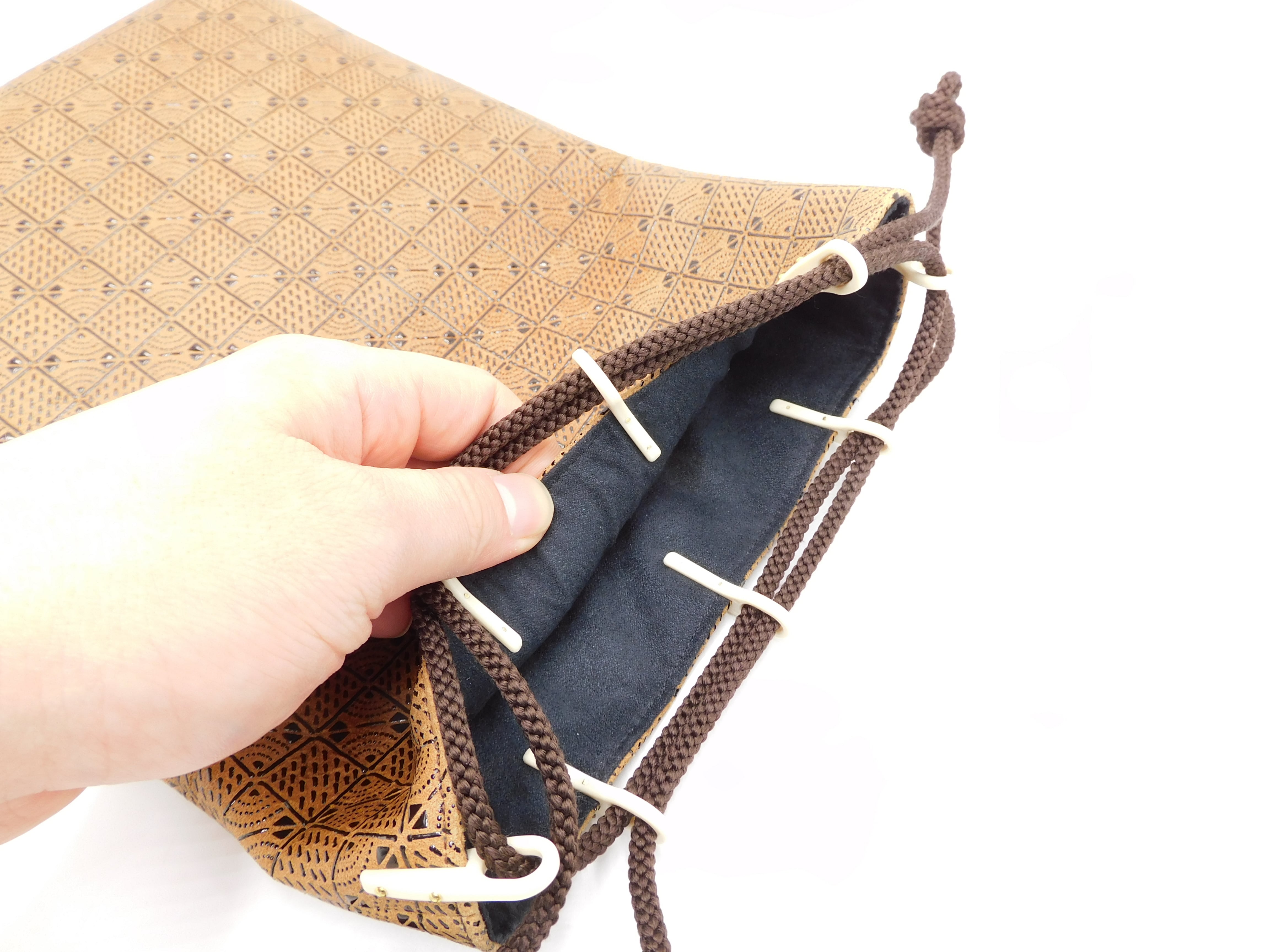 日常の相棒として、時とともに味わいを深めていく合切袋。