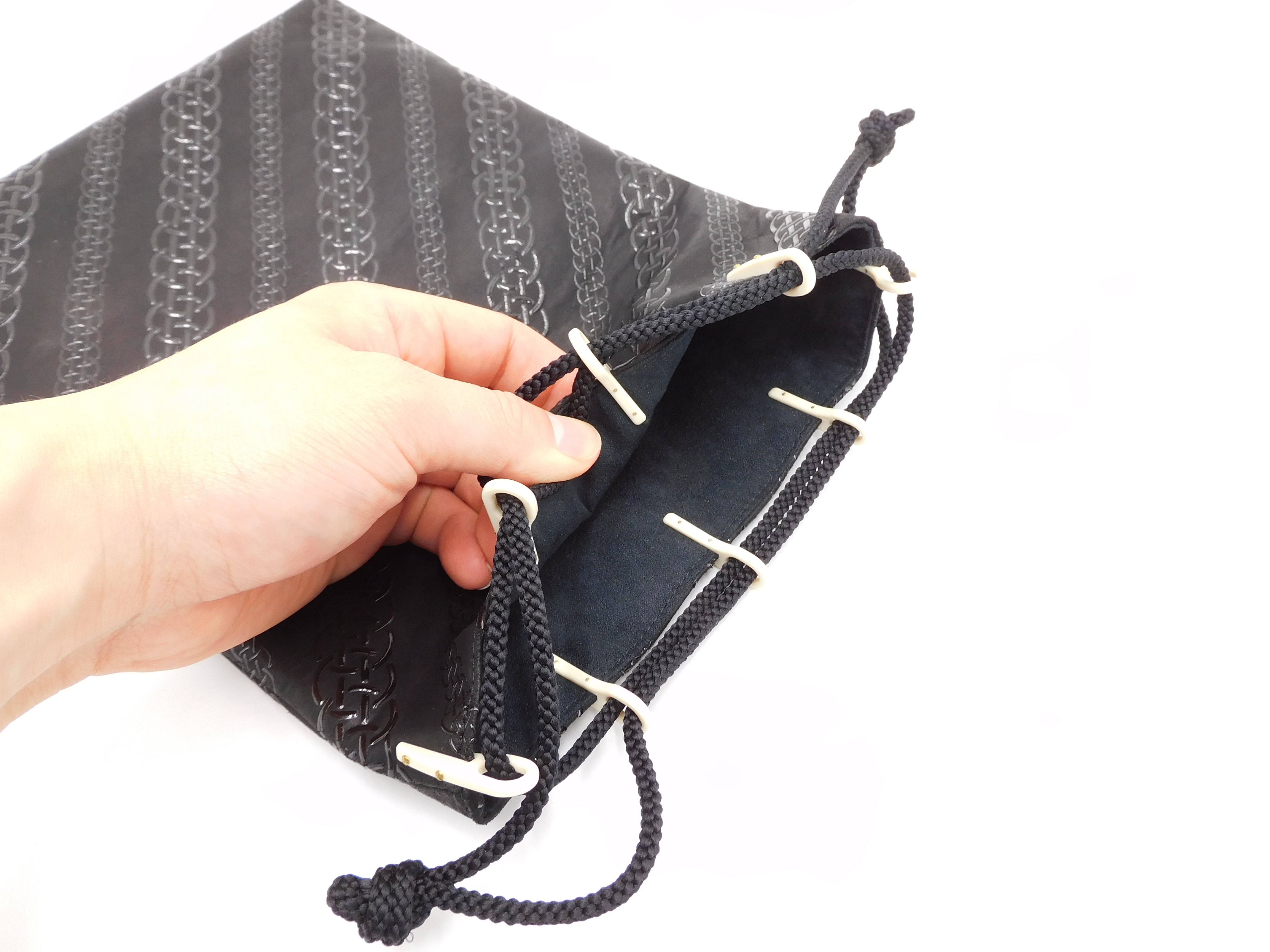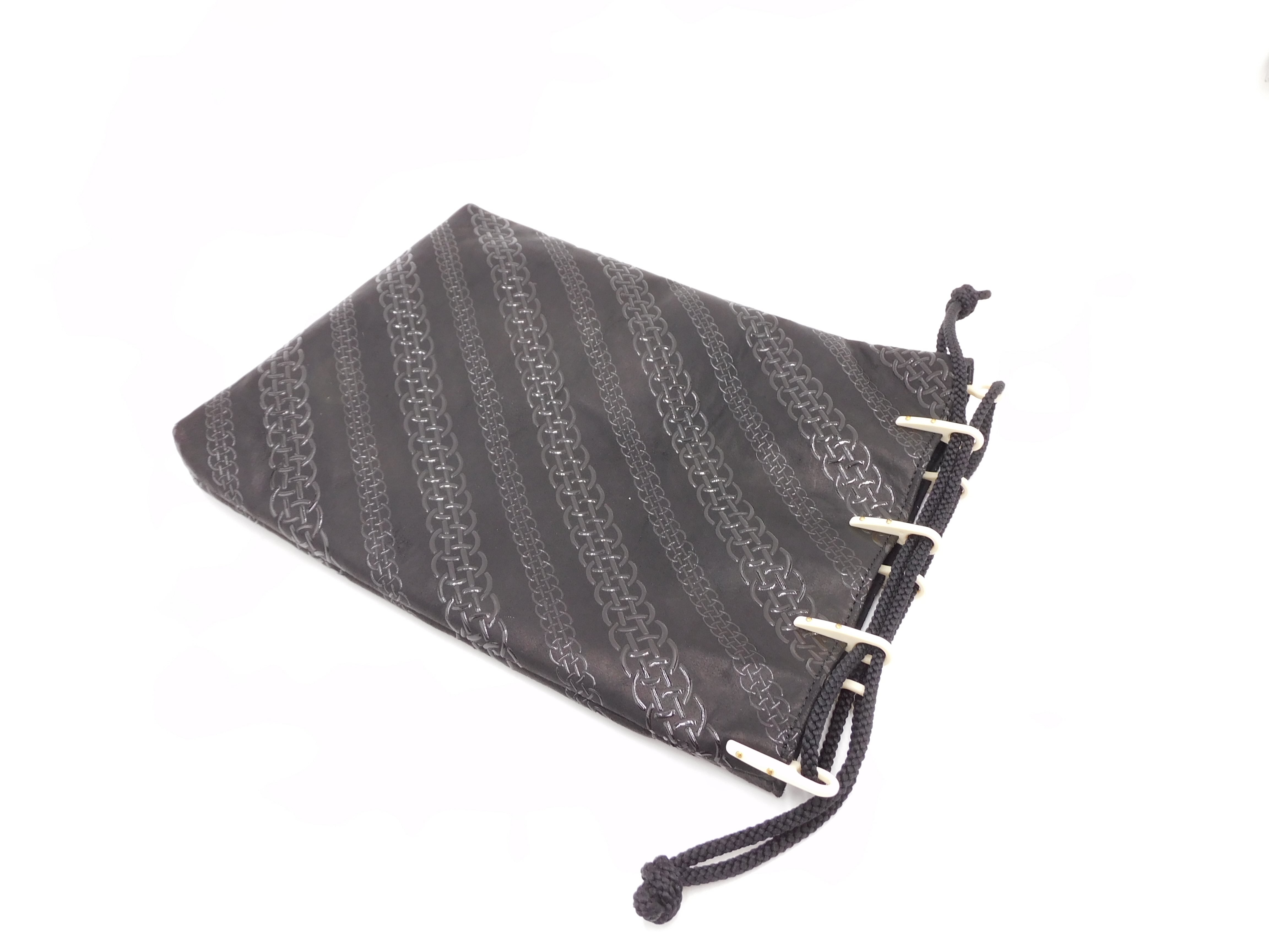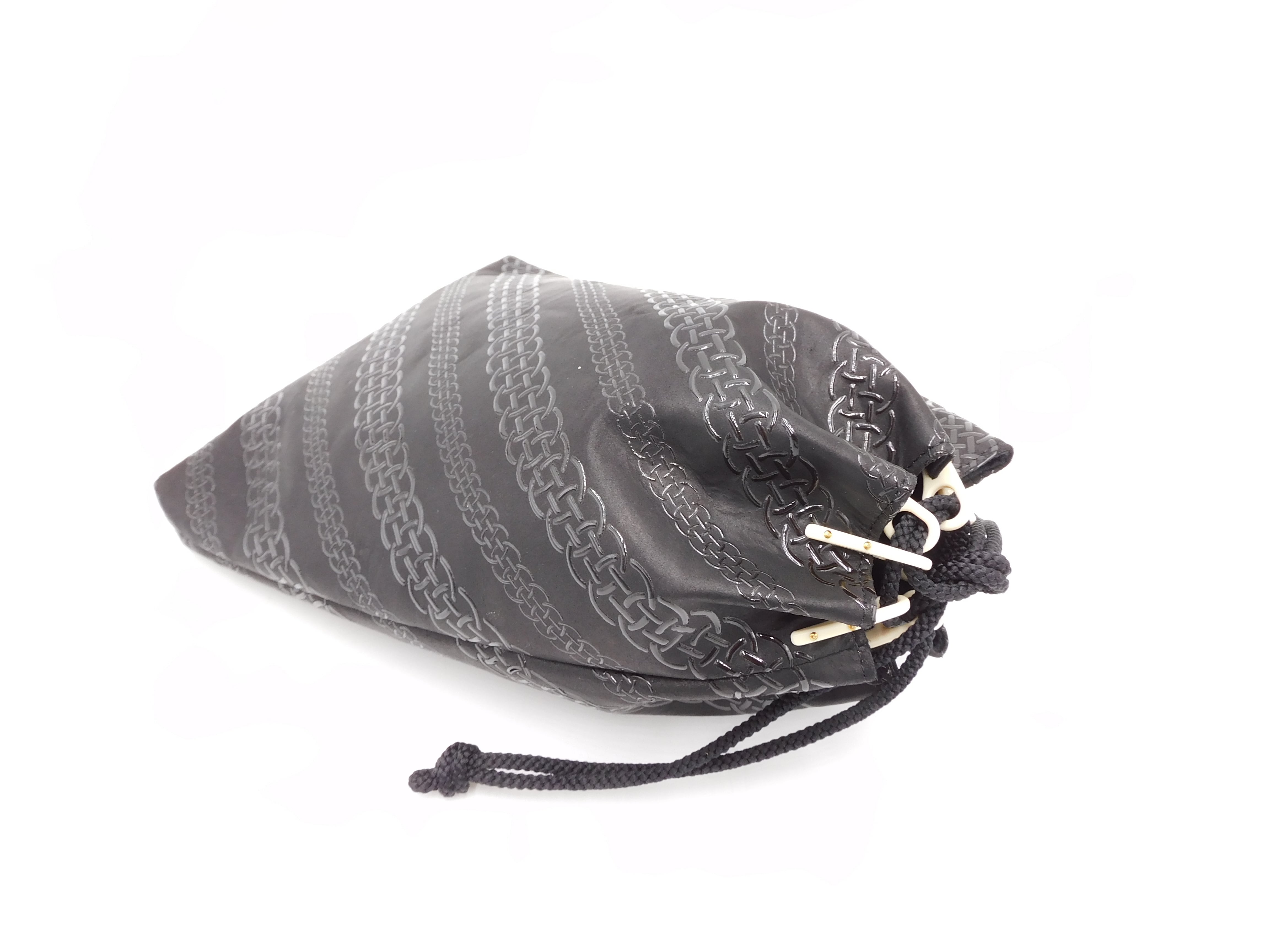 合切袋(中)黒/黒 輪繋ぎ柄