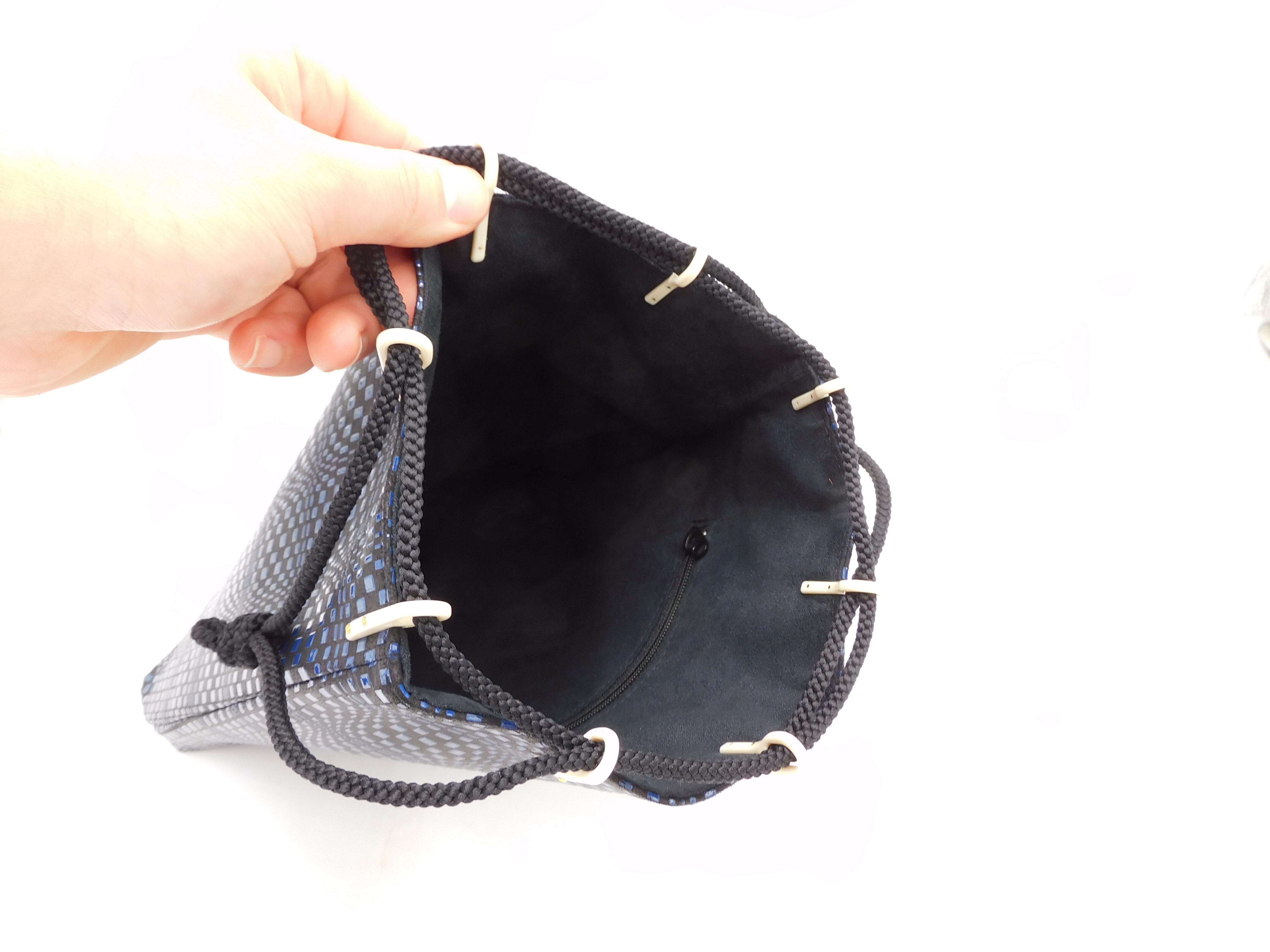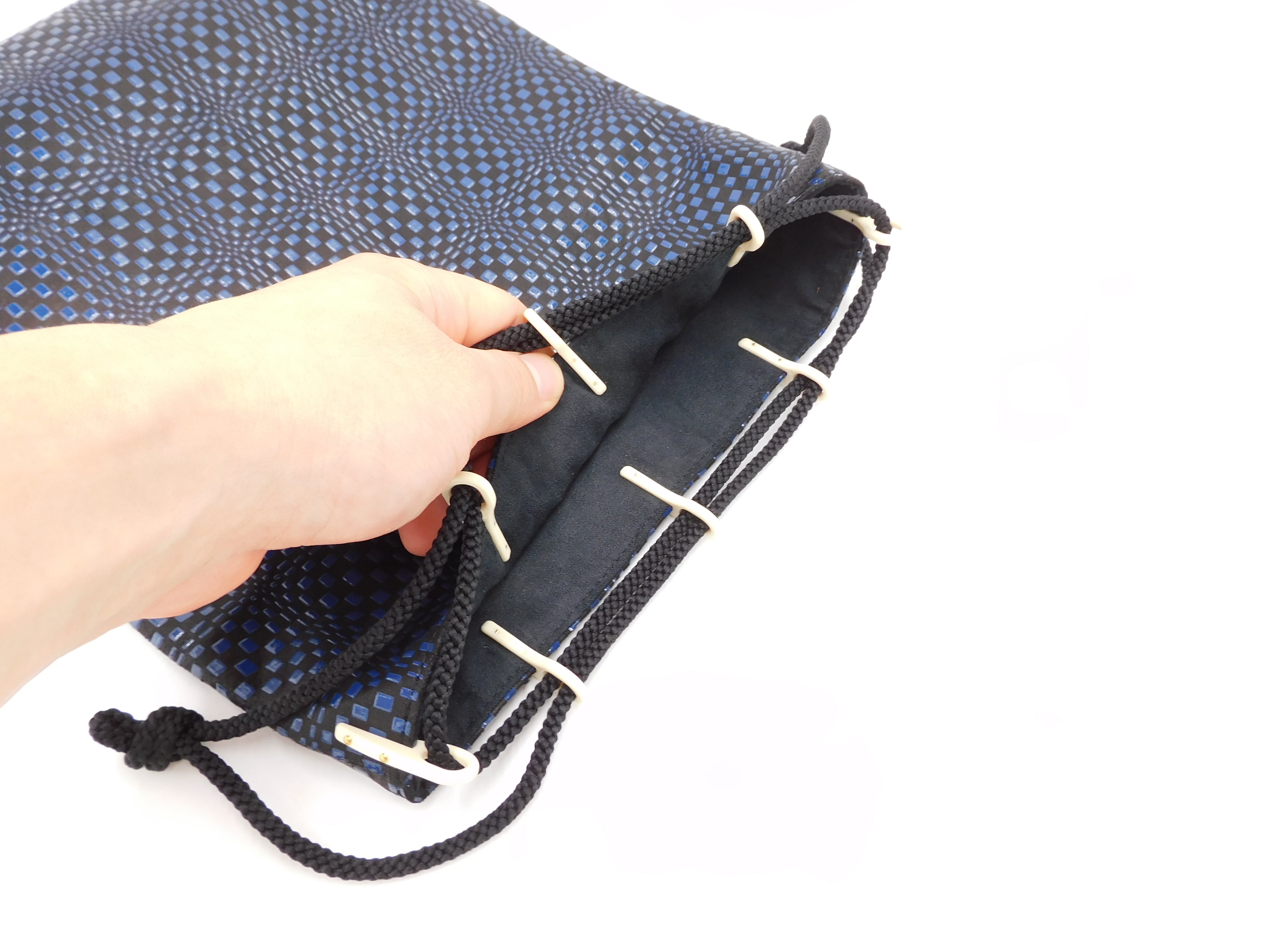 合切袋(大)黒/紺 変わり市松柄