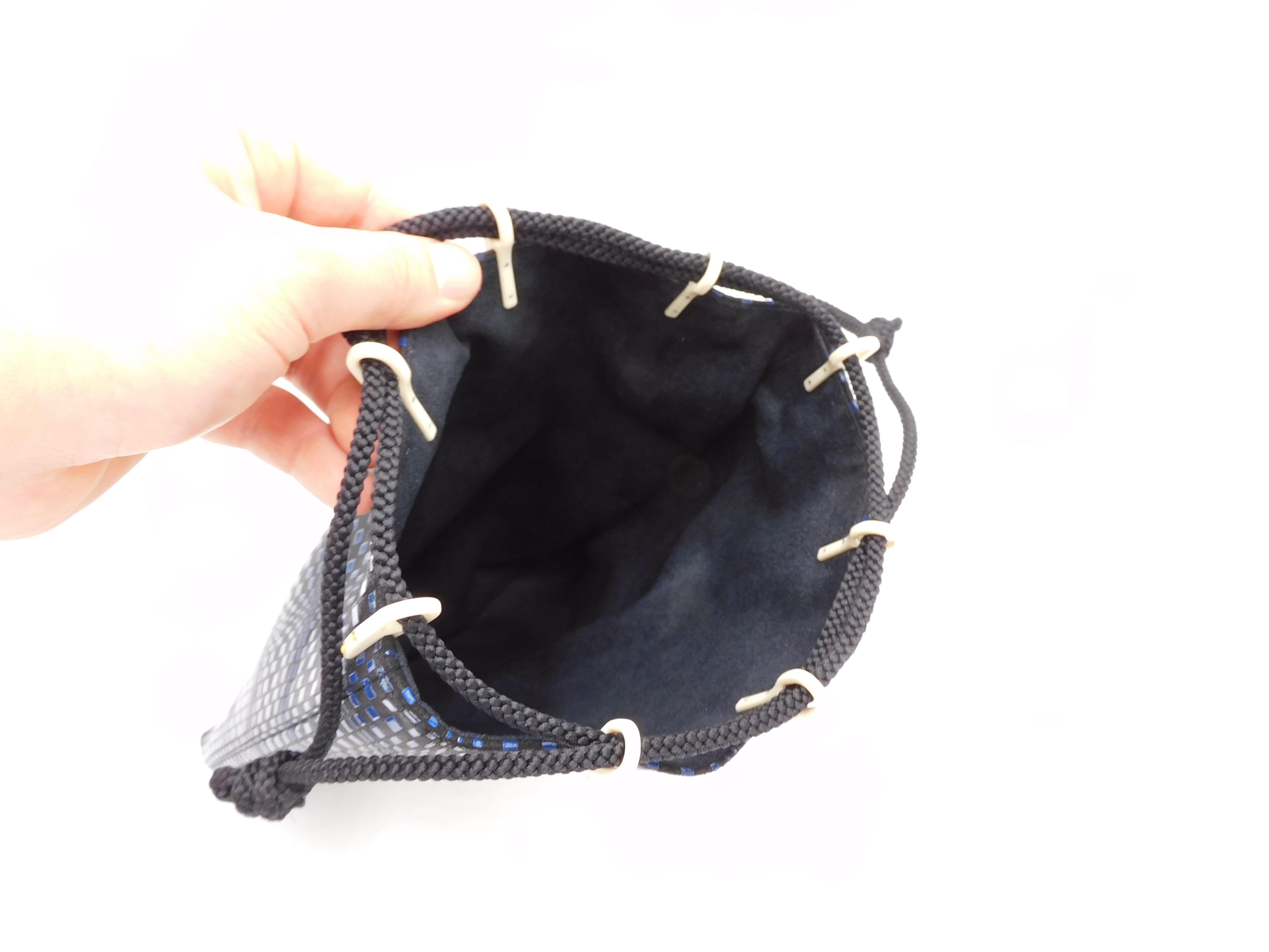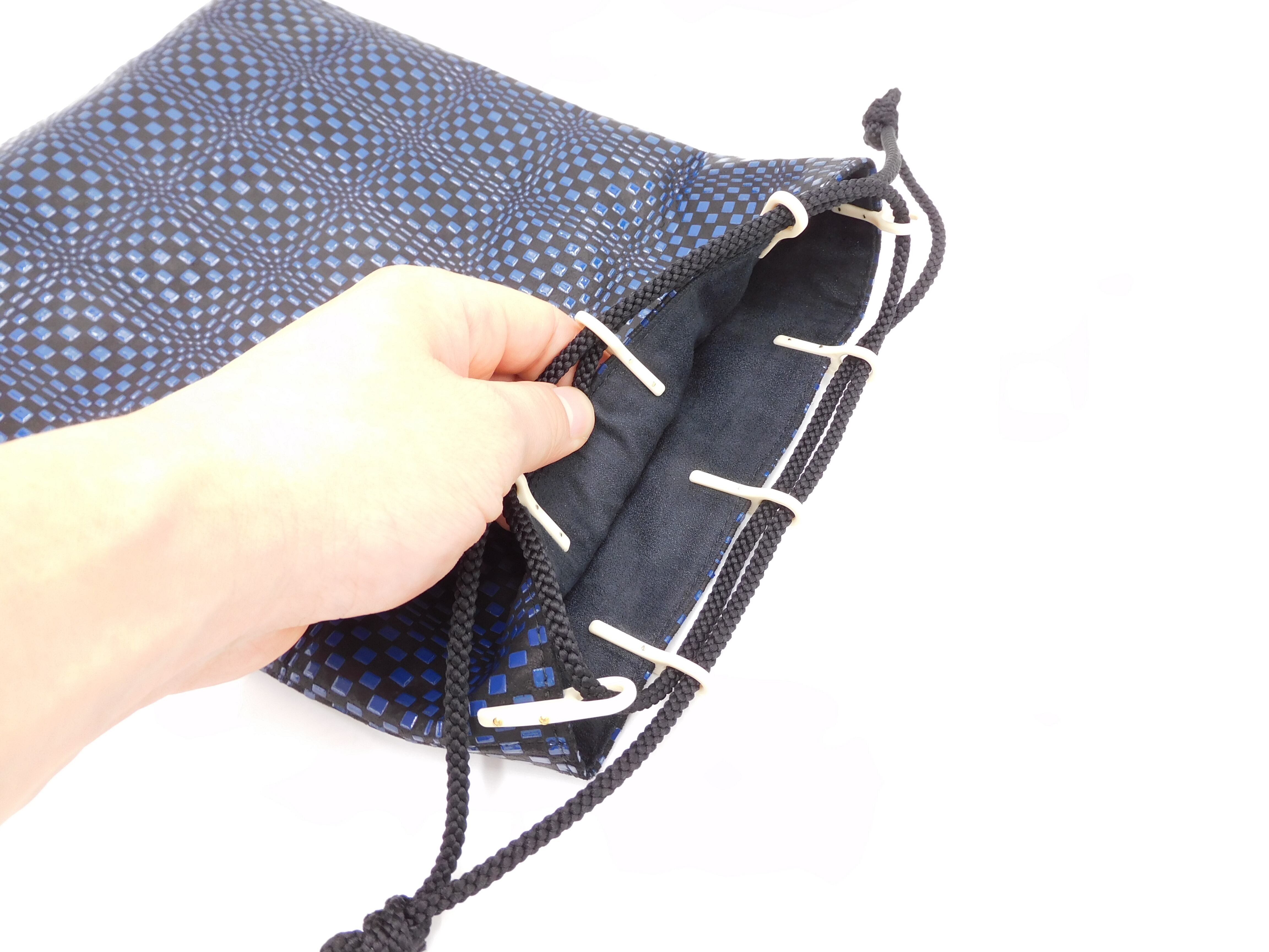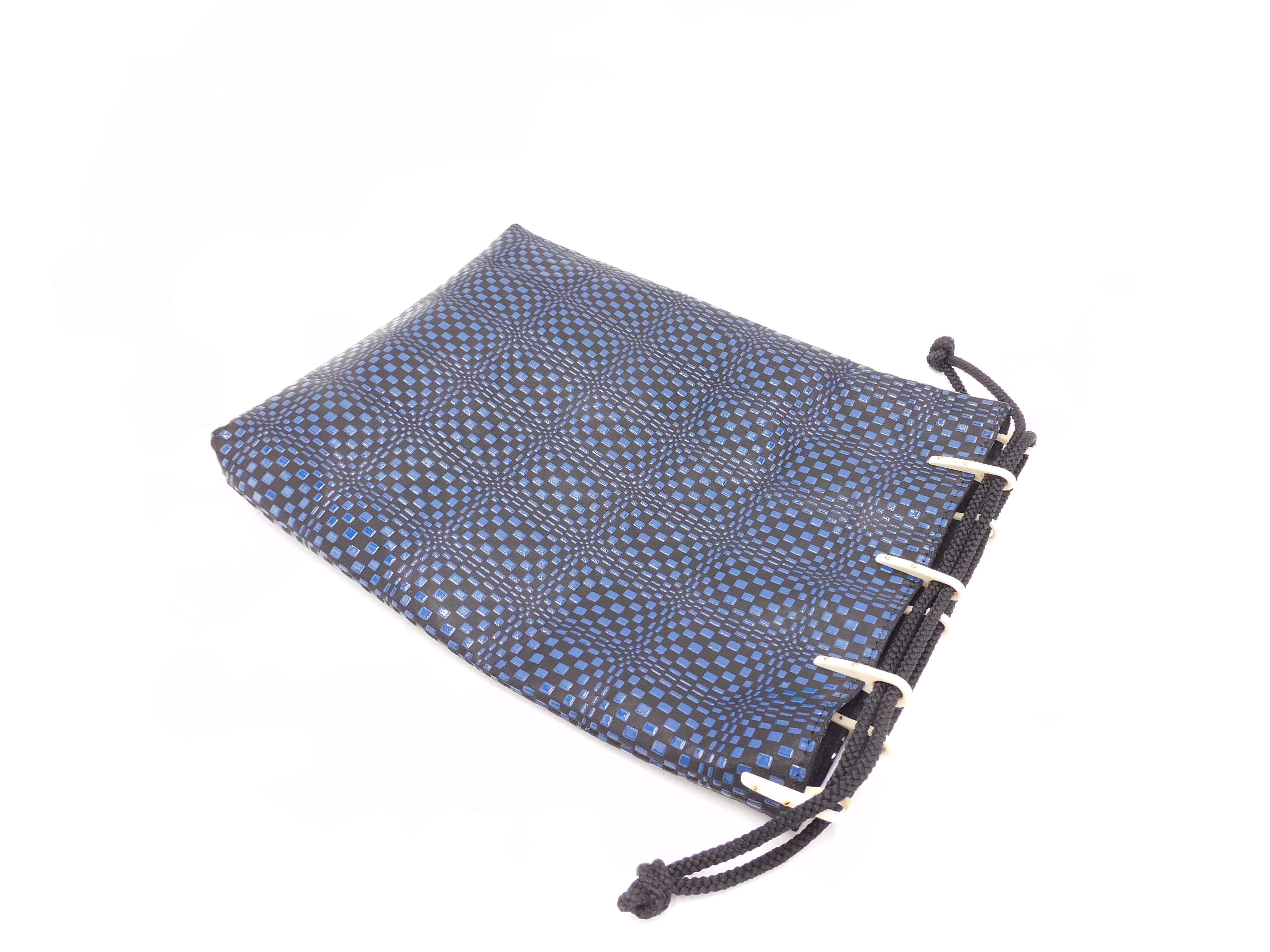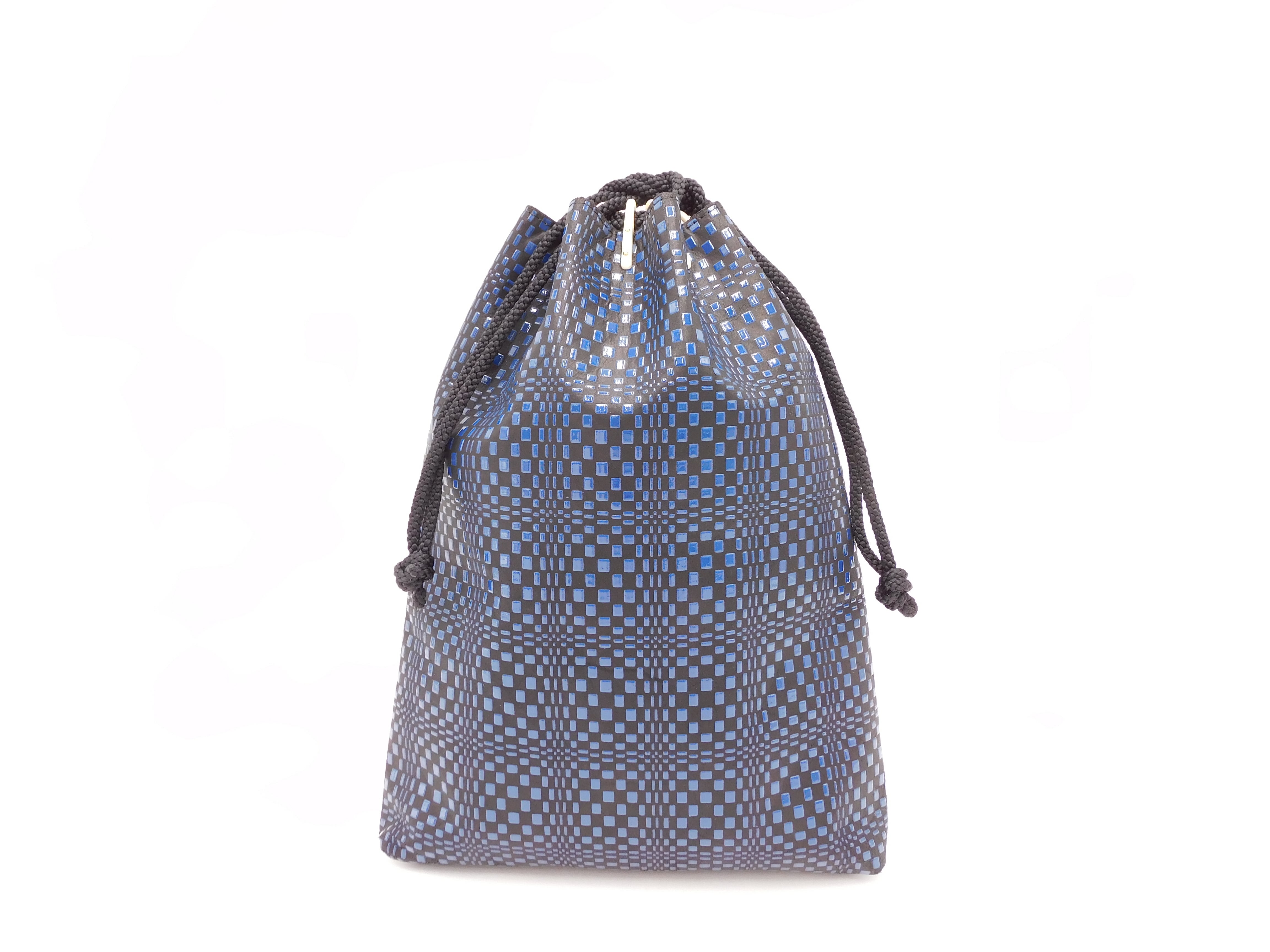 合切袋(中)黒/紺 変わり市松柄