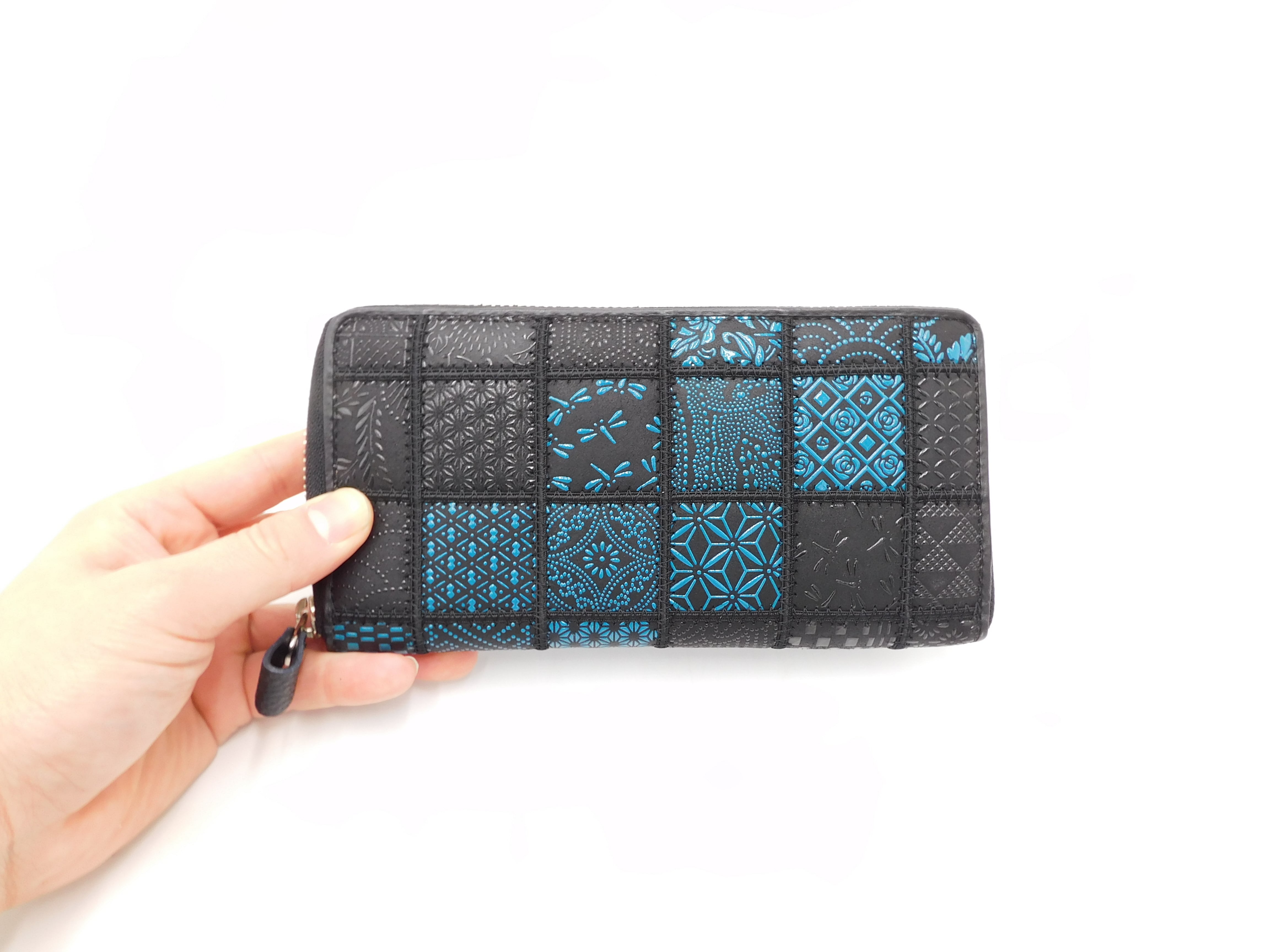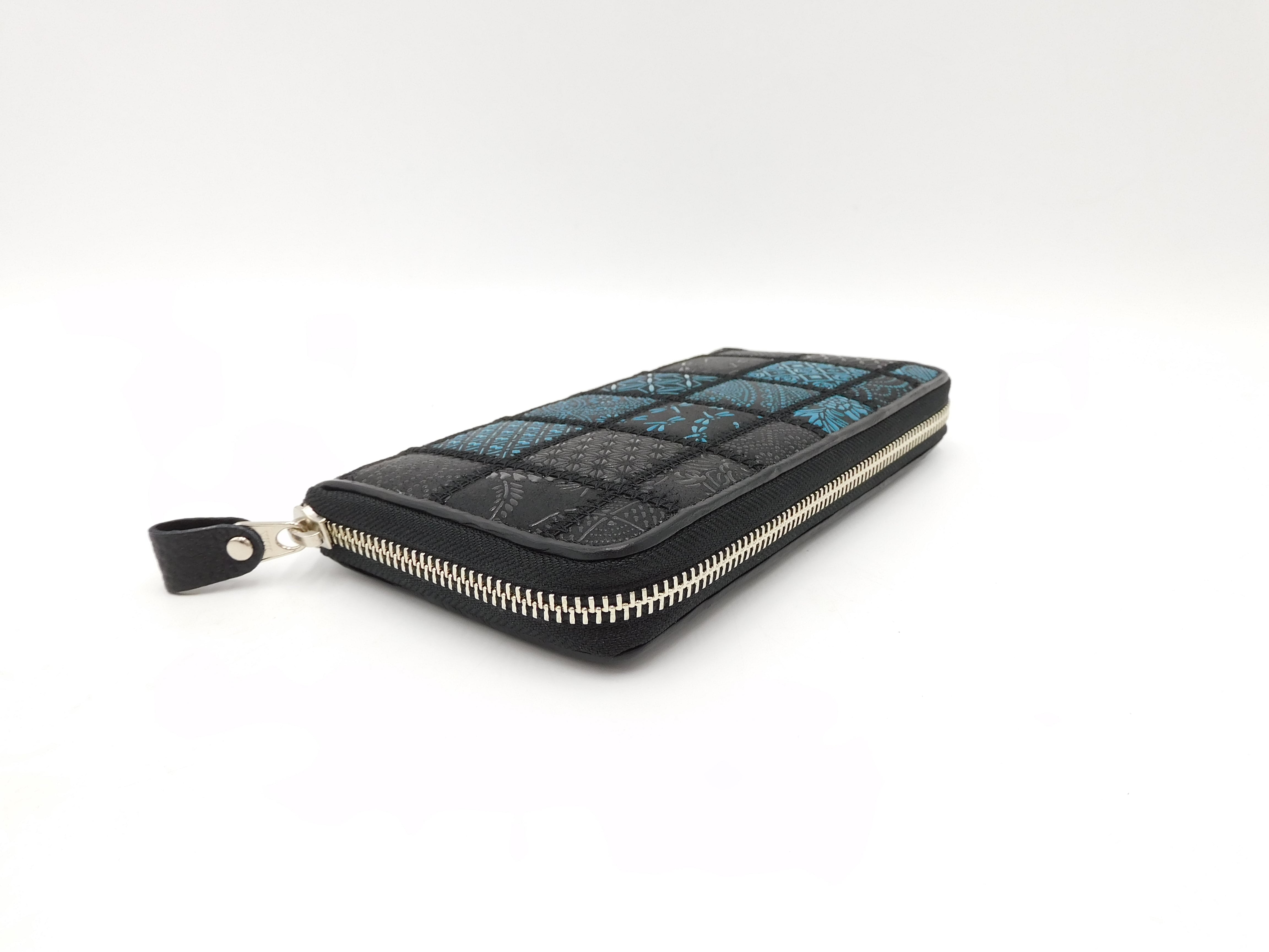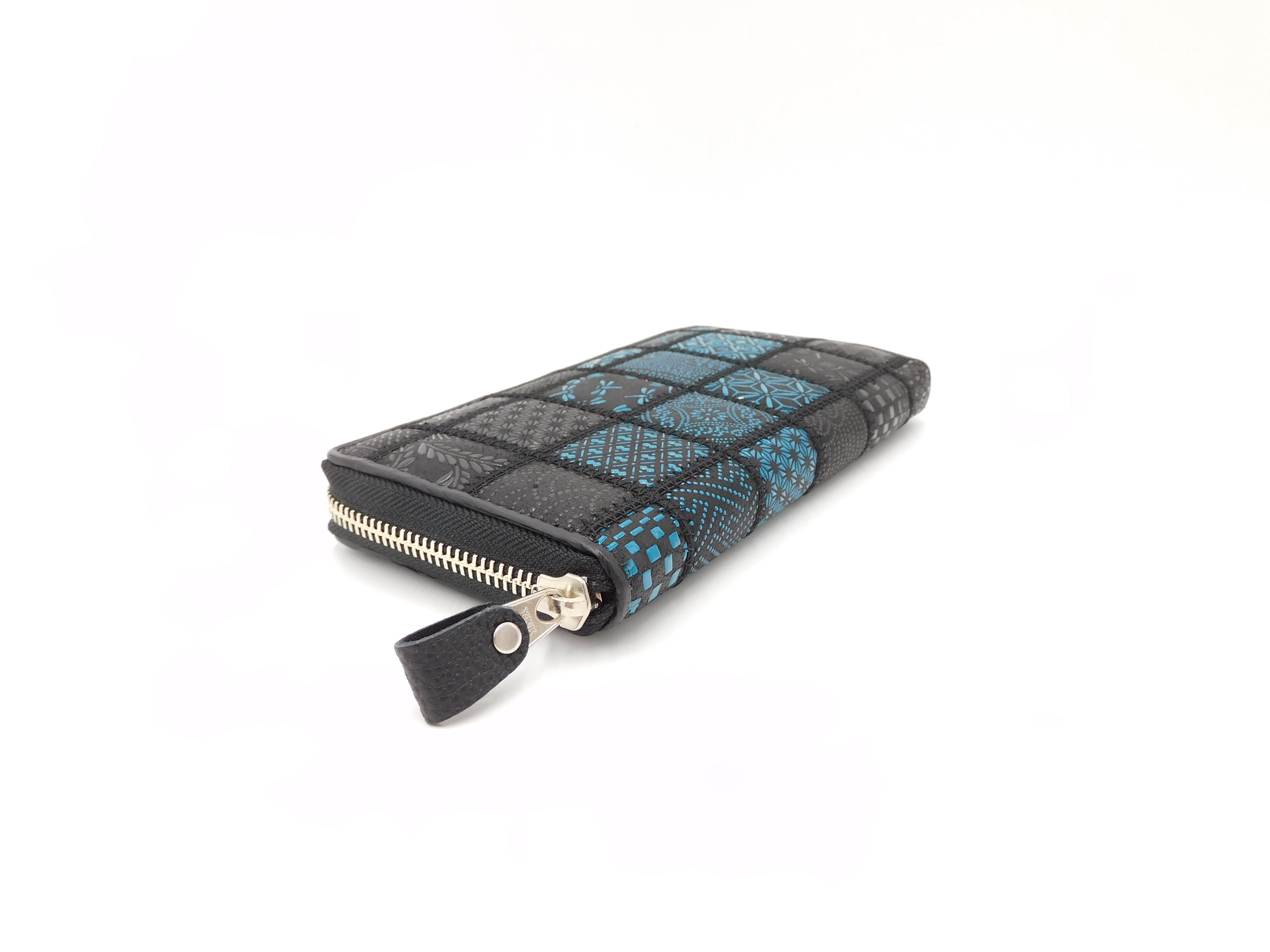 パッチワーク印傳 ラウンド長財布 ブルー