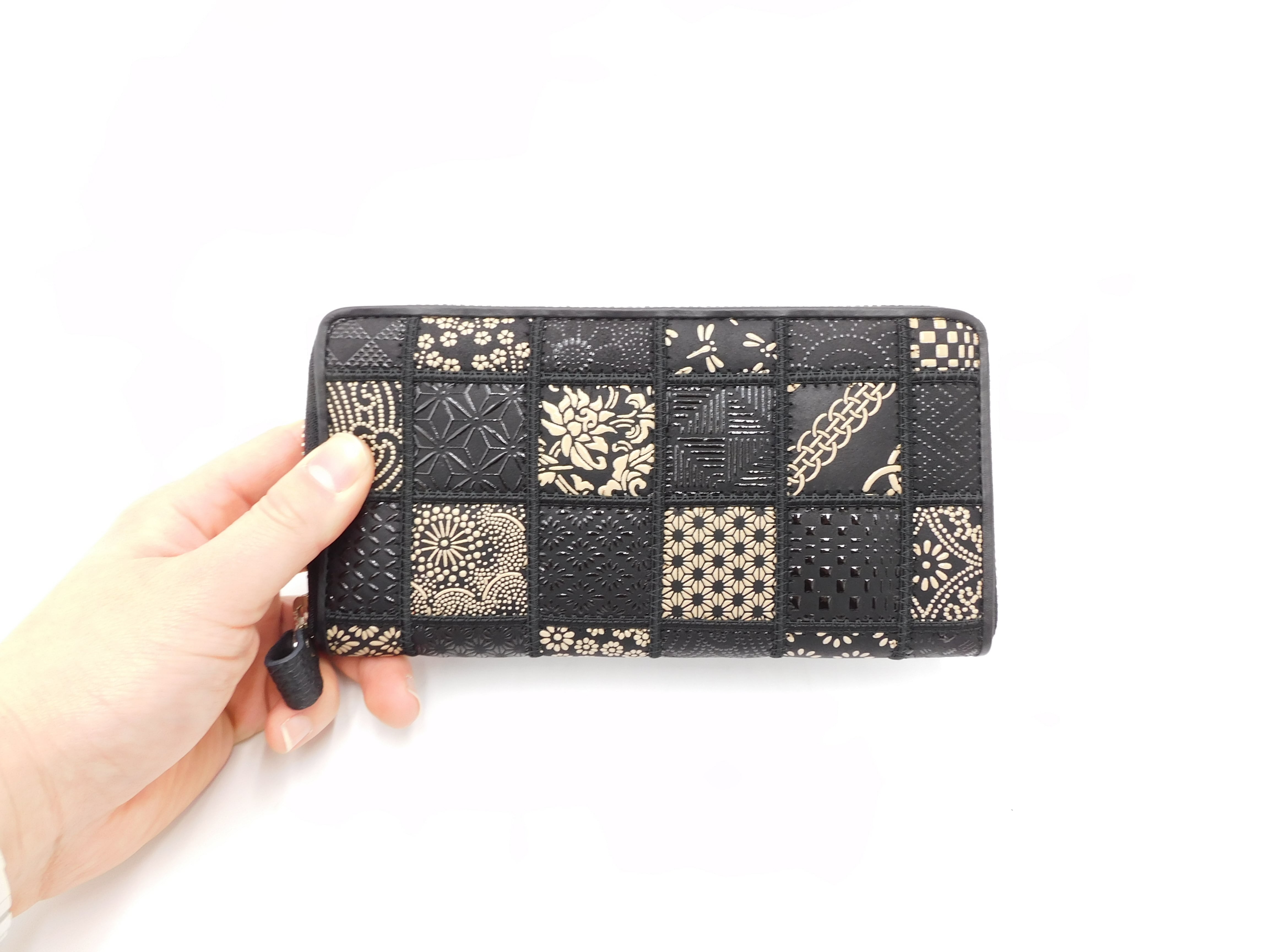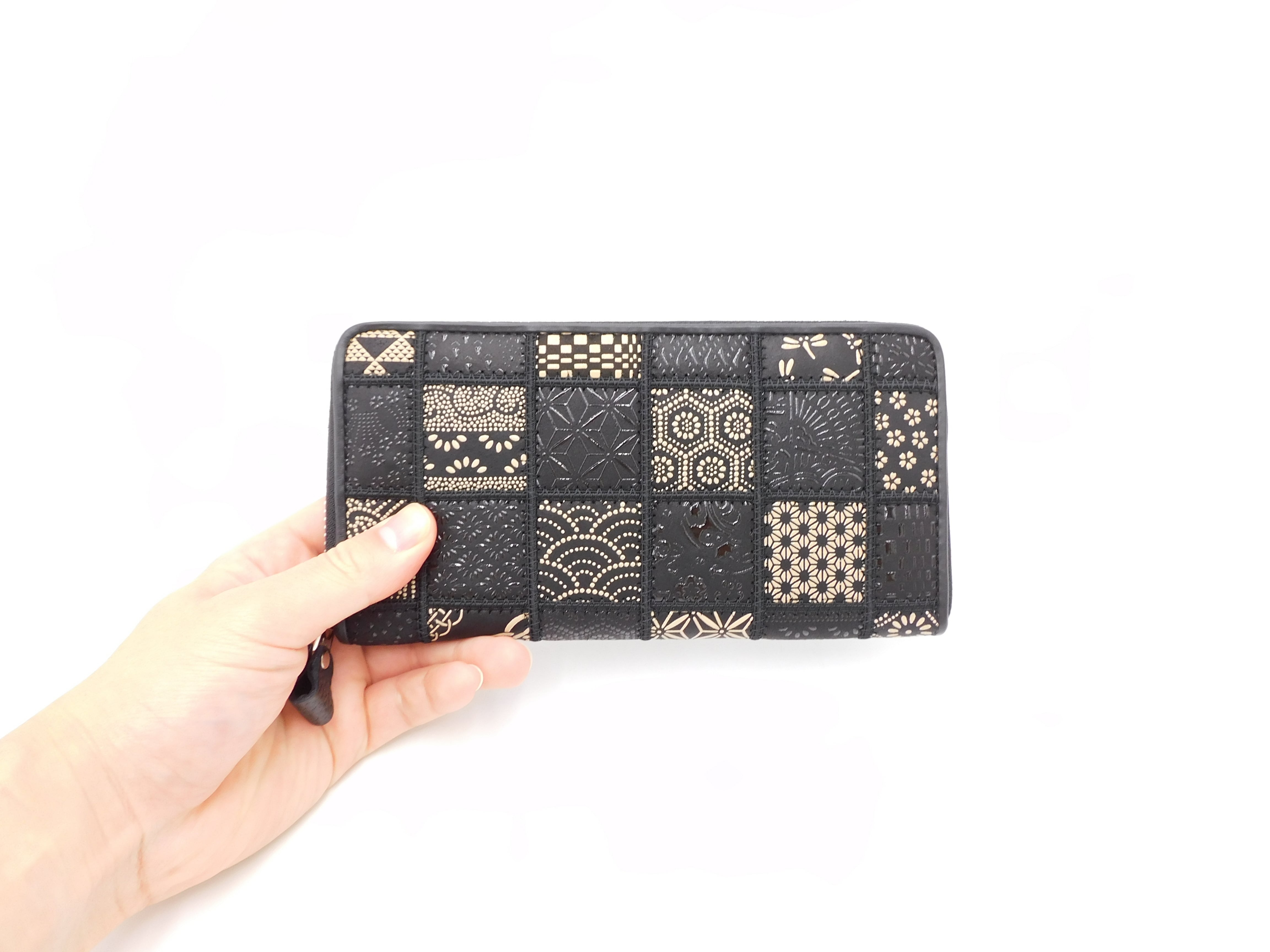 パッチワーク印傳 ラウンド長財布 モノトーン
