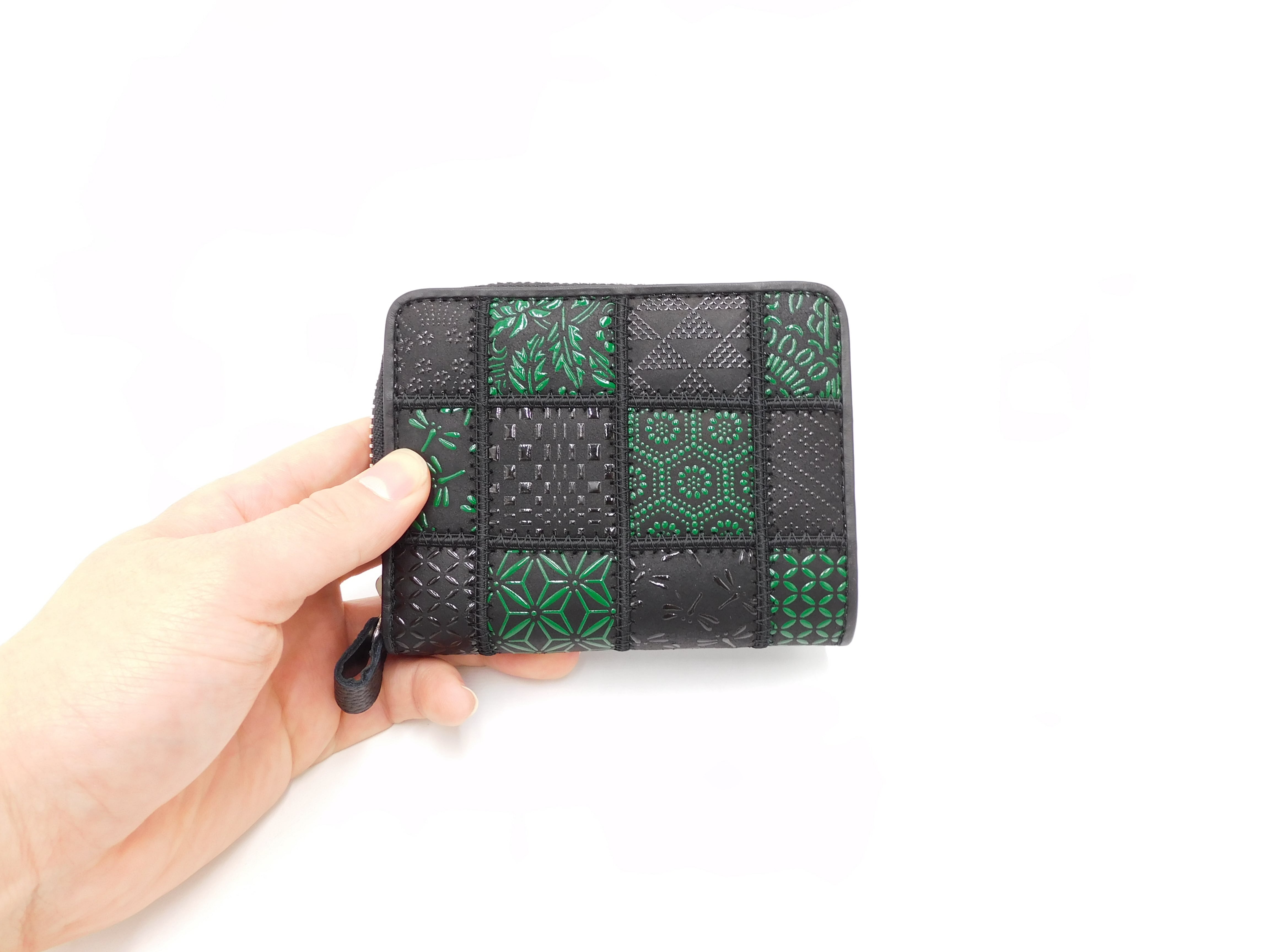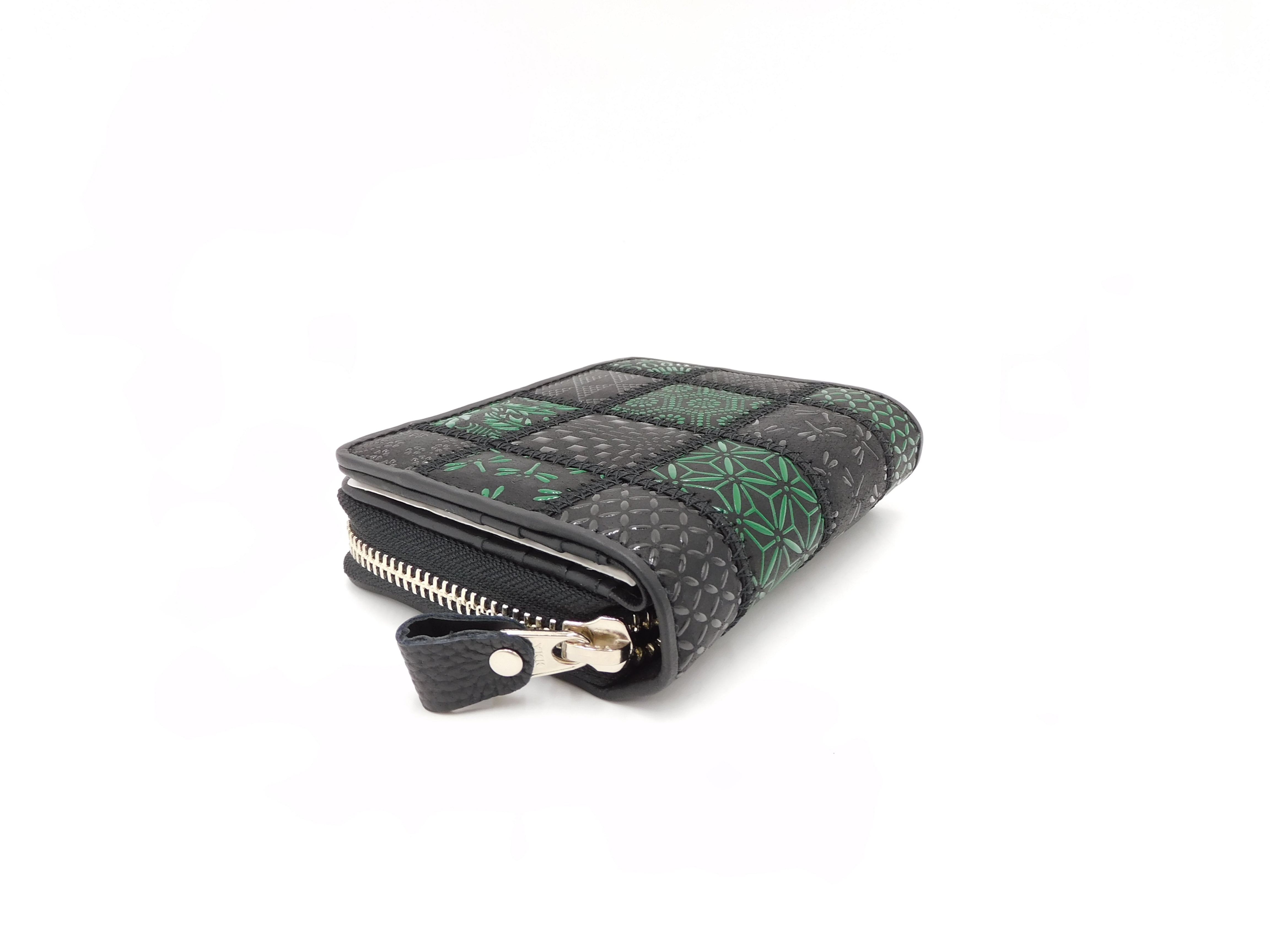パッチワーク印傳 ラウンド札入 グリーン